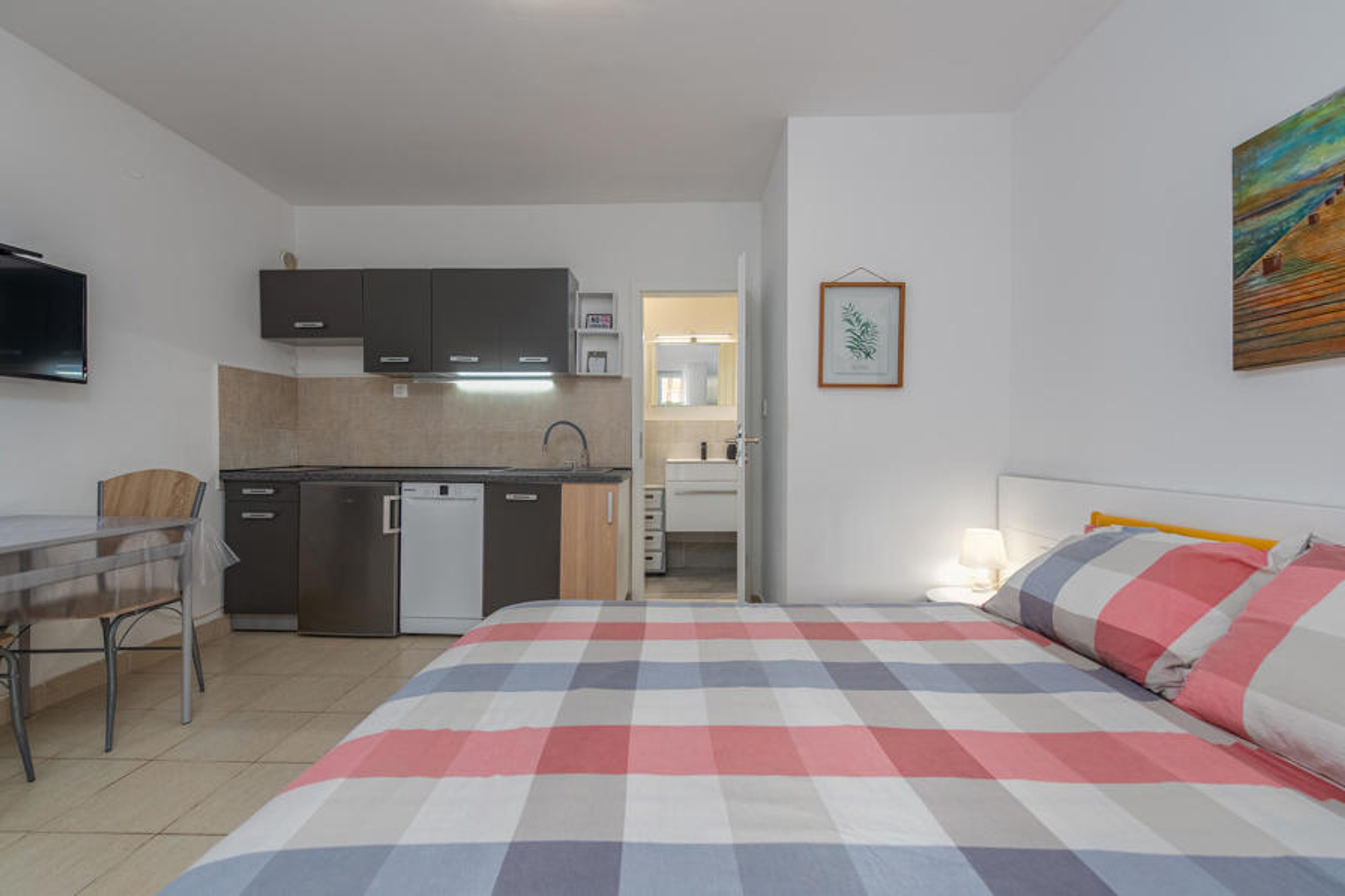 This tastefully furnished studio offers you a comfortable base for a wonderful time out, where you can combine a beach holiday with good shopping opportunities. Whip up your favourite dishes in the open-plan kitchen, plan your adventures at the stylish dining table and stream a film in the evening while you cosy up on the sofa.