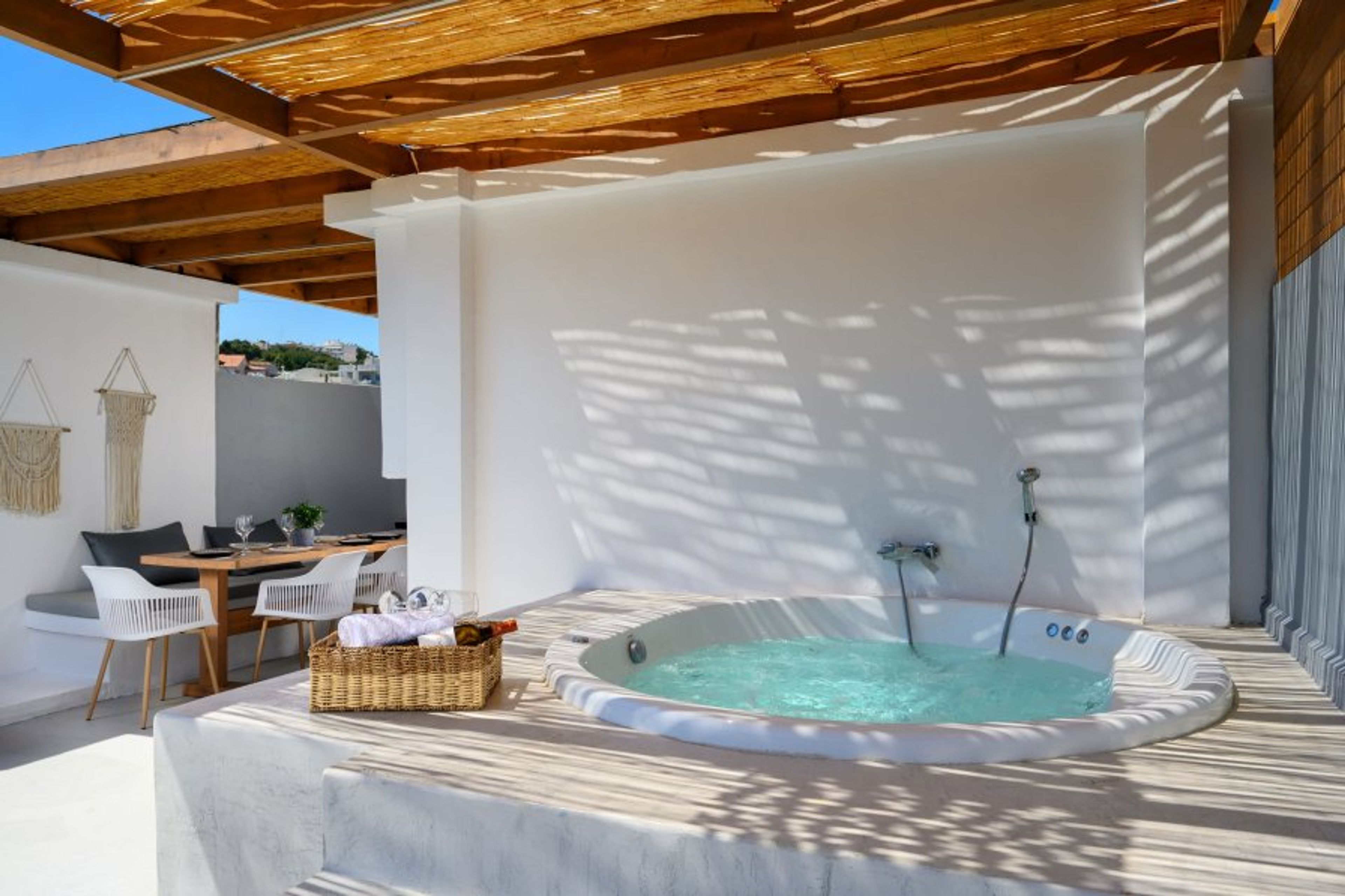 Step into ArmoniKon Pool Villa, where relaxation meets luxury for up to 8 guests. This haven features three fully air-conditioned bedrooms, which can be configured according to your preferences—ensuring the perfect setup for families, friends, or couples. Unwind in the spacious living room, equipped with a double sofa bed and Smart TV for entertainment. Enjoy yourself in the two bathrooms, each adorned with refreshing showers. Prepare delicious meals in the fully equipped kitchen, catering to any culinary desire. Step outside to discover your private paradise, complete with an inviting outdoor dining area and a BBQ for al fresco feasts. Indulge in ultimate relaxation with your very own heated Jacuzzi, offering four seats for intimate gatherings. Dive into the shimmering waters of the private swimming pool, perfect for leisurely swims or soaking up the sun. Experience comfort and elegance at ArmoniKon Pool Villa, where every moment is a serene escape — and every detail is tailored to your ideal stay.