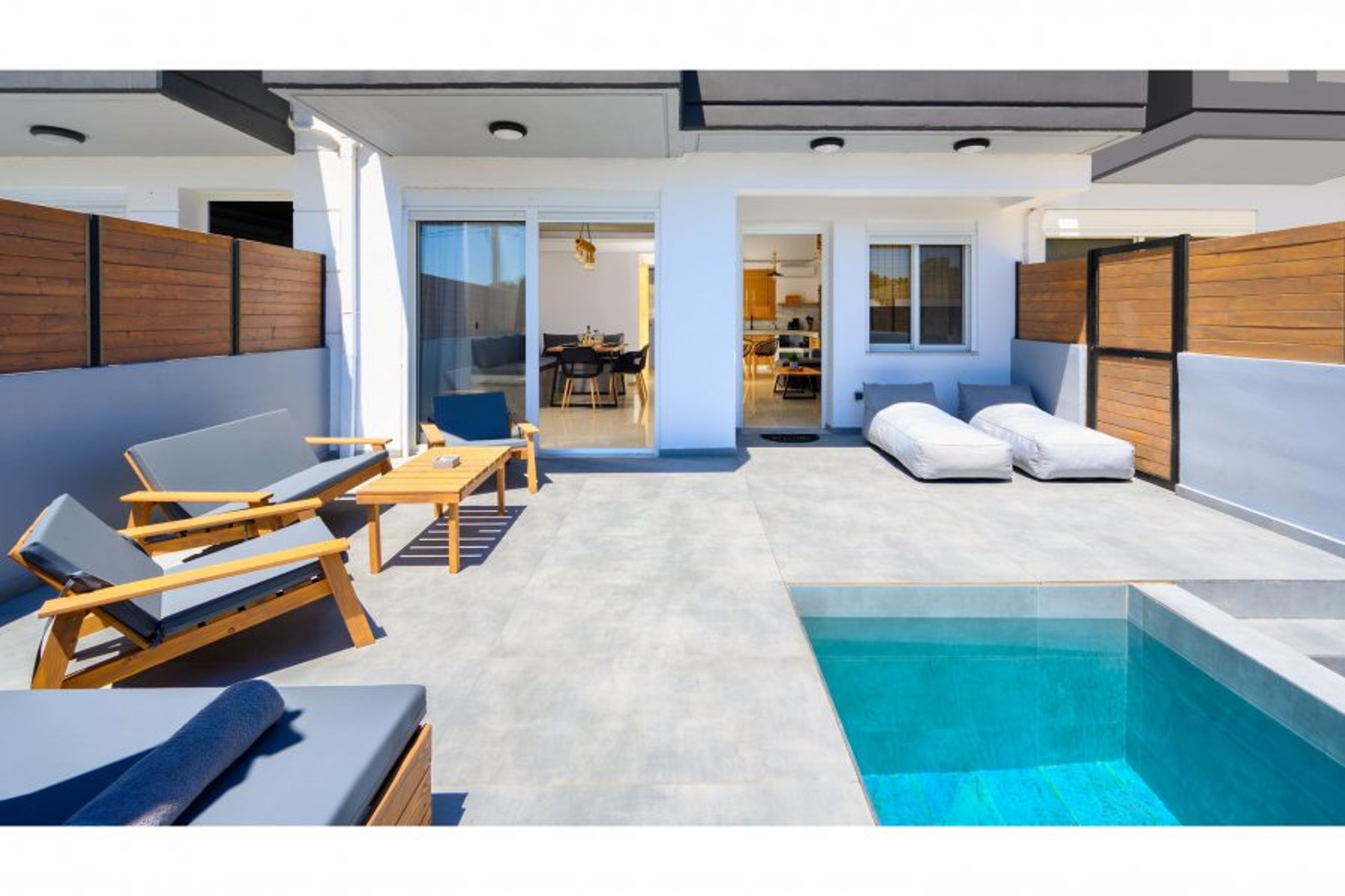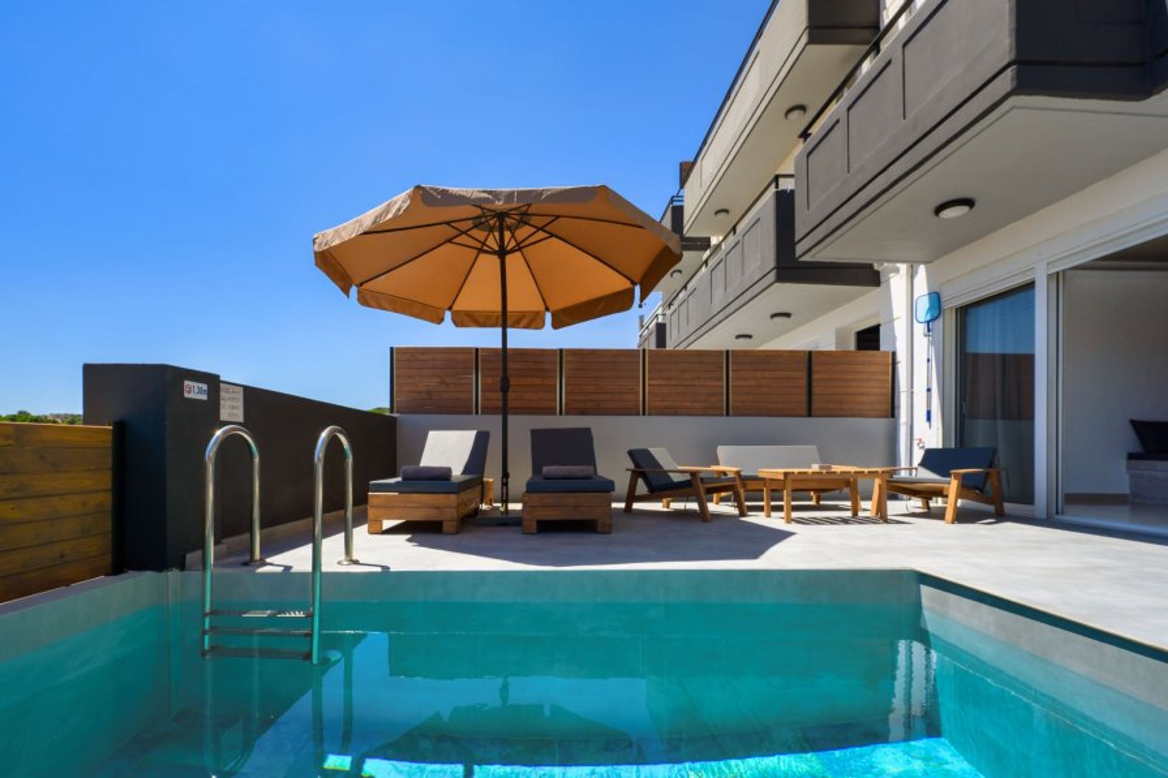 Step into ArmoniKon Pool Villa, where relaxation meets luxury for up to 8 guests. This haven features three fully air-conditioned bedrooms, which can be configured according to your preferences—ensuring the perfect setup for families, friends, or couples. Unwind in the spacious living room, equipped with a double sofa bed and Smart TV for entertainment. Enjoy yourself in the two bathrooms, each adorned with refreshing showers. Prepare delicious meals in the fully equipped kitchen, catering to any culinary desire. Step outside to discover your private paradise, complete with an inviting outdoor dining area and a BBQ for al fresco feasts. Indulge in ultimate relaxation with your very own heated Jacuzzi, offering four seats for intimate gatherings. Dive into the shimmering waters of the private swimming pool, perfect for leisurely swims or soaking up the sun. Experience comfort and elegance at ArmoniKon Pool Villa, where every moment is a serene escape — and every detail is tailored to your ideal stay.