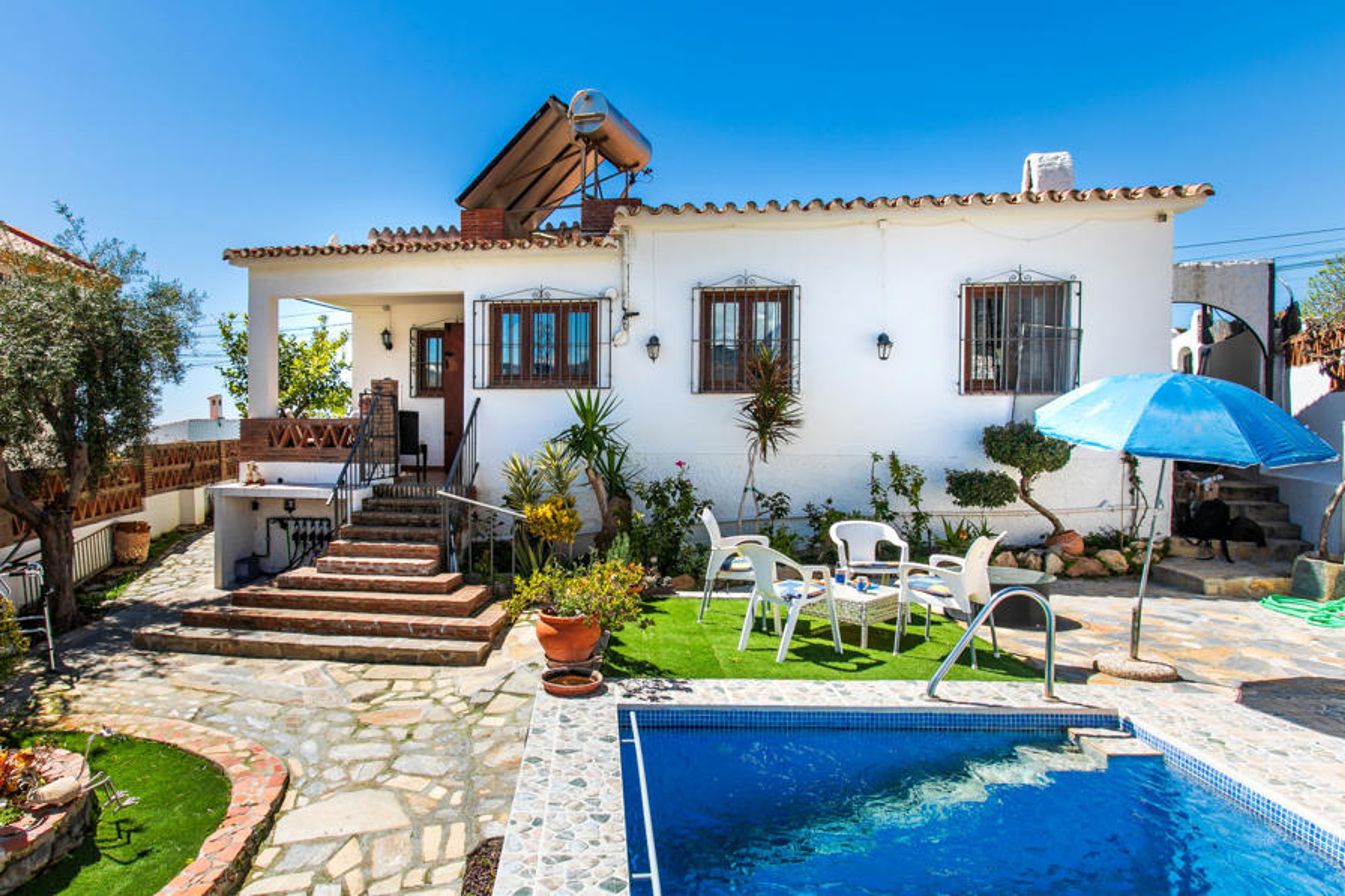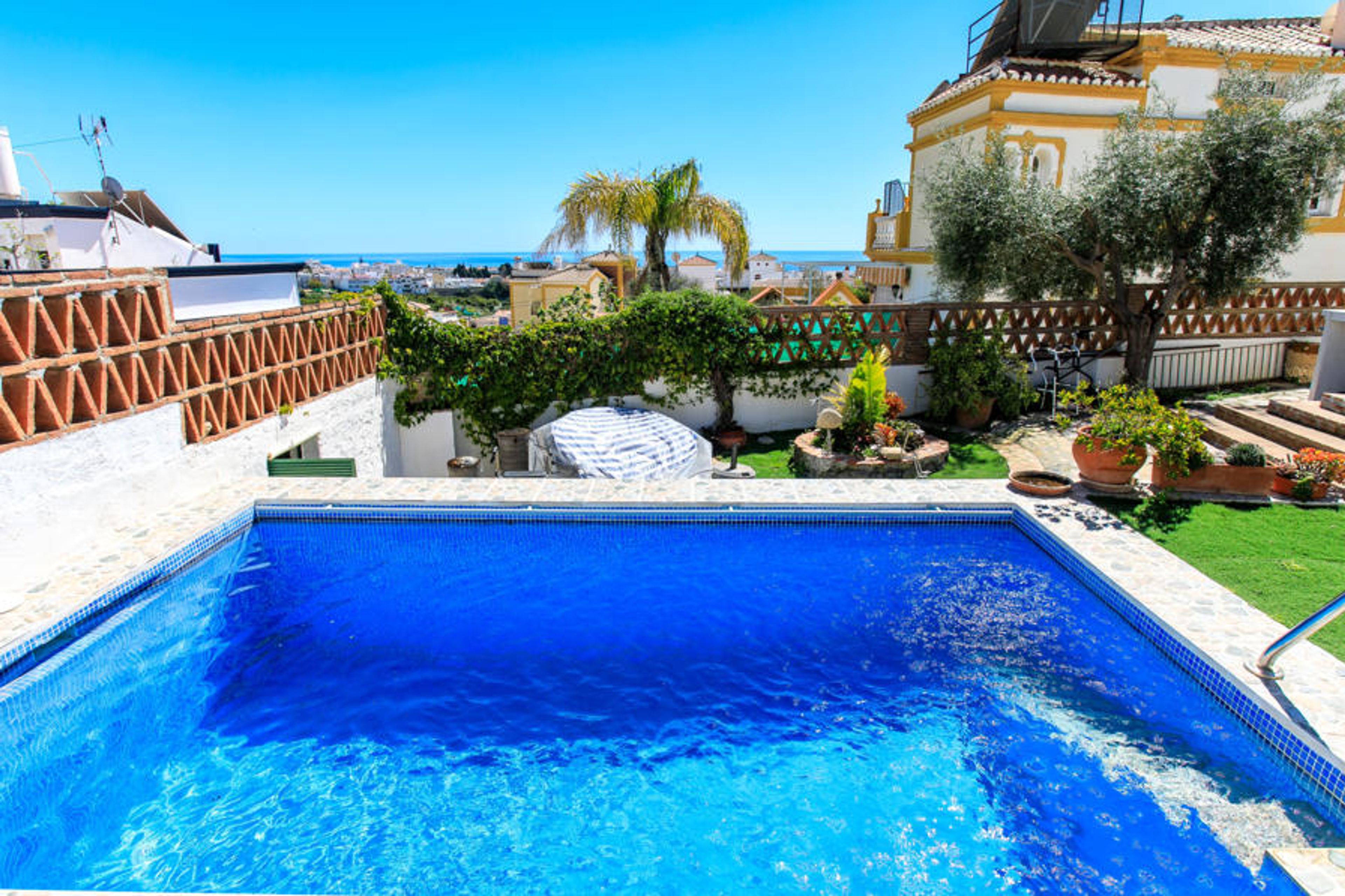 This 3 bedroom village house with private pool is located in Nerja and sleeps 5 people. It has air conditioning, barbecue facilities and sea views. The village house is near a beach.