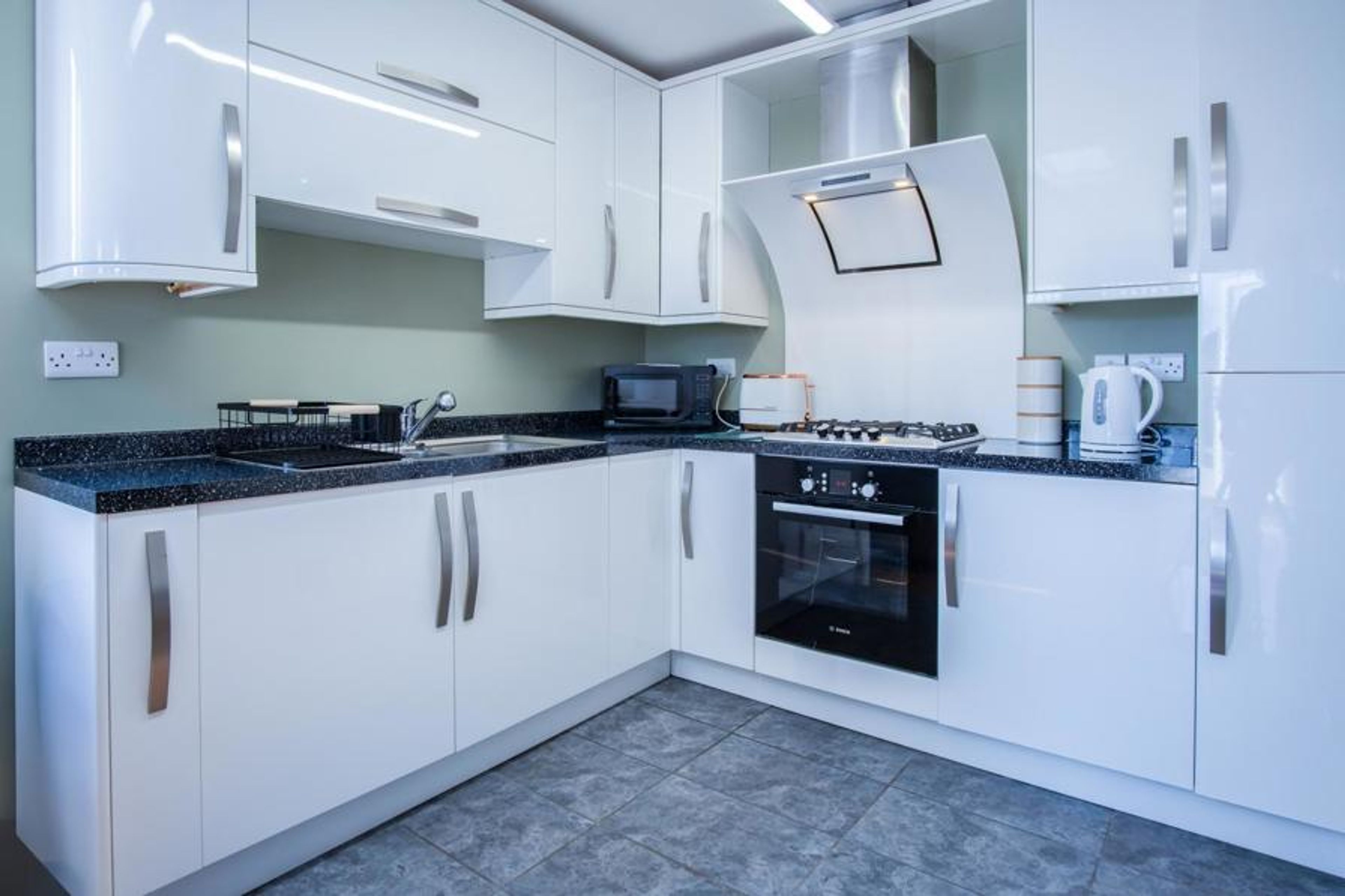 The well-equipped kitchen provides everything you need to whip up delicious meals, featuring a fridge, oven, hob, toaster, and kettle. Whether you’re preparing a quick breakfast before an adventure or a gourmet dinner, you’ll find all the essentials at your fingertips.