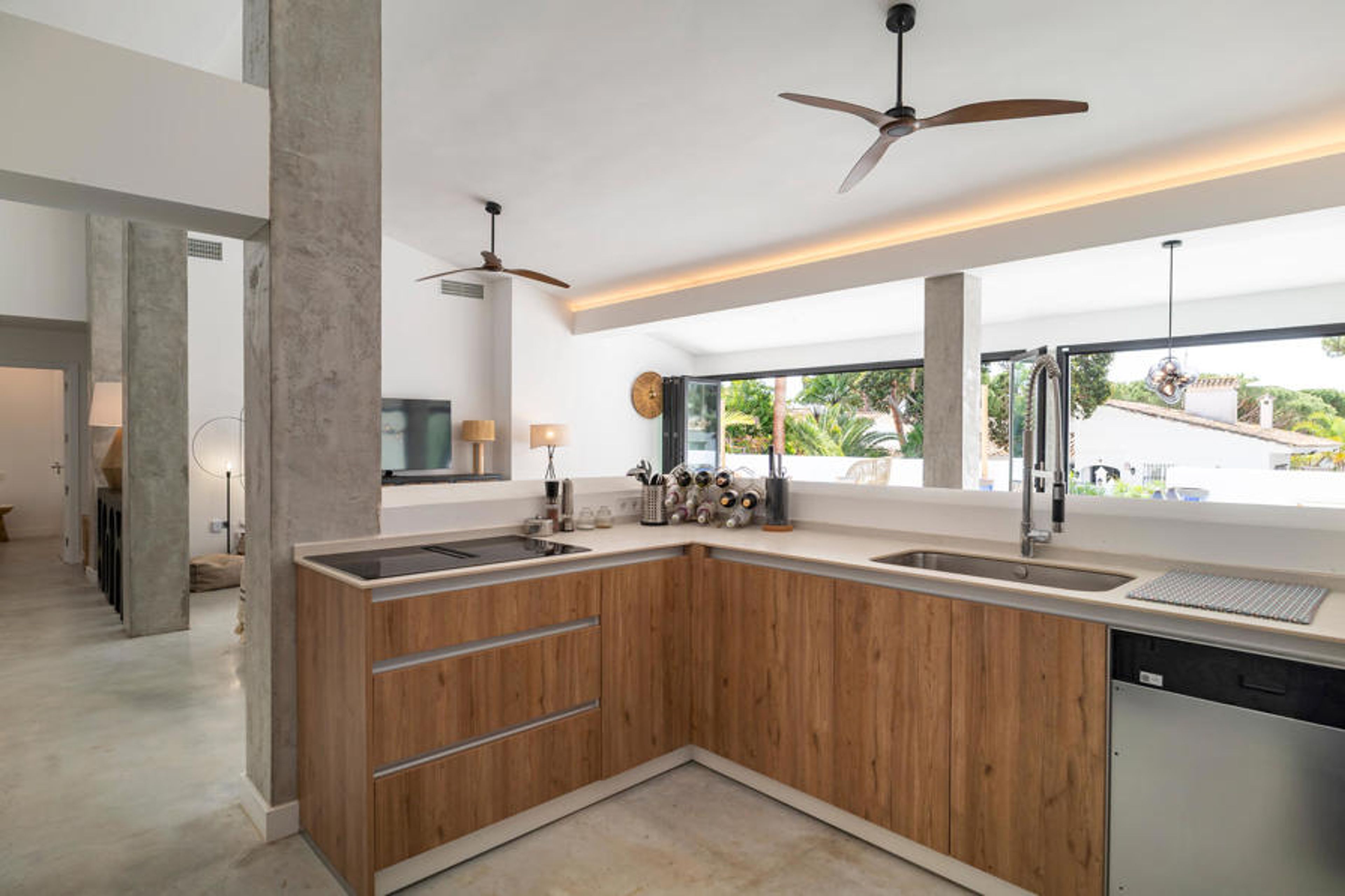 Step out through wide glass doors onto the beautiful sun terrace, where you can have breakfast, a barbecue or a sundowner in the lounge and look forward to long hours under the steel-blue sky. Take a refreshing dip in the pool and relax on the comfortable loungers.