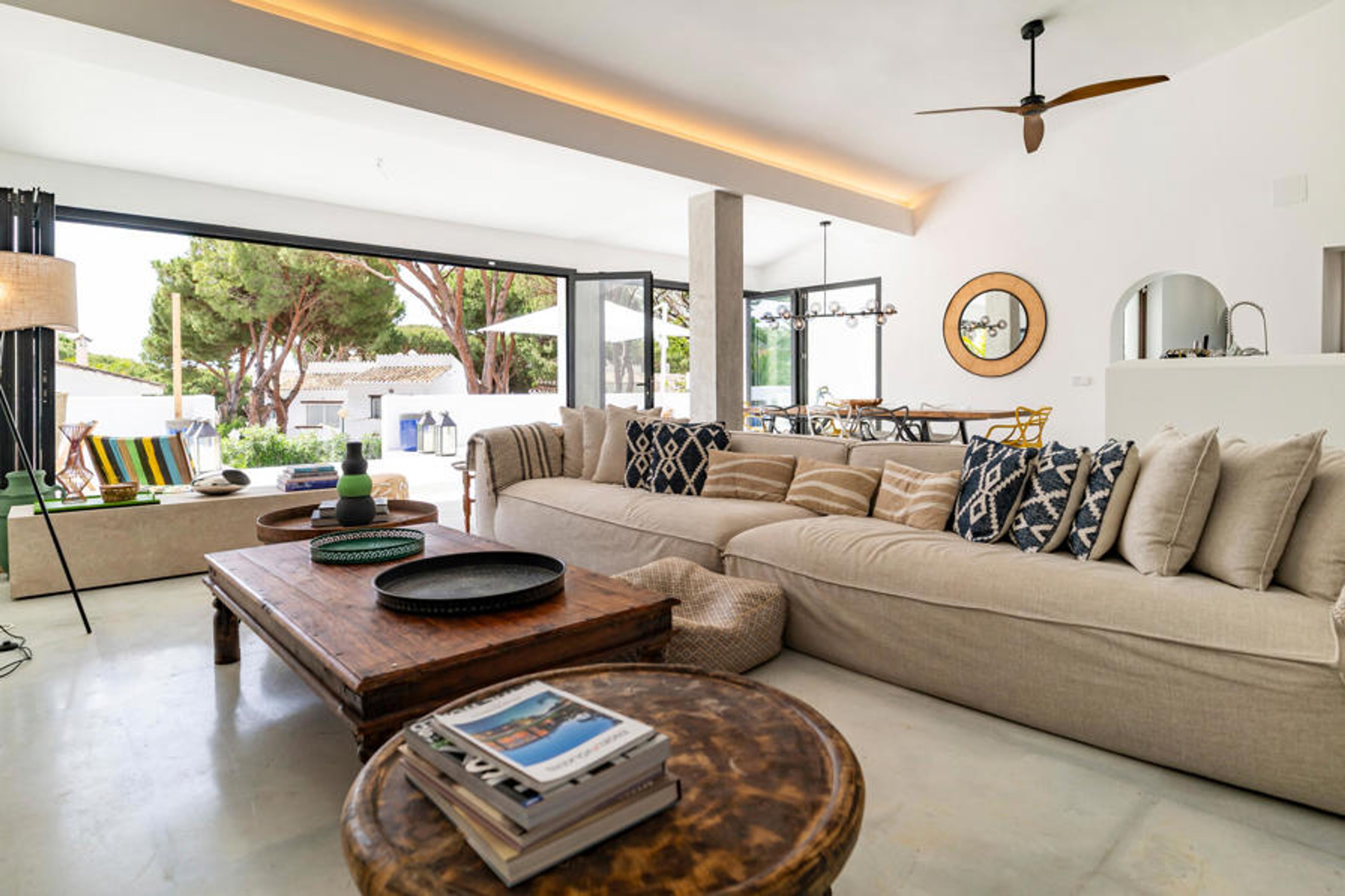 This spacious and tastefully furnished villa will spoil you with bright, elegant rooms where you will feel at home even with a larger group during a sociable holiday. Conjure up culinary highlights in the high-quality kitchen and celebrate your meals at the long dining table. Make yourself comfortable on the wonderful sofa area, stream a film or use the time together for good conversation over a glass of wine.