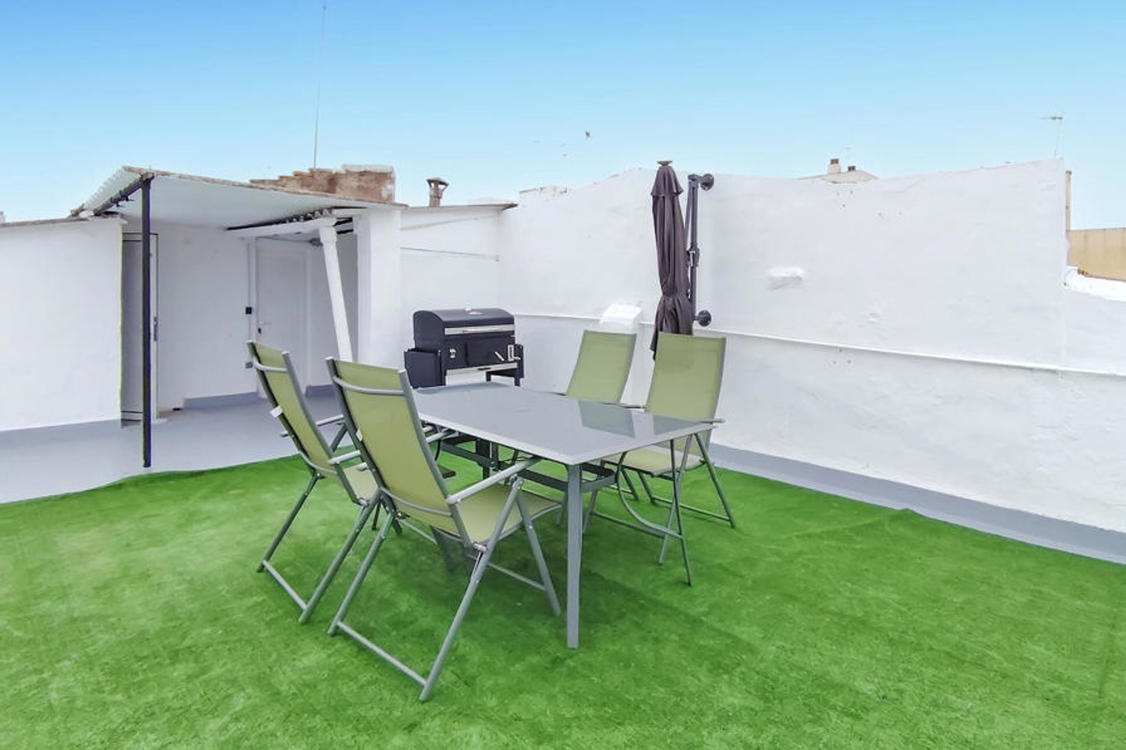 An inviting open-air dining area awaits you on your roof terrace. Serve your breakfast here and fire up the barbecue for cosy evenings with wine and candlelight.