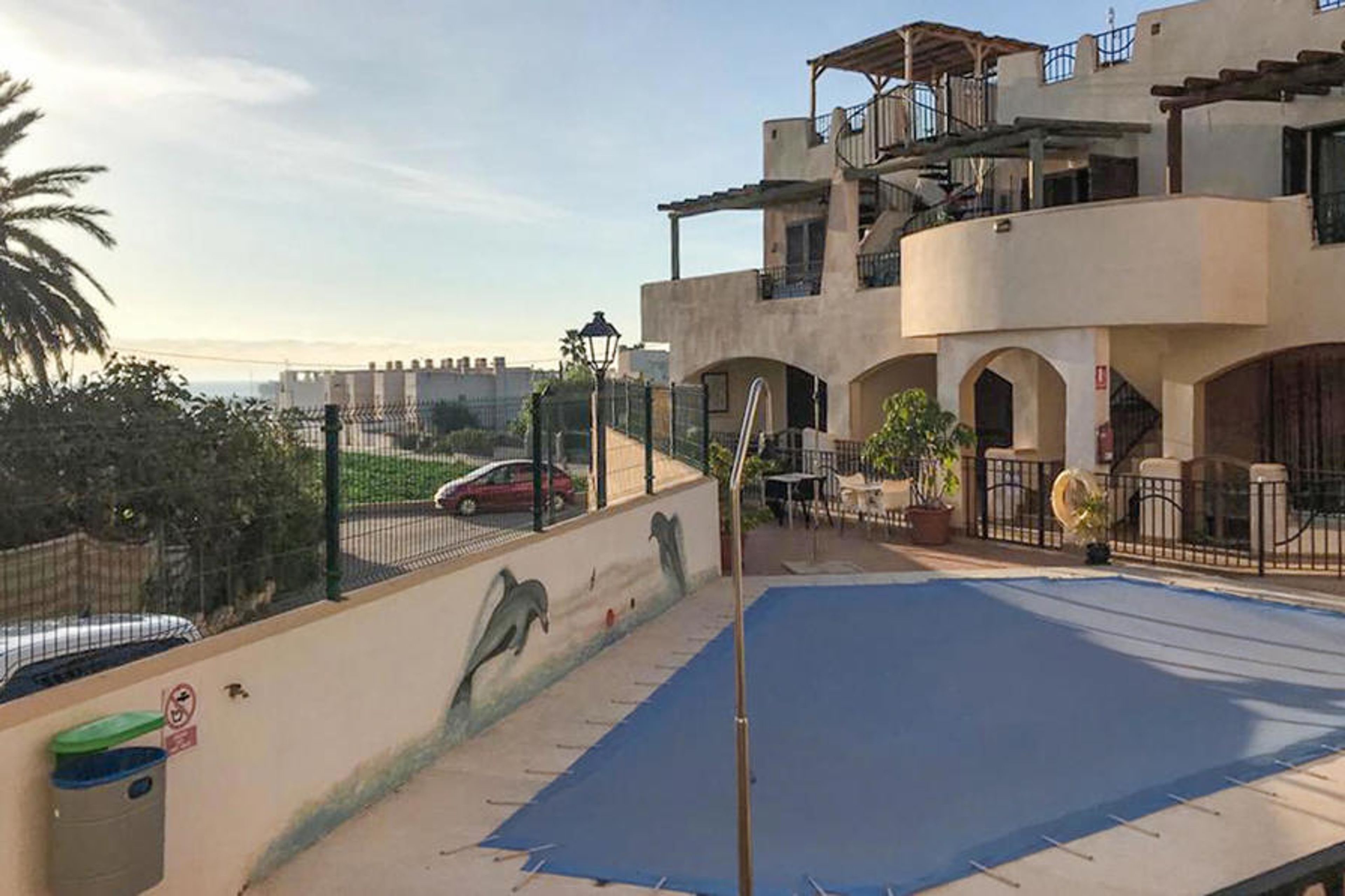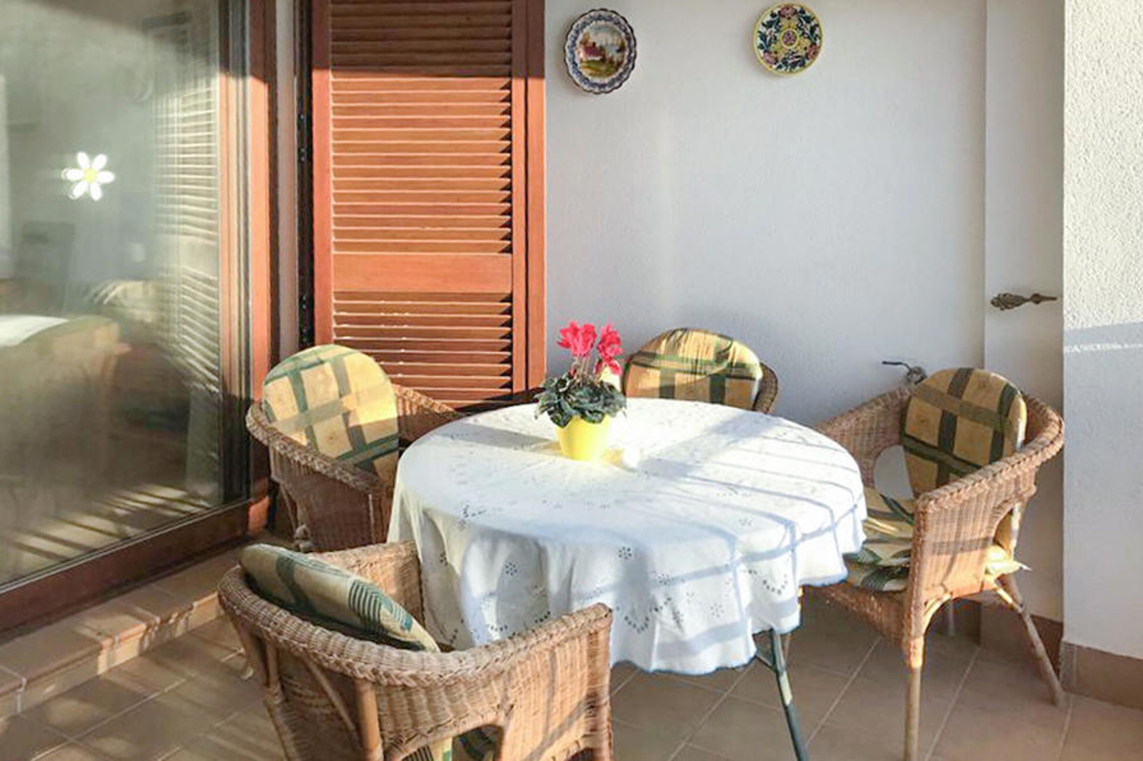 Serve yourself a hearty breakfast on the balcony and soak up the mild morning sun. On hot days, you can cool off in the beautiful communal pool and enjoy the Mediterranean climate.