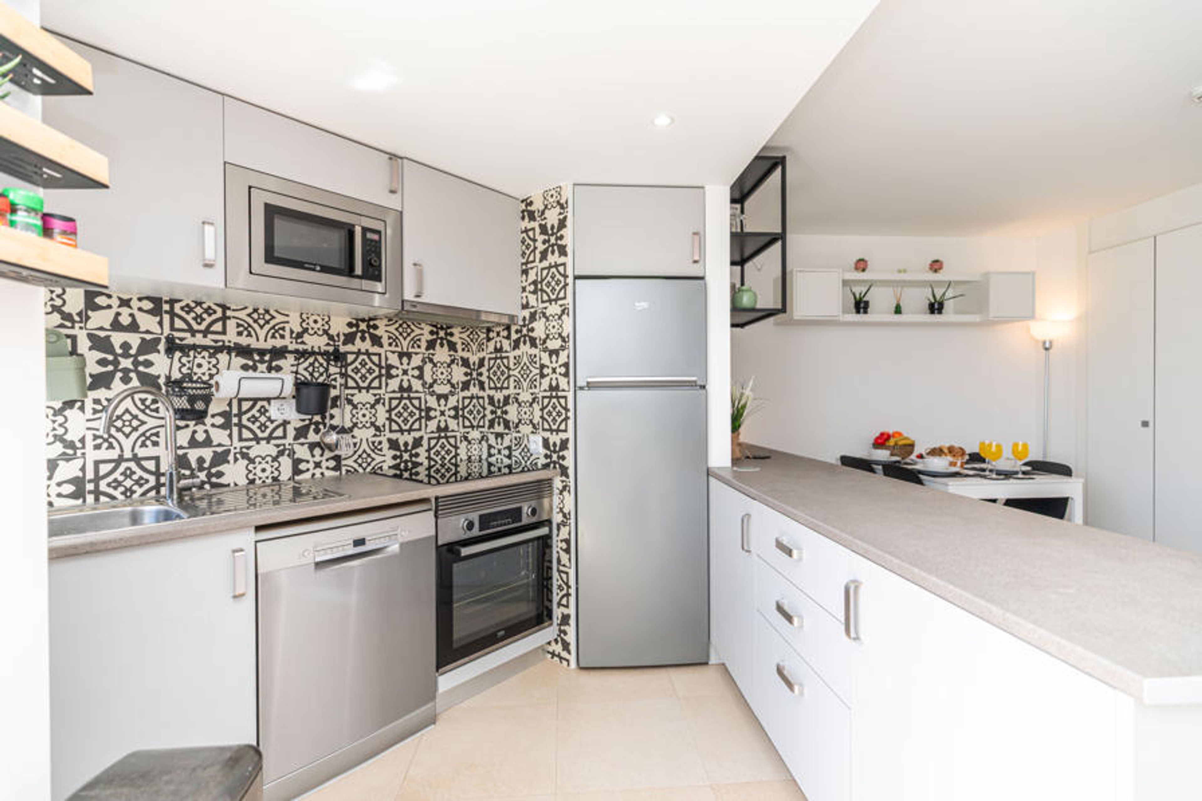 This cosy duplex apartment is located within the popular Golden Clube Resort, just a short stroll from the beach and the sparkling waterfront. Ideal for families or a couple, the apartment offers a comfortable and well-equipped base with everything you need for a relaxing holiday. Located on the second floor of a well-kept apartment block, the entrance leads into a stylish open-plan living area featuring comfy sofas, a large TV, high-speed internet, and a breakfast bar with stools. The fully equipped kitchen includes a dishwasher and washing machine, while the dining table provides the perfect spot for indoor meals. A convenient shower room is also located on this floor. Step out onto the sunny breakfast balcony—an ideal place to enjoy morning coffee or evening drinks.