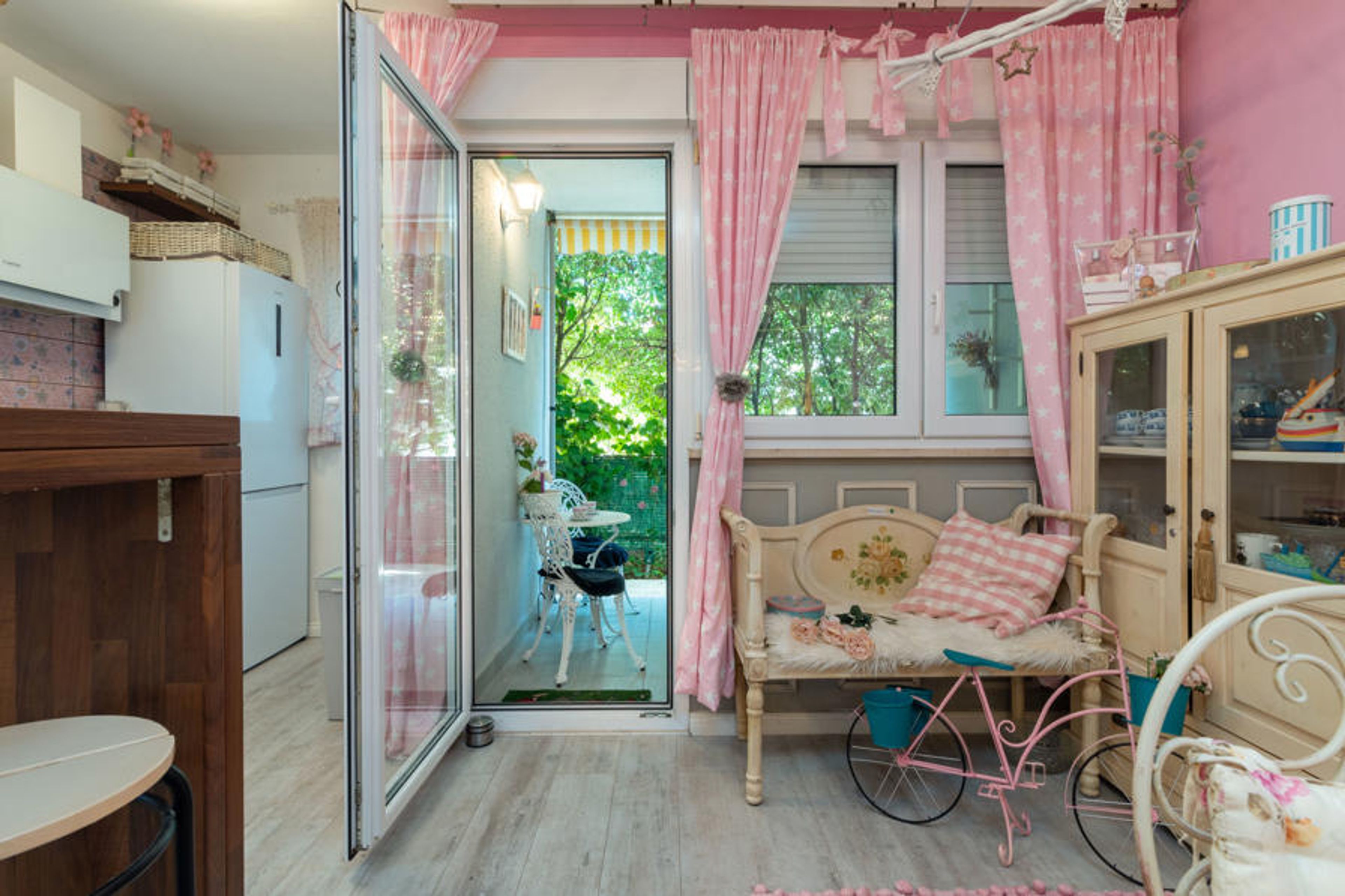 "Nataša", 3-room apartment 80 m2 on 1st floor. Living/dining room 40 m2 with 1 sofabed (120 cm, length 200 cm), cable TV (flat screen), air conditioning. Exit to the terrace. 1 room with 1 french bed (160 cm, length 200 cm), cable TV (flat screen). Exit to the terrace. 1 room with 2 beds (90 cm, length 200 cm), cable TV (flat screen). Exit to the terrace. Open kitchen (oven, dishwasher, 4 induction hot plates, kettle, microwave, freezer). Bath/WC. Forced-air heating. Terrace 20 m2 partly roofed terrace 24 m2, lawn 70 m2. Terrace furniture, deck chairs (2). Facilities: washing machine, baby cot, hair dryer. Internet (WiFi, free).