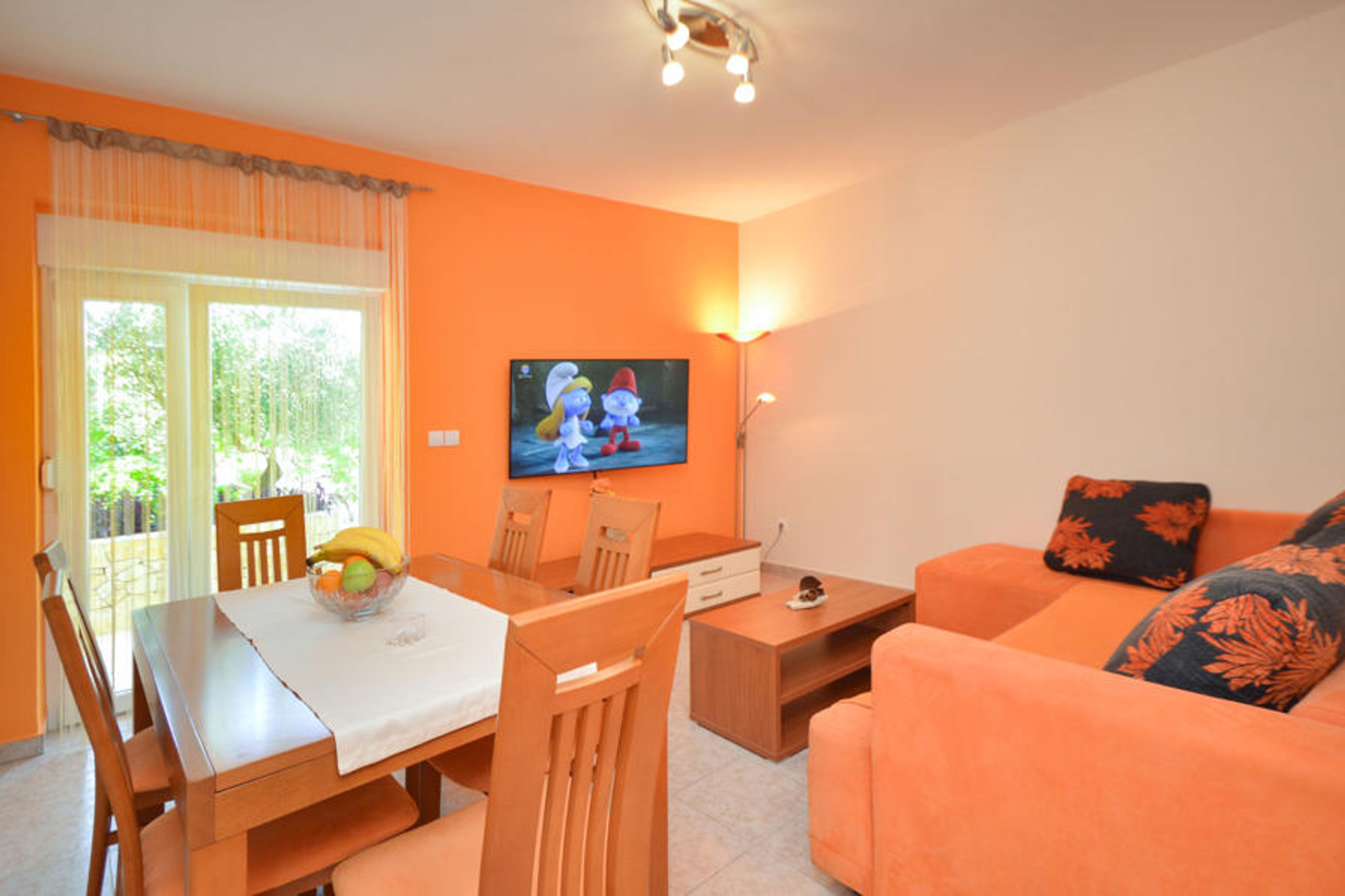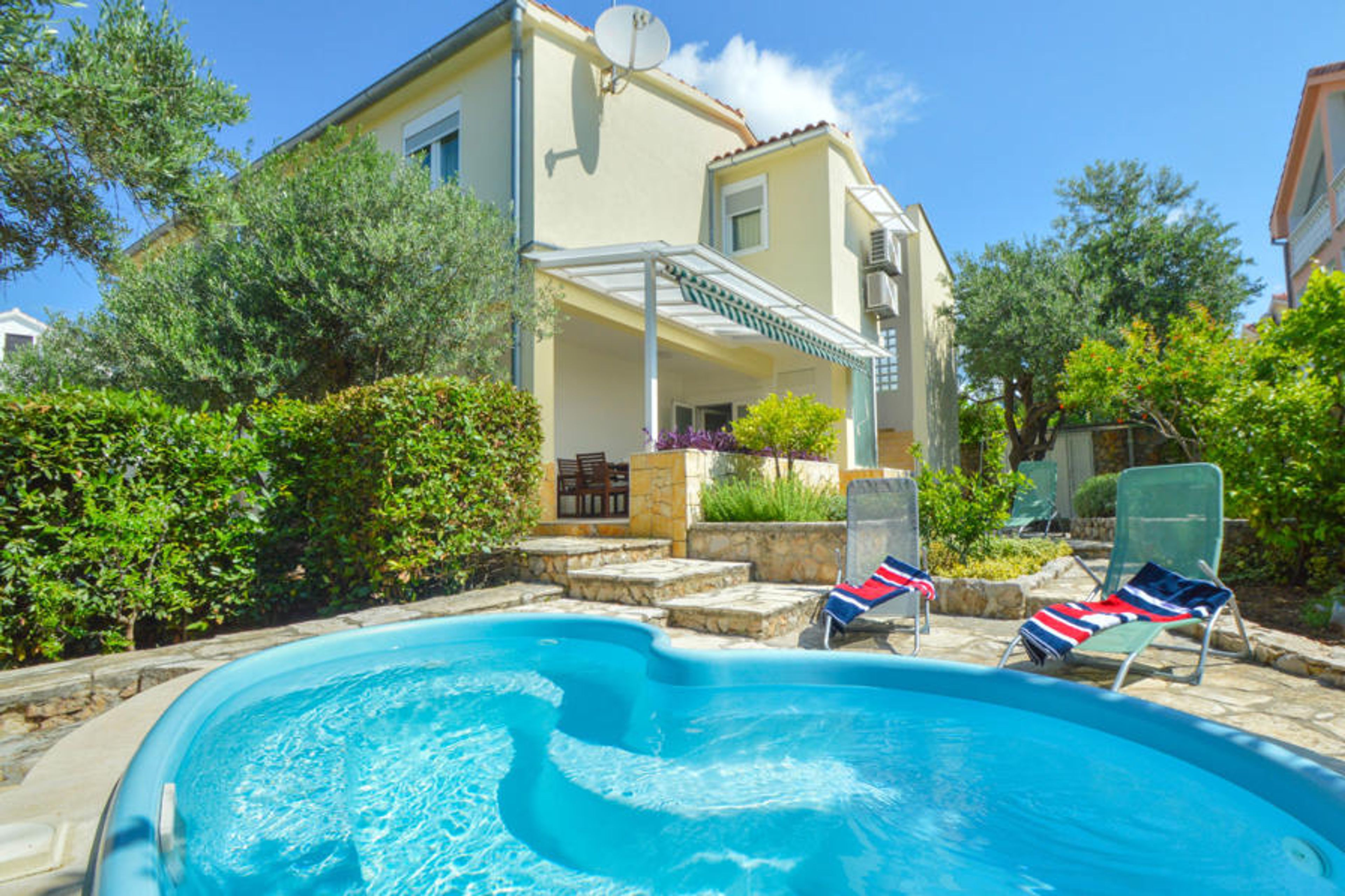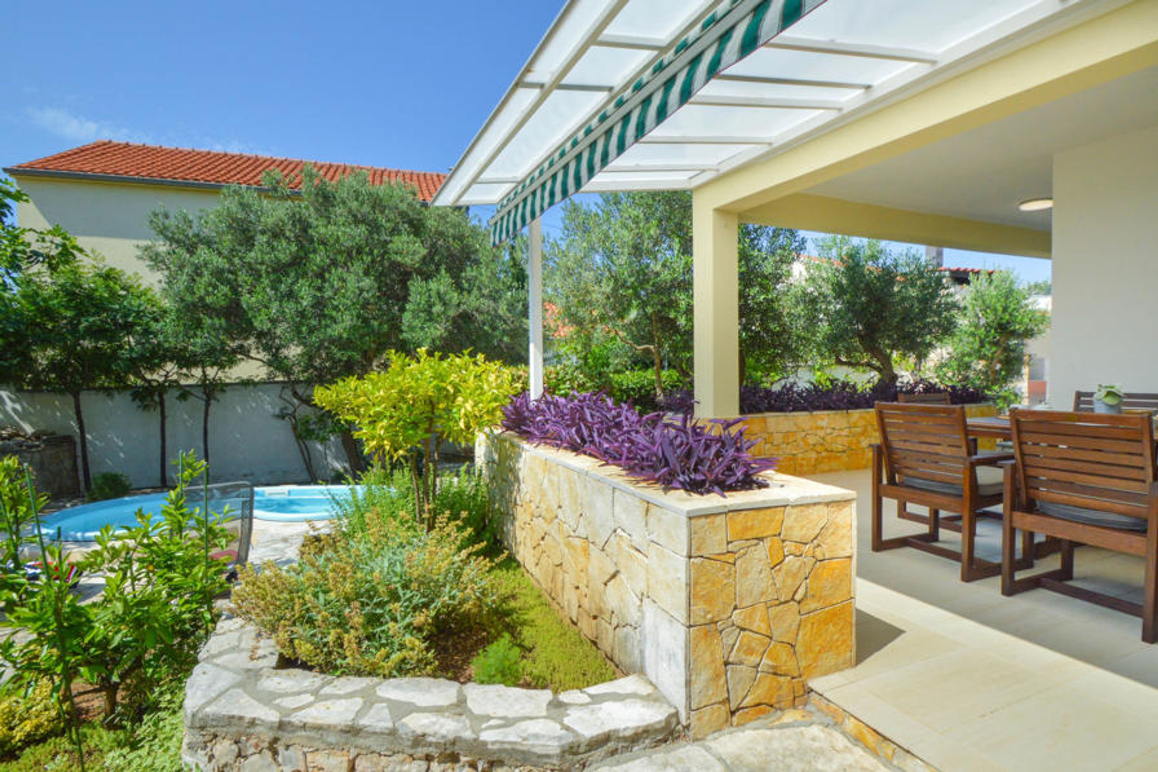 Tribunj 3 km from Vodice: Beautiful semi-detached house "Darena", renovated in 2008. In the district of Sovlje 1.5 km from the centre of Tribunj, in a quiet, sunny position, 500 m from the sea, 500 m from the beach. Private: property (fenced), well-kept garden with wildlife garden and trees, swimming pool kidney shaped (8 m2, depth 120 cm, seasonal availability: 01.Jun. - 30.Sep.). Outdoor shower, barbecue. In the house: internet access. Parking at the house on the premises. Shop 1.5 km, restaurant 200 m, bus stop 5.4 km, pebble beach, rocky beach, concrete beach 500 m. Concrete beach with showers in the bay of Sovlje, 500 m from the house.