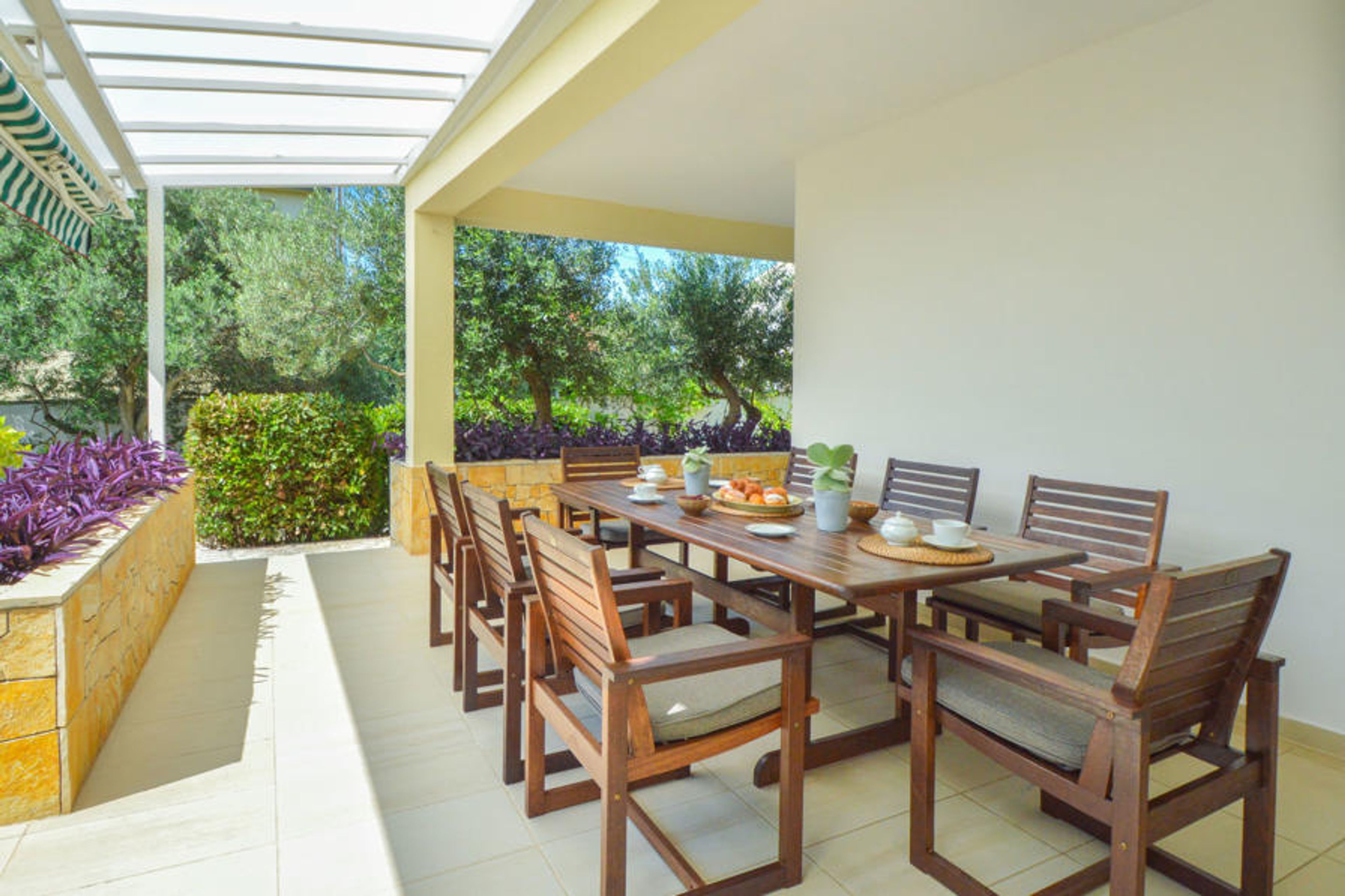 5-room semi-detached house 85 m2 on 2 levels, south-east facing position. Beautiful and cosy furnishings: living/dining room with satellite TV, flat screen, hi-fi system, DVD and air conditioning. Exit to the terrace. 1 room with 2 beds (80 cm, length 200 cm). Kitchen (oven, dishwasher, 4 induction hot plates, kettle, microwave, freezer, electric coffee machine). Exit to the terrace. Shower/WC. Upper floor: (exterior staircase), 1 room with 1 double bed (2 x 80 cm, length 200 cm), shower/WC, satellite TV, flat screen, hi-fi system and air conditioning. 1 room with 2 beds (80 cm, length 200 cm). Exit to the balcony. 1 room with 2 beds (80 cm, length 200 cm). Shower/WC. Air-conditioning (extra). No heating option. Balcony 6 m2, terrace 30 m2, roofed. Terrace furniture. View of the swimming pool and the garden. Facilities: washing machine. Internet (WiFi, free).