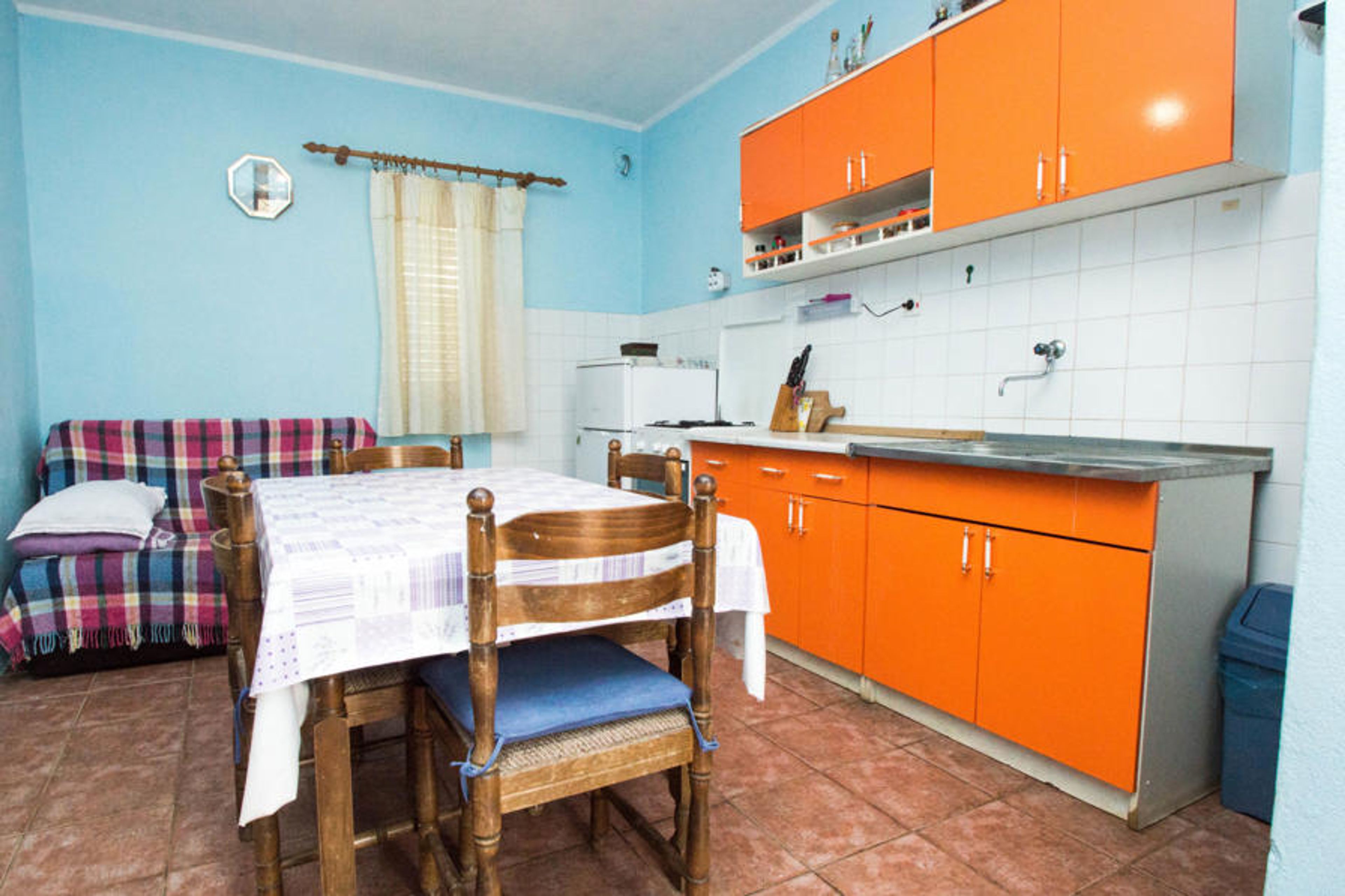 Single-family house "Marica". In a quiet, sunny position, 10 m from the sea, 10 m from the beach, in the countryside. Private: outdoor shower, terrace, garden furniture, barbecue. 3.5 km long motor access to 300 m from the house (via unmade road). Shop 5 km, restaurant 5 km, bus stop 9.6 km. Please note: private mooring, on request. House situated on the southern shore of Pasman island, in the bay of Landjin, near the Kornati archipelago (national park). Parking at the owner´s house in Kraj. On request, in advance, the owner delivers groceries.