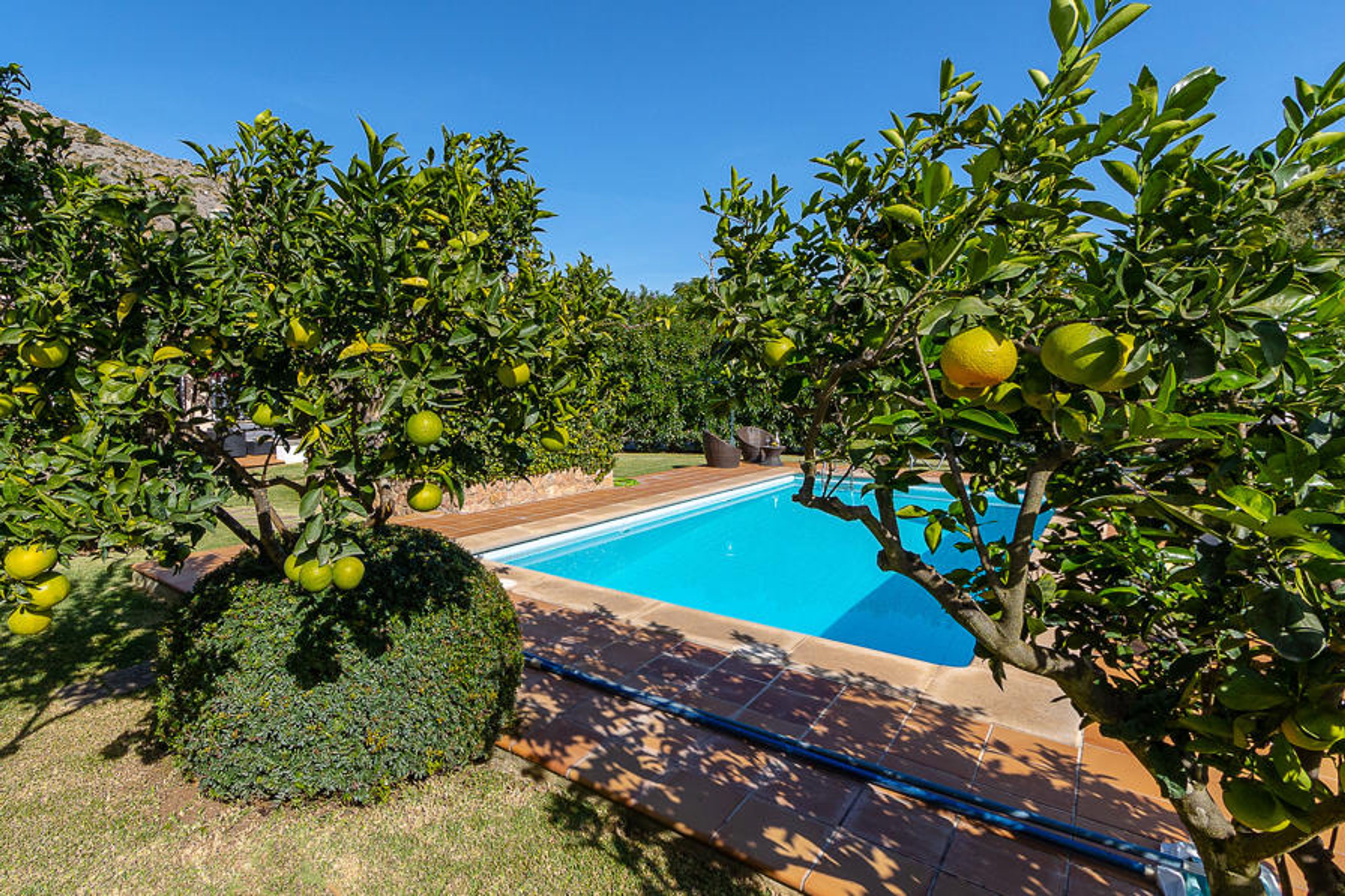 The villa is located in the quiet area of La Font, only 1.5 km from the village of Pollensa. The well-known beaches of Cala San Vicente and Puerto de Pollensa are 4 km away. The main attraction of Cala Sant Vicente is to enjoy the tranquillity and visit the various beaches such as Cala Barques, Cala Clara and Cala Molin. The crystal clear waters and rock formations make Cala Sant Vicente an ideal place for diving.