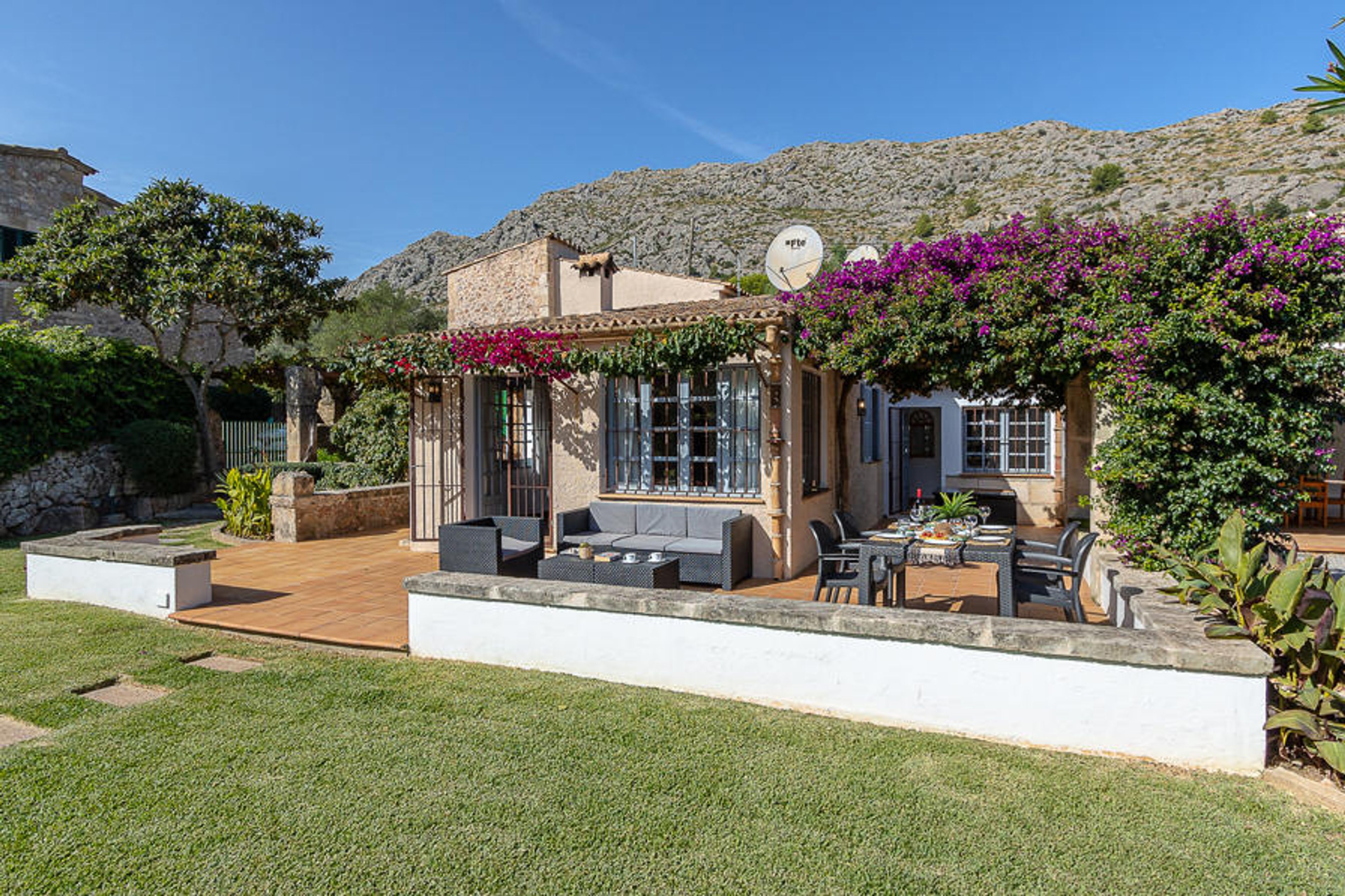 This charming traditional Mallorcan house is surrounded by a beautiful garden with lawn, trees and hedges. The holiday villa is very cosy and completely furnished with new furniture.