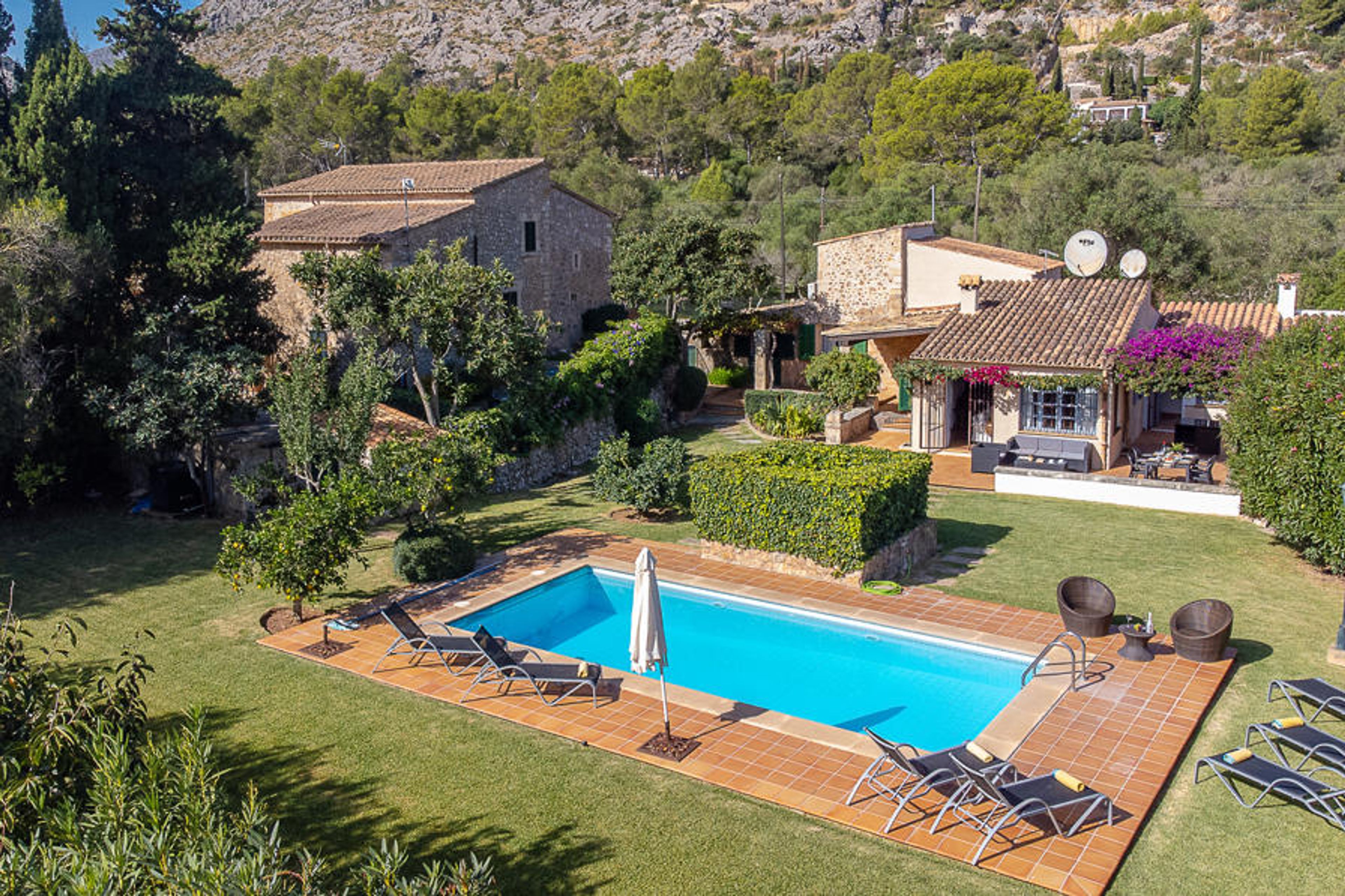 This charming traditional Mallorcan house is surrounded by a beautiful garden with lawn, trees and hedges.