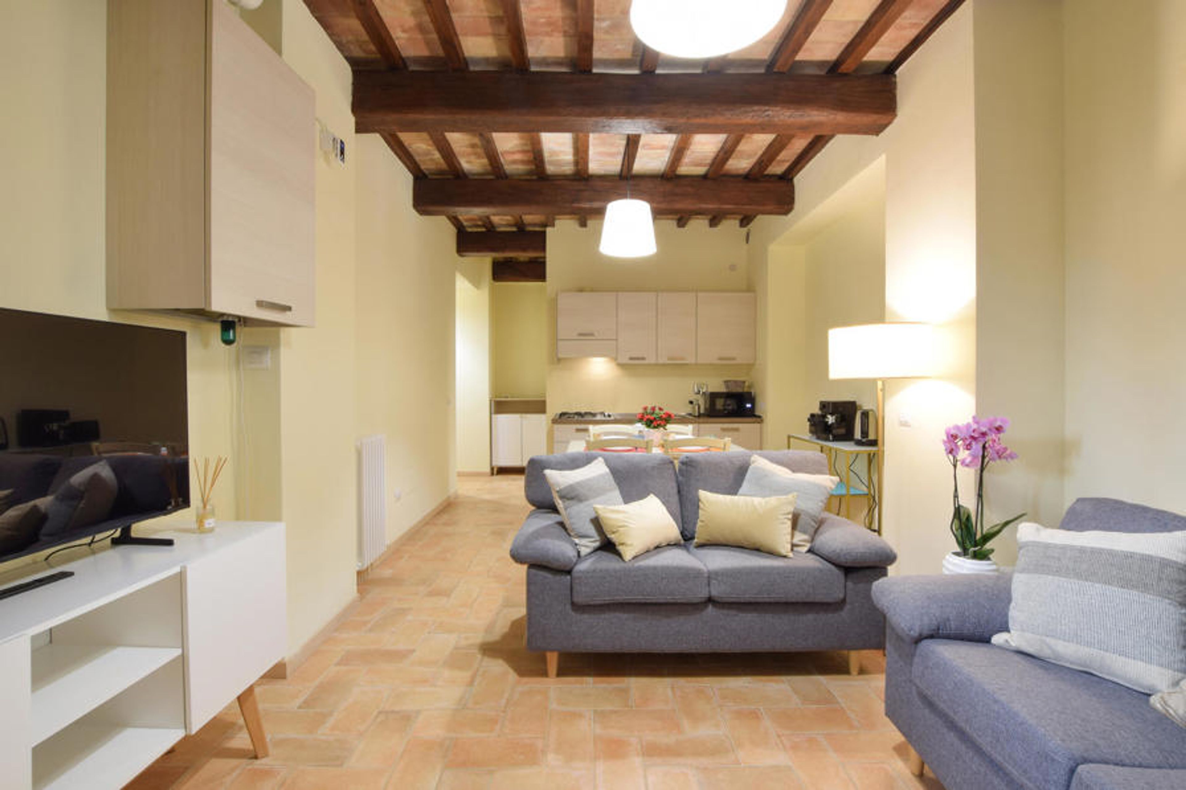 This carefully renovated holiday apartment is part of an impressive 13th century estate and welcomes you with a cosy atmosphere of tasteful furniture and charming, authentic details. Serve delicious pasta dishes and take a seat at the inviting dining table. Plan your activities in peace and quiet and make yourself comfortable on the sofas for a film or a good book after a long day.
