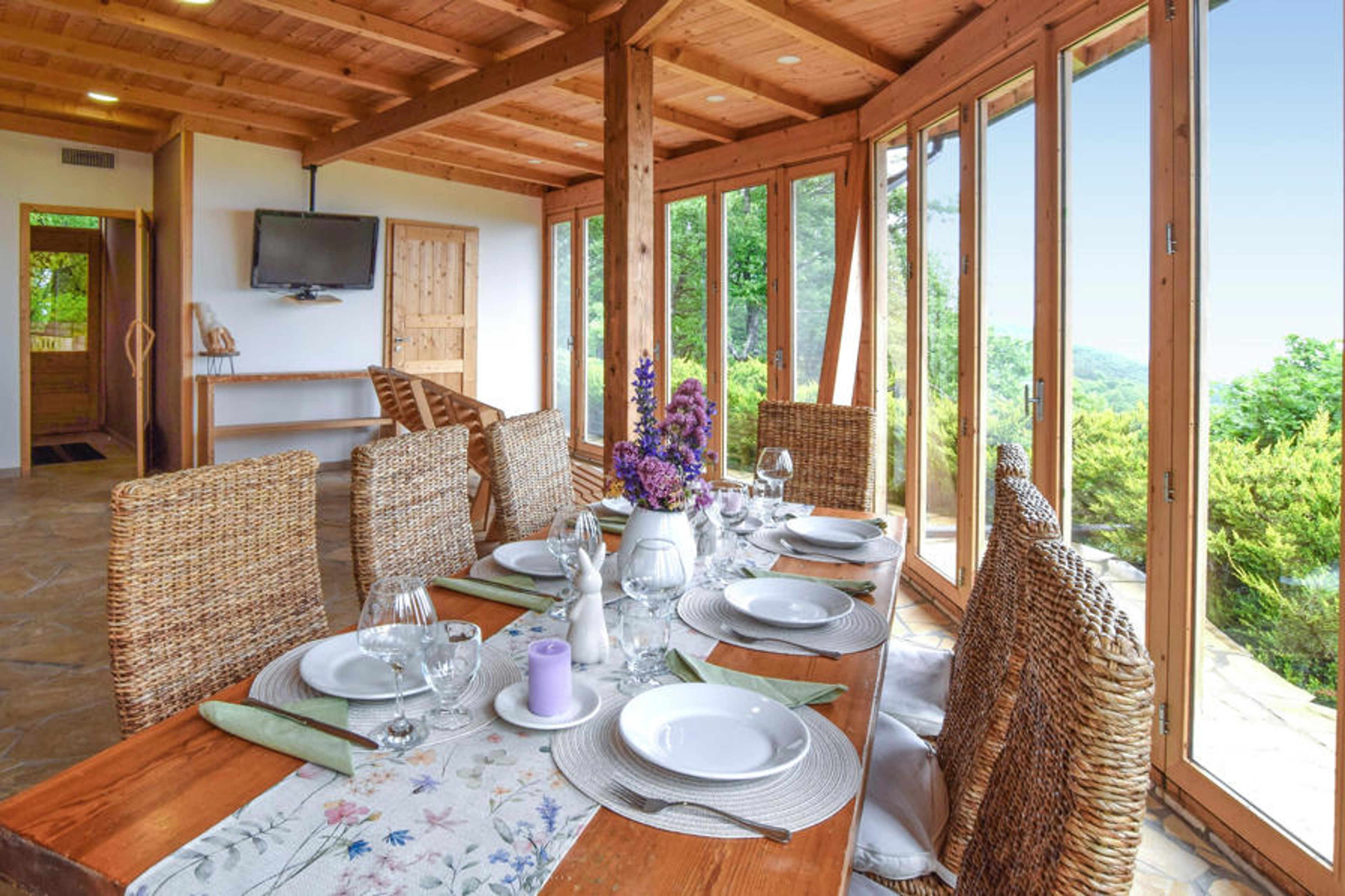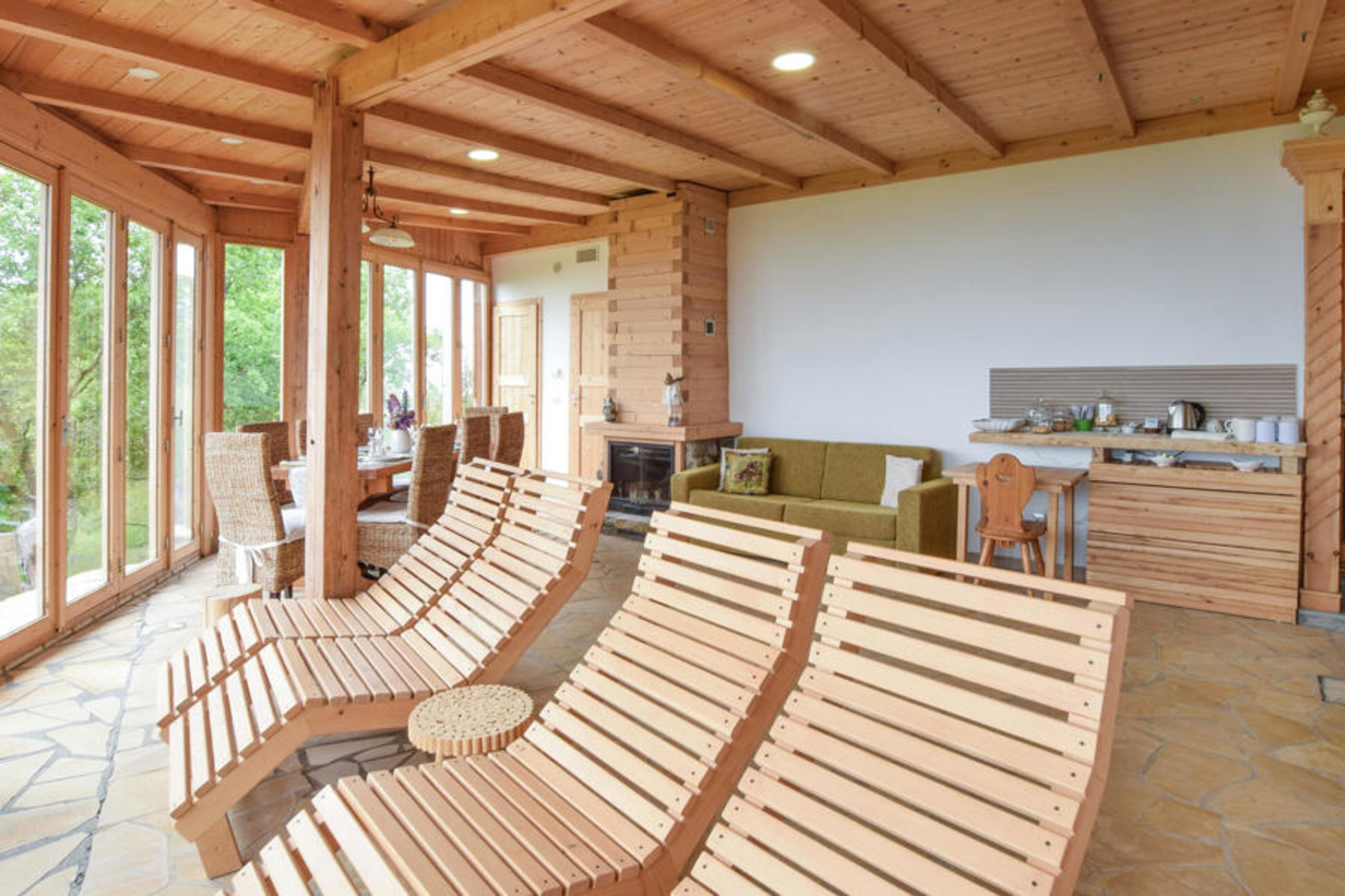 This bright and spacious holiday home is designed to offer you relaxation and a pleasant atmosphere in the midst of the enchanting landscape. Look forward to harmonious meals in the open-plan living area, where you can enjoy a wonderful view of the greenery thanks to the large windows. Treat yourself to cosy hours in the indoor pool or use the time here to teach your children how to swim.