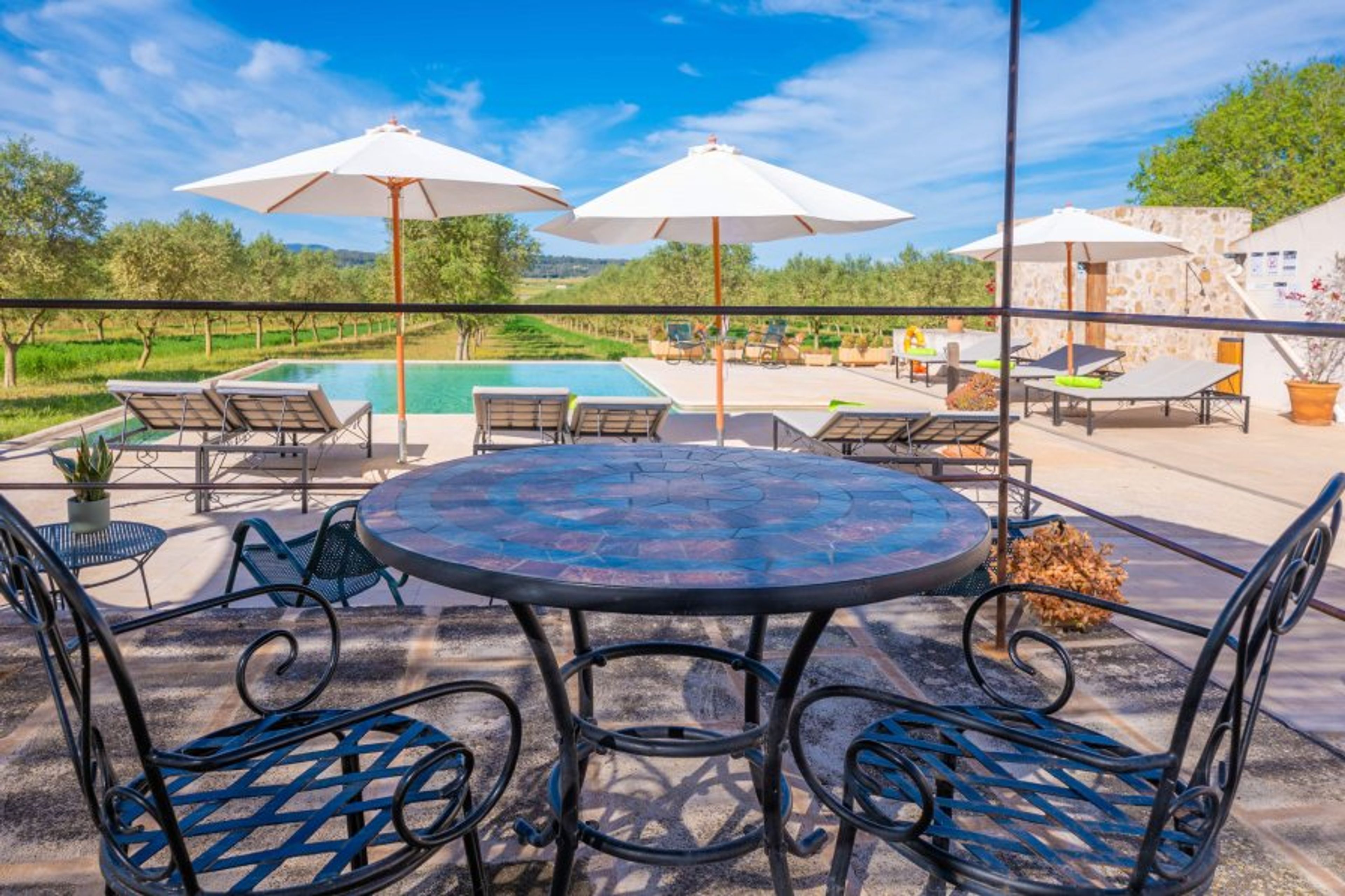 The agroturismo has beautiful exteriors completely prepared for your comfort. Starting with the beautiful communal chlorine pool of 6x7 meters and a depth of 1.40 meters, it is ideal for refreshing swims under the Mediterranean sun. Surrounding the pool, there are several sun loungers and parasols for relaxing after a swim. Back in the room, you have a private terrace furnished and ready to enjoy the rural landscape. The room on the first floor has a private balcony with mountain views.