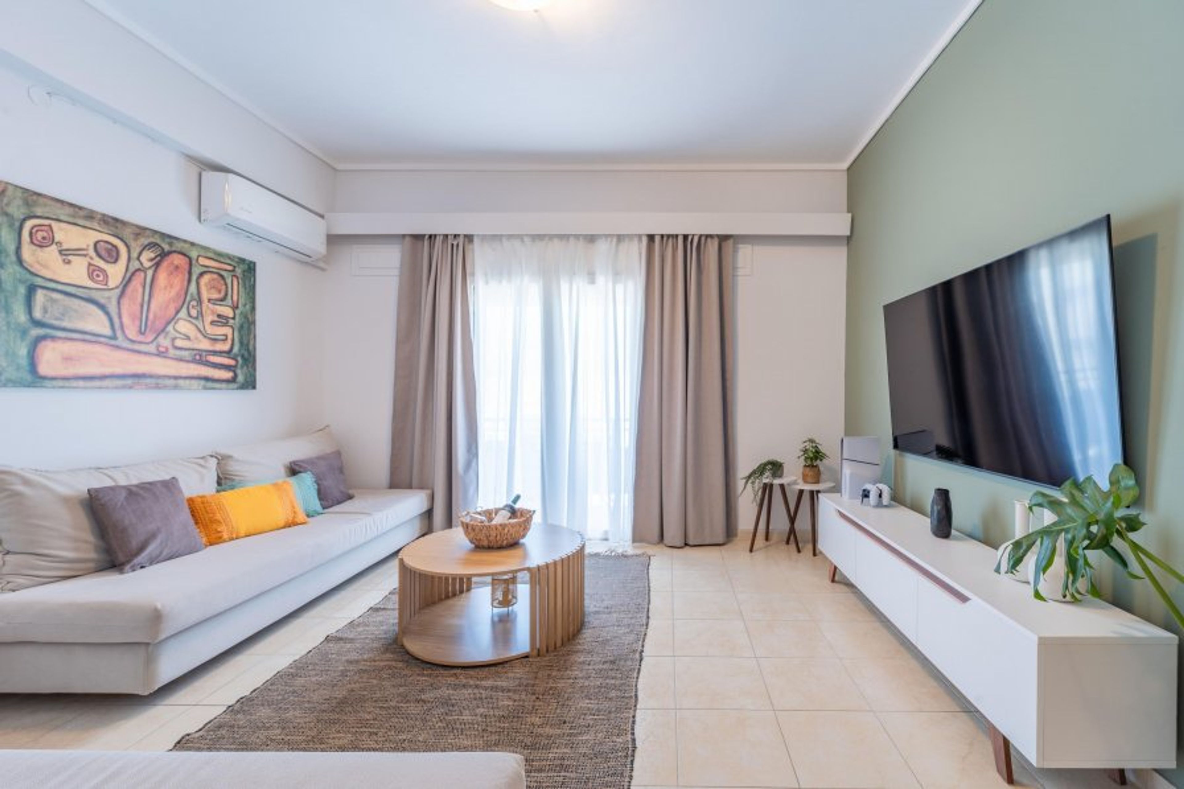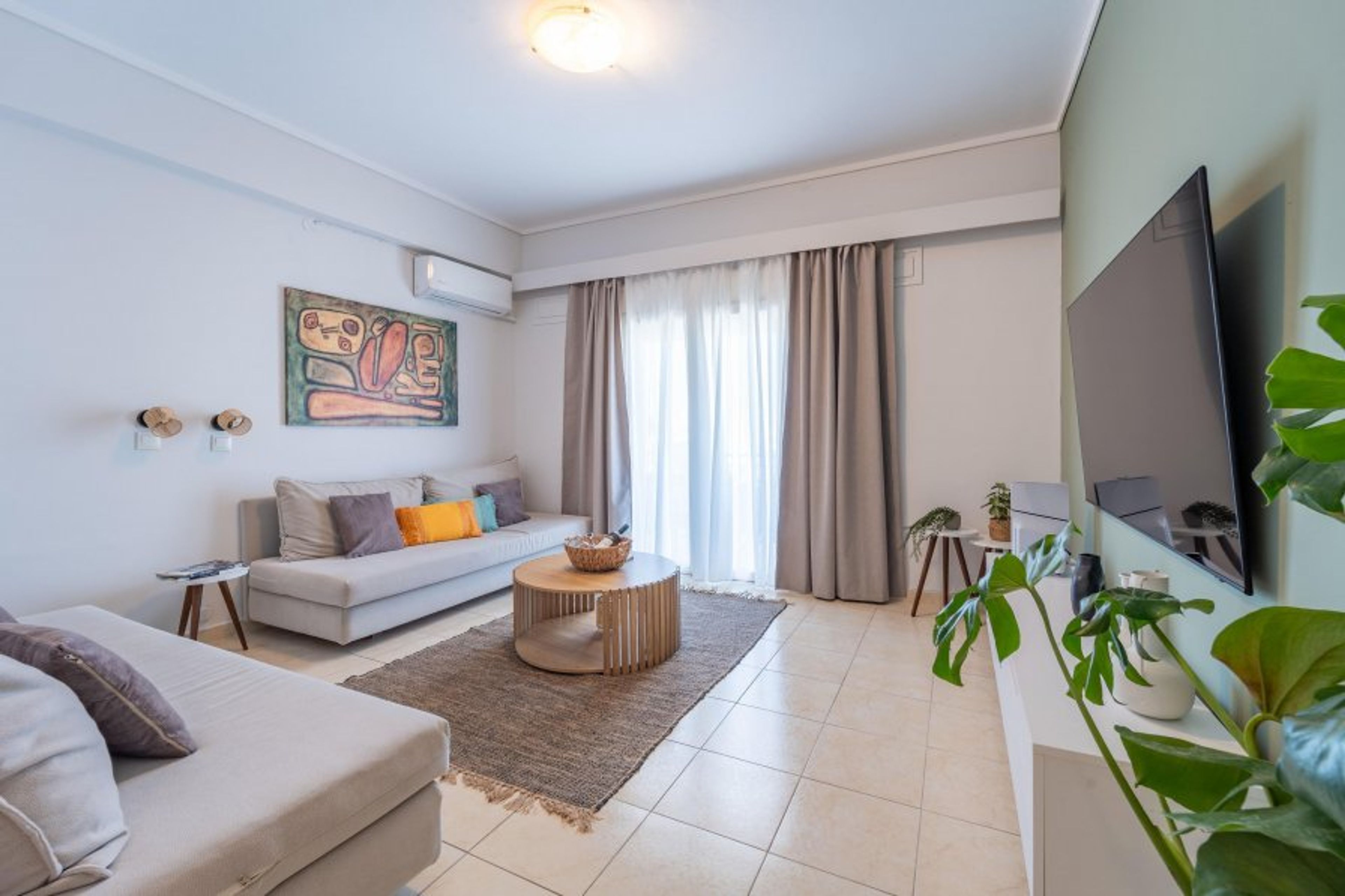 This elegant apartment for rent is situated in the center of Rhodes, near the port, only a walking distance of 15 minutes from the nearest beach and the beautiful Old Town of Rhodes. It is quite functional and will offer you everything you might need during your stay in Rhodes. This beautiful apartment has a modern ambiance and conveniently accommodates up to 6 guests.