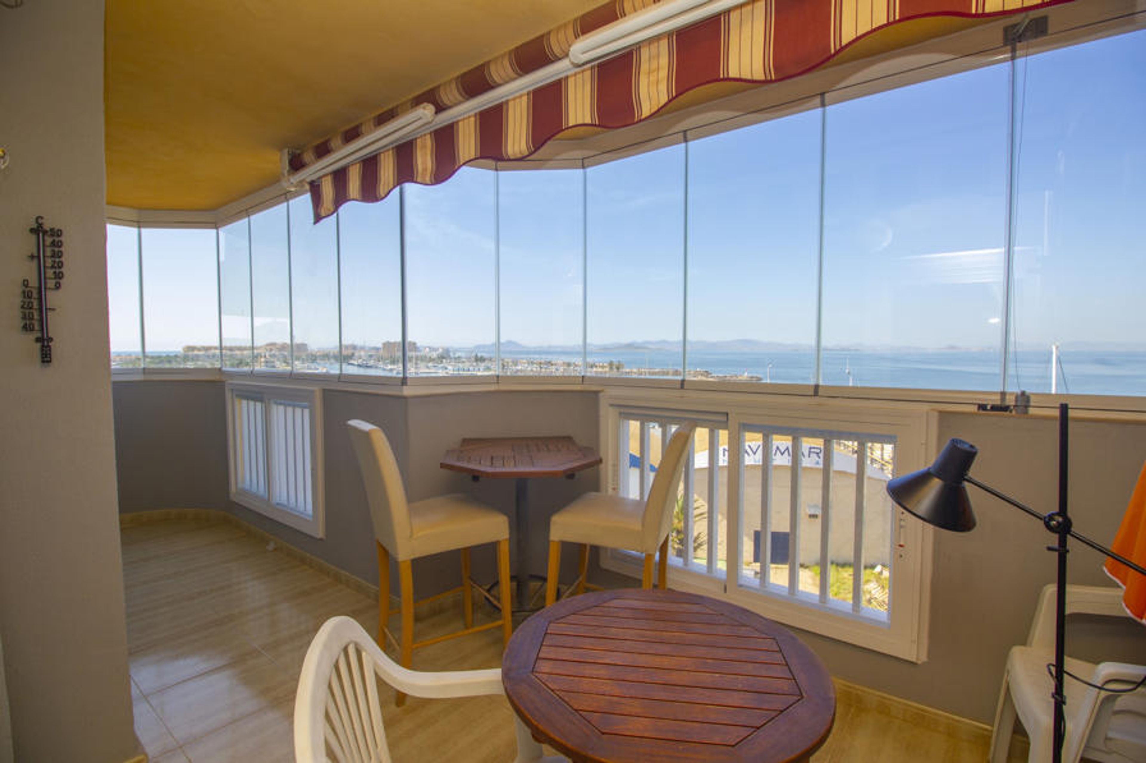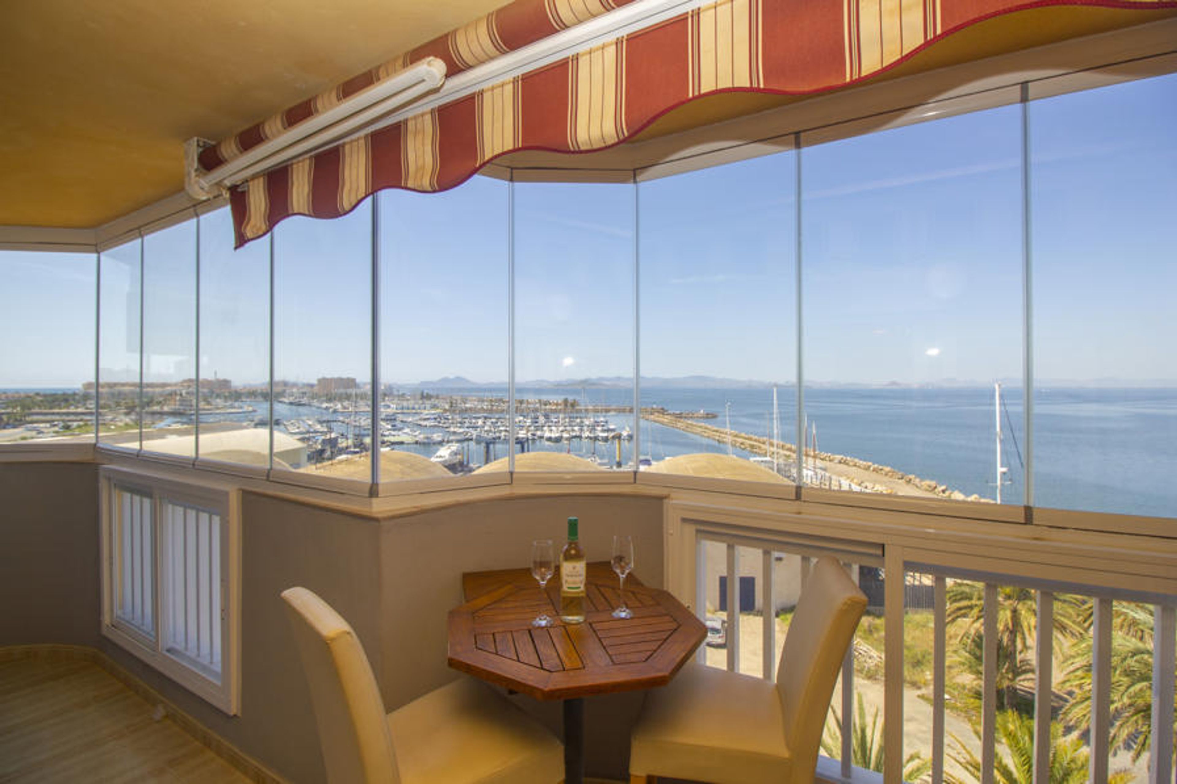 This apartment is in the First Line of the Mar Menor and 50 metres from the Mediterranean. Located in the Seychelles Urbanisation, at km 14 of La Manga, on a 5th floor facing the Tomás Maestre Port.