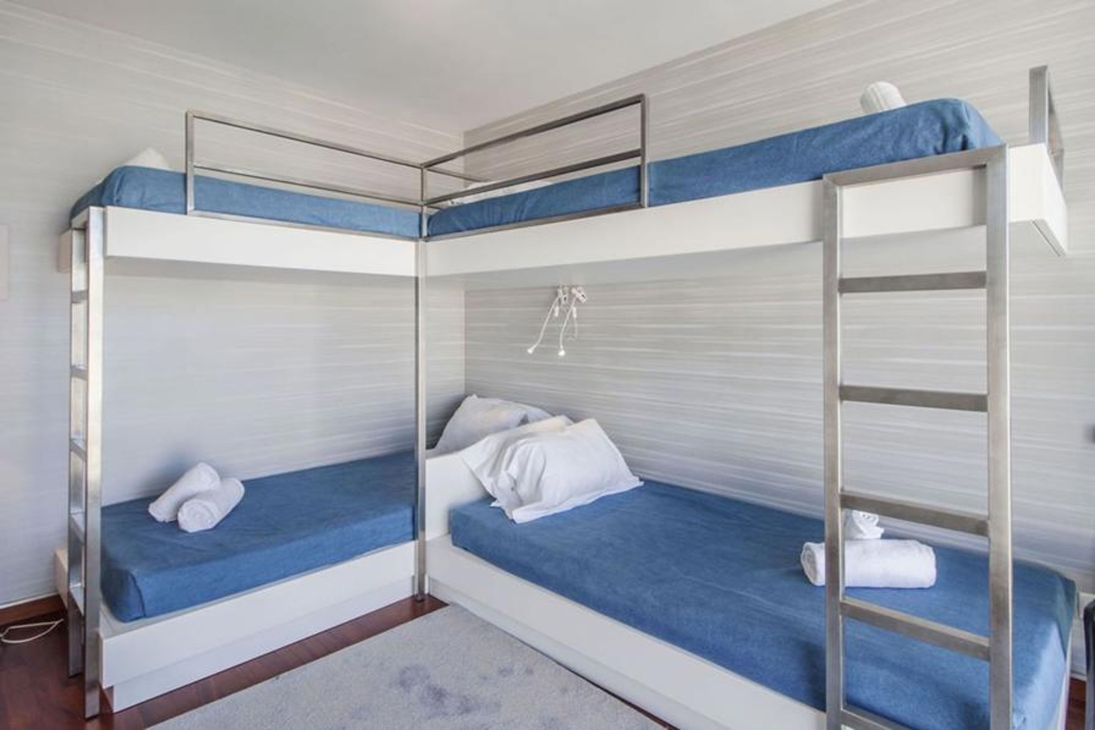 Another charming bedroom with two bunk beds, offering a cozy and fun space for younger guests.