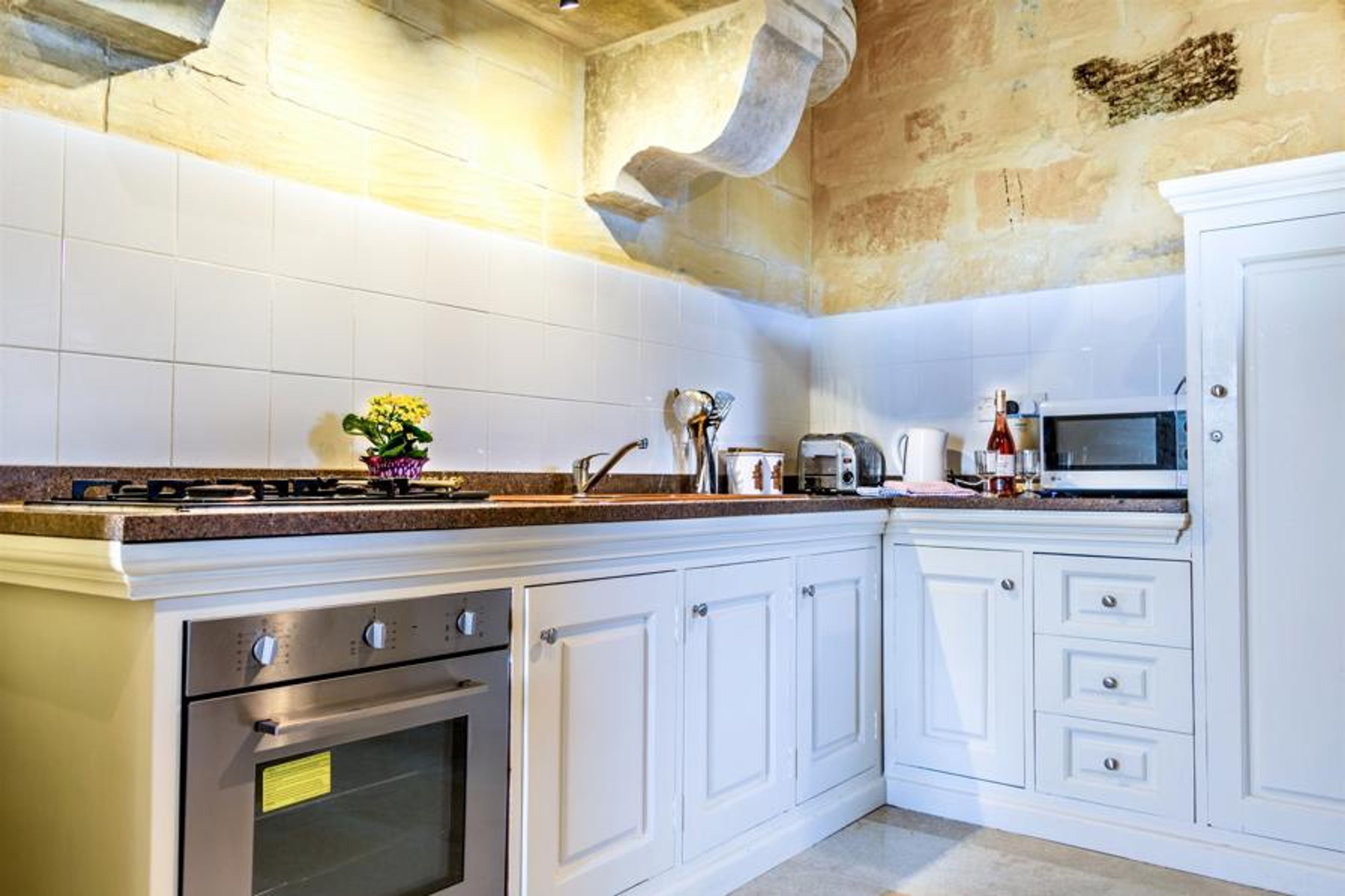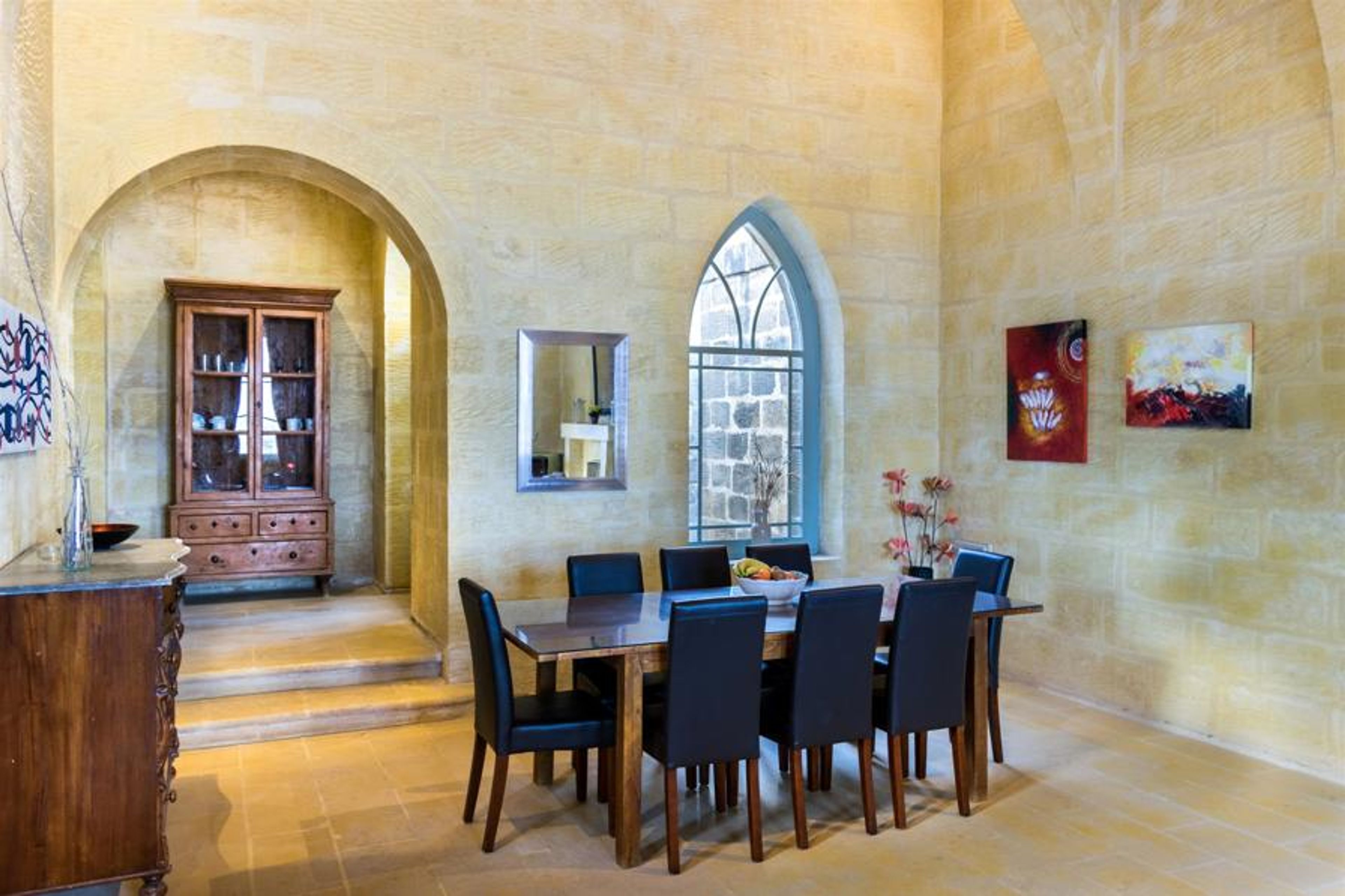 Furnished in a typical Gozitan style with lots of warm rustic character, steps lead up to the private swimming pool which lies in a sun-soaked terrace to the side of the property and also features those spectacular views again from the terrace. The living area enjoys a fireplace, ensuring a cosy stay during the winter months.