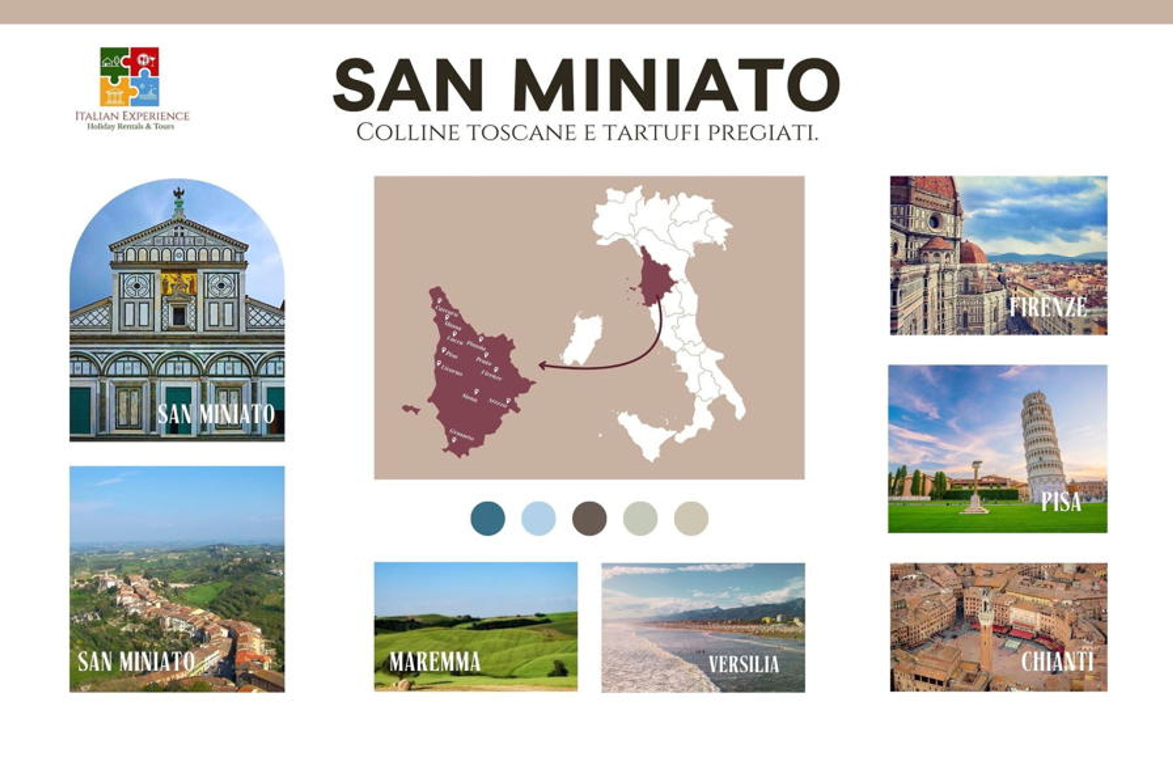 • Attractions: San Miniato is a charming hilltop village in the heart of Tuscany, known for its medieval historic center and prized white truffle. Dominated by the Tower of Frederick II, the city offers spectacular panoramic views of the countryside between Florence and Pisa. Walking through its stone streets you will discover ancient churches, historic buildings and typical restaurants where you can taste excellent food and wine.