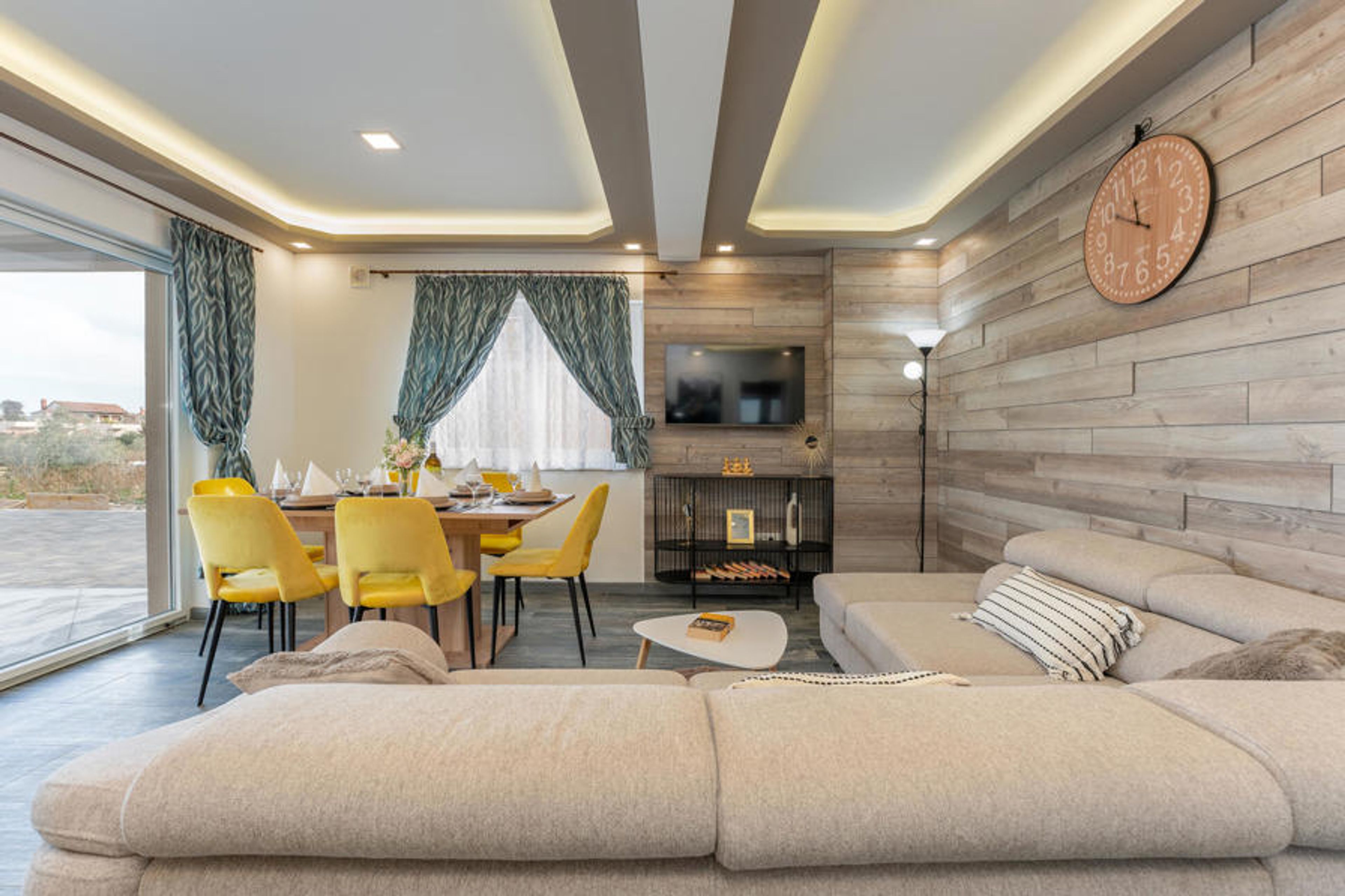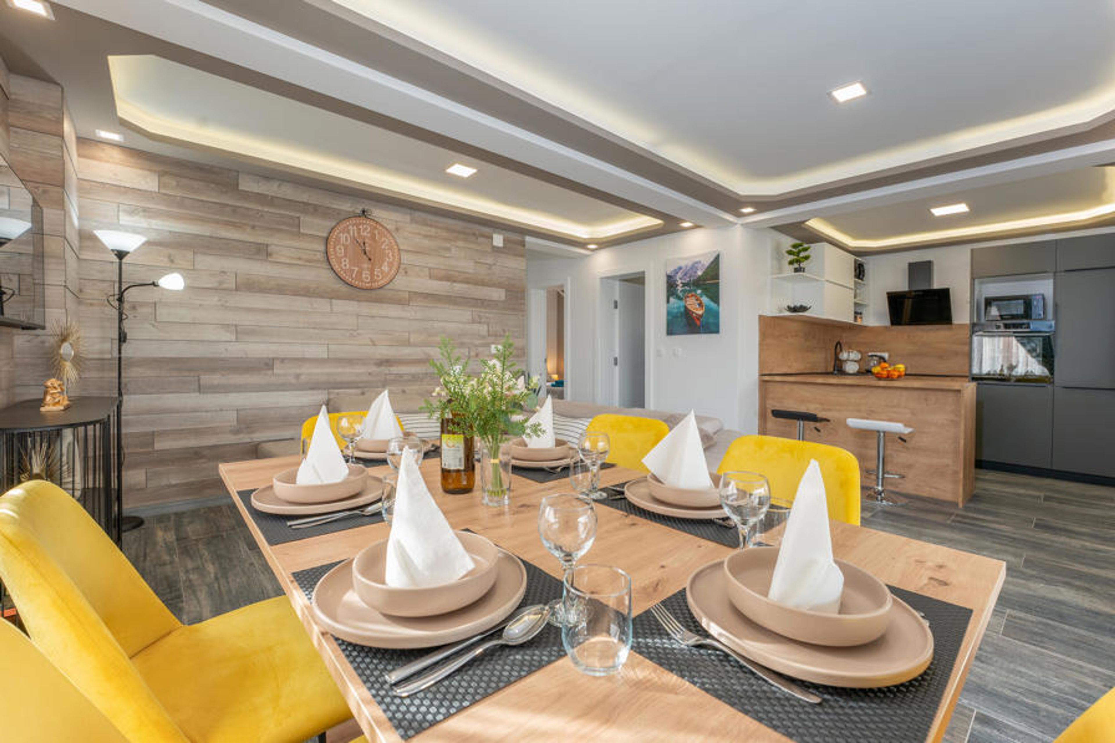 This modern house offers the ideal setting for a relaxing break from everyday life. Come to rest and recharge your batteries surrounded by comfort and a soothing atmosphere. The calm design in a modern wood look and subtle colours is pleasantly enlivened by fresh, sunny accents. Relax on the large sofa with a good conversation, listen to your favourite podcast or treat your loved ones to a home-cooked meal.