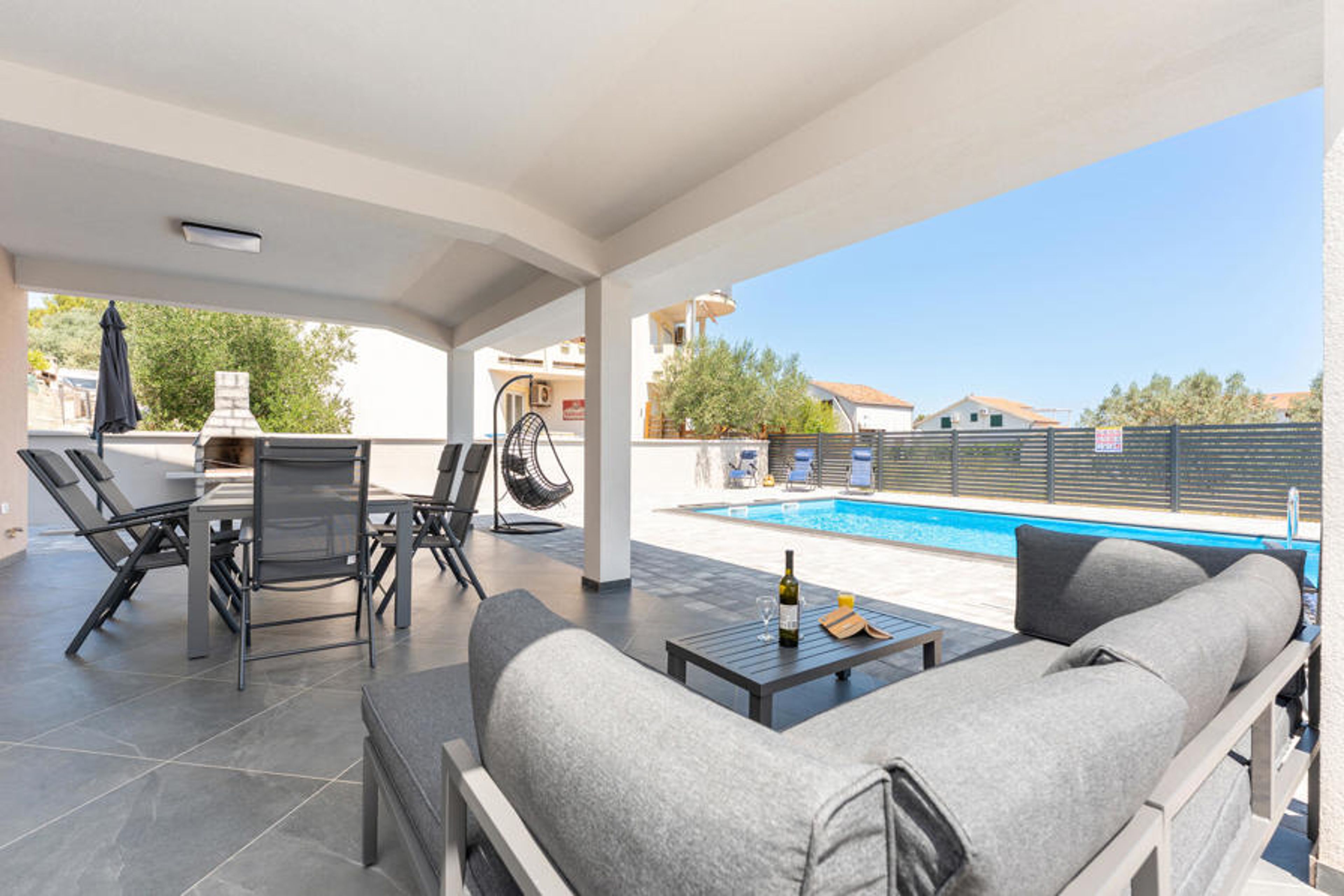 Step out onto the terrace in the morning with a cup of coffee and enjoy the view of the sea. Refresh yourself in the pool by swimming or playing water polo before relaxing on the deckchairs with a cool drink. Gather for a cosy barbecue and round off the day with a bottle of Croatian wine.
