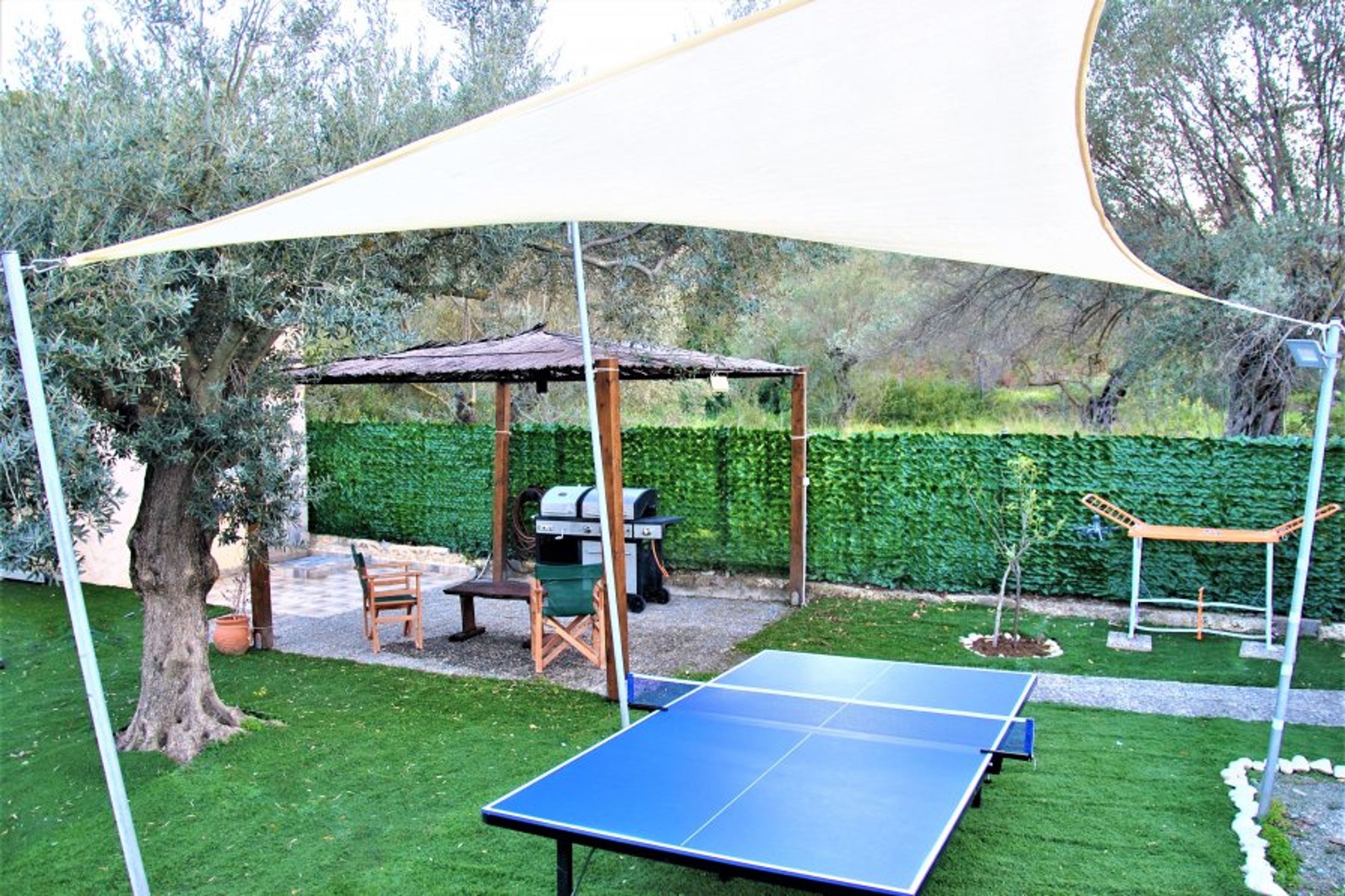 The 1650 m² fully fenced garden that provides safety to your pets, has a 2-seat secured free parking, a ping pong table with a night-time spotlight, and an external transportable BBQ, to prepare the family's meal or dinner and an outdoor cinema.