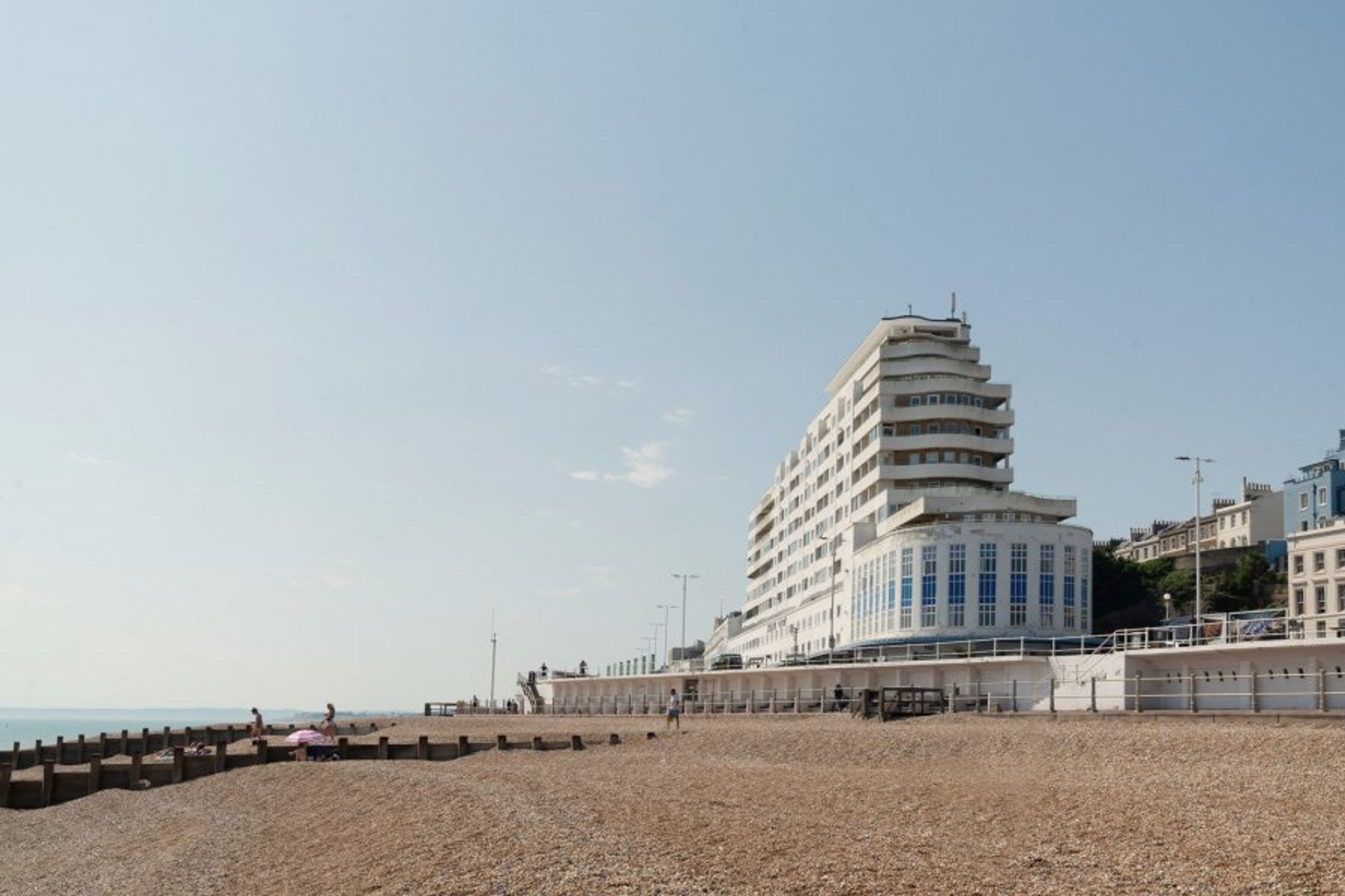 This bright one-bedroom apartment sits on the ninth floor of St Leonards-on-Sea's Grade II-listed Marine Court.