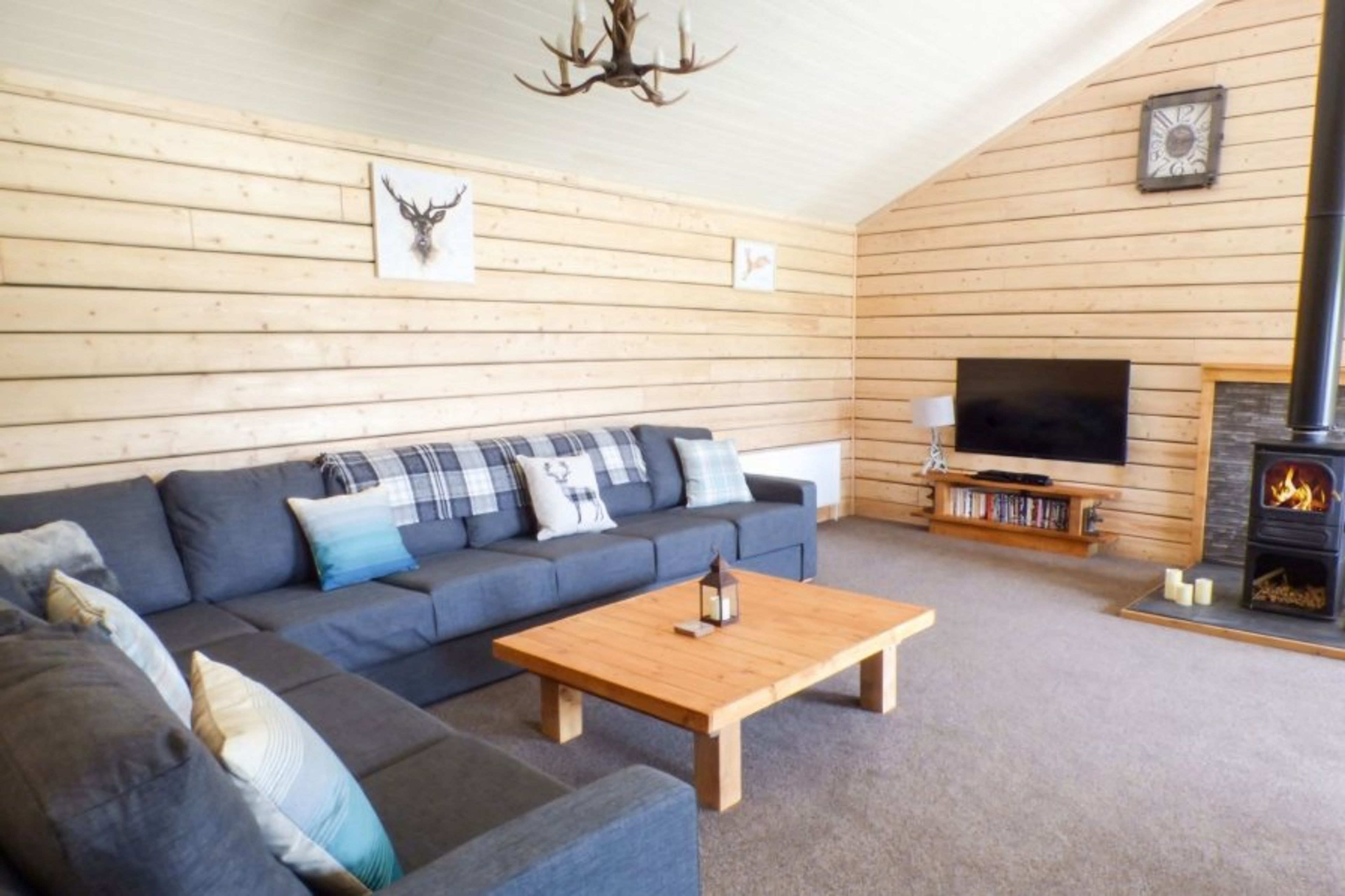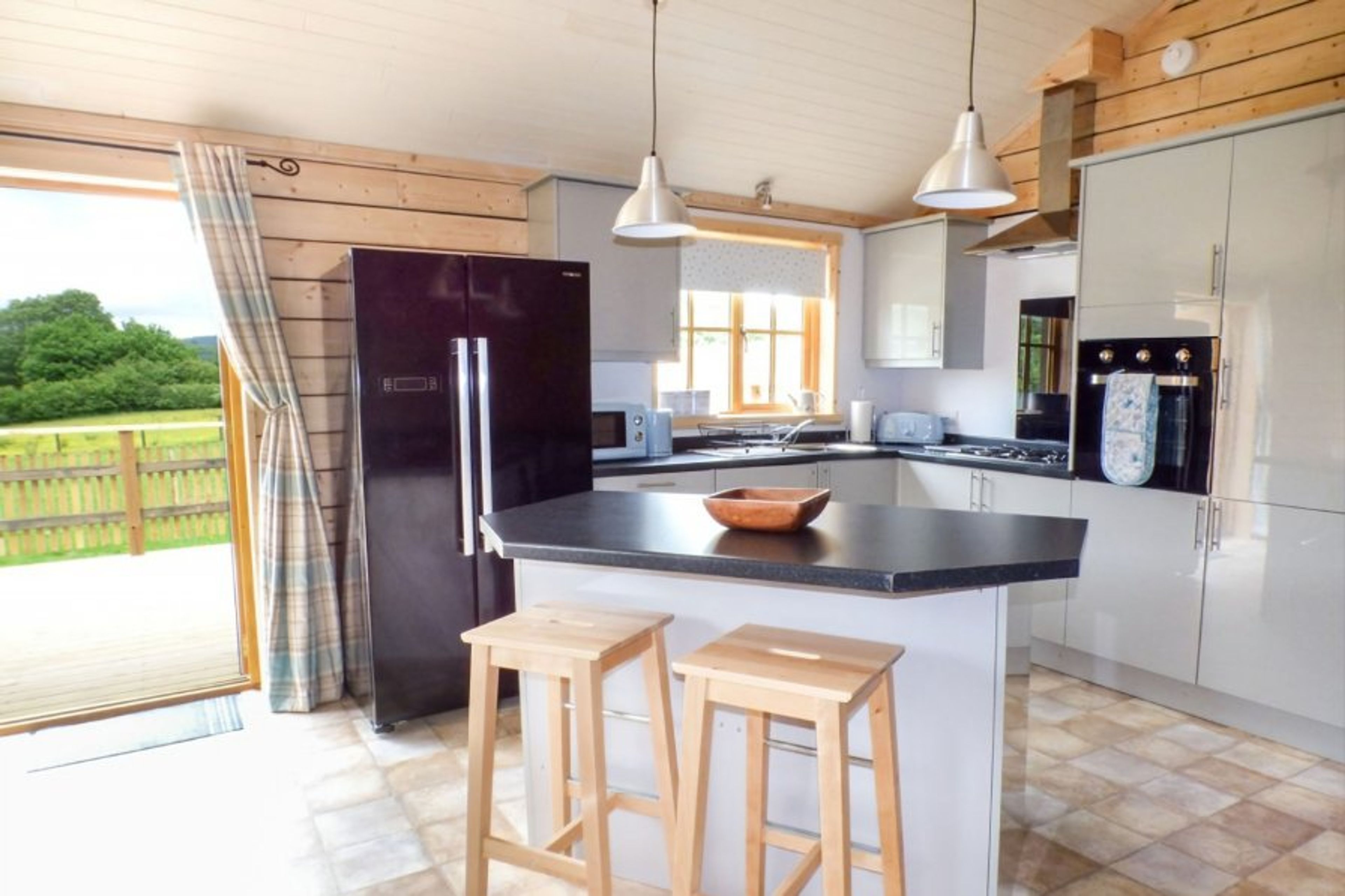 The cabin has a large open-plan living area. Fully fitted kitchen with everything you need for your stay. 50inch tv with Freesat and firestick. Dining area for 6 people.