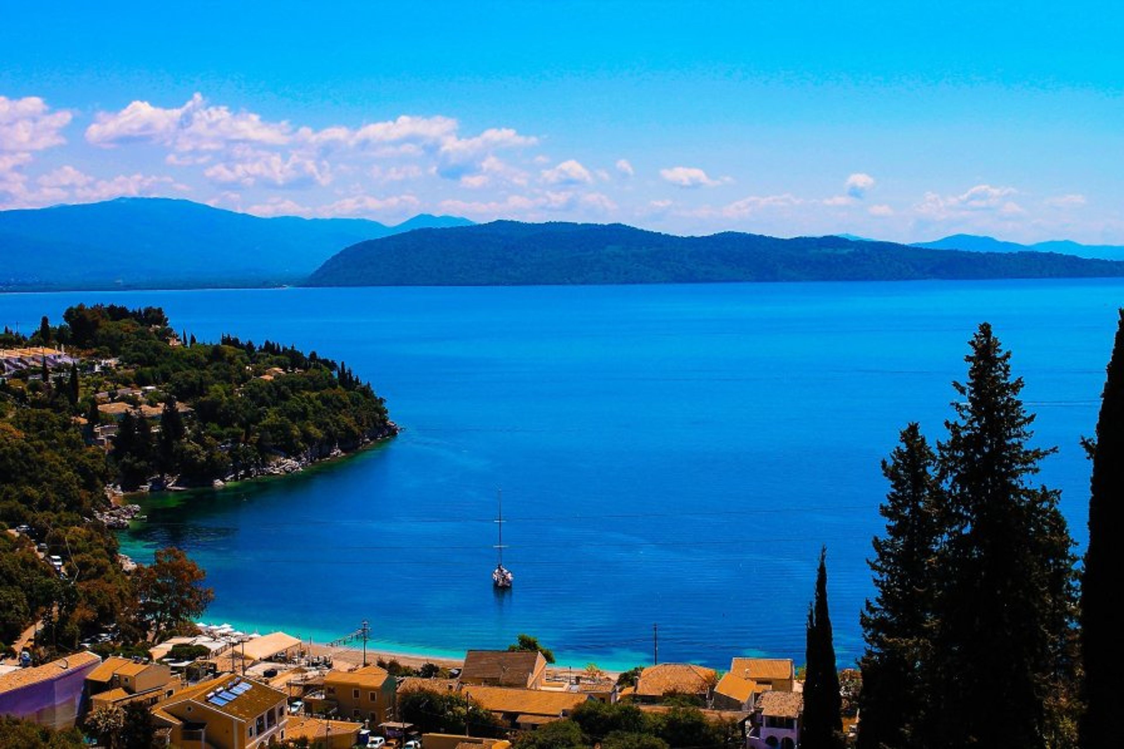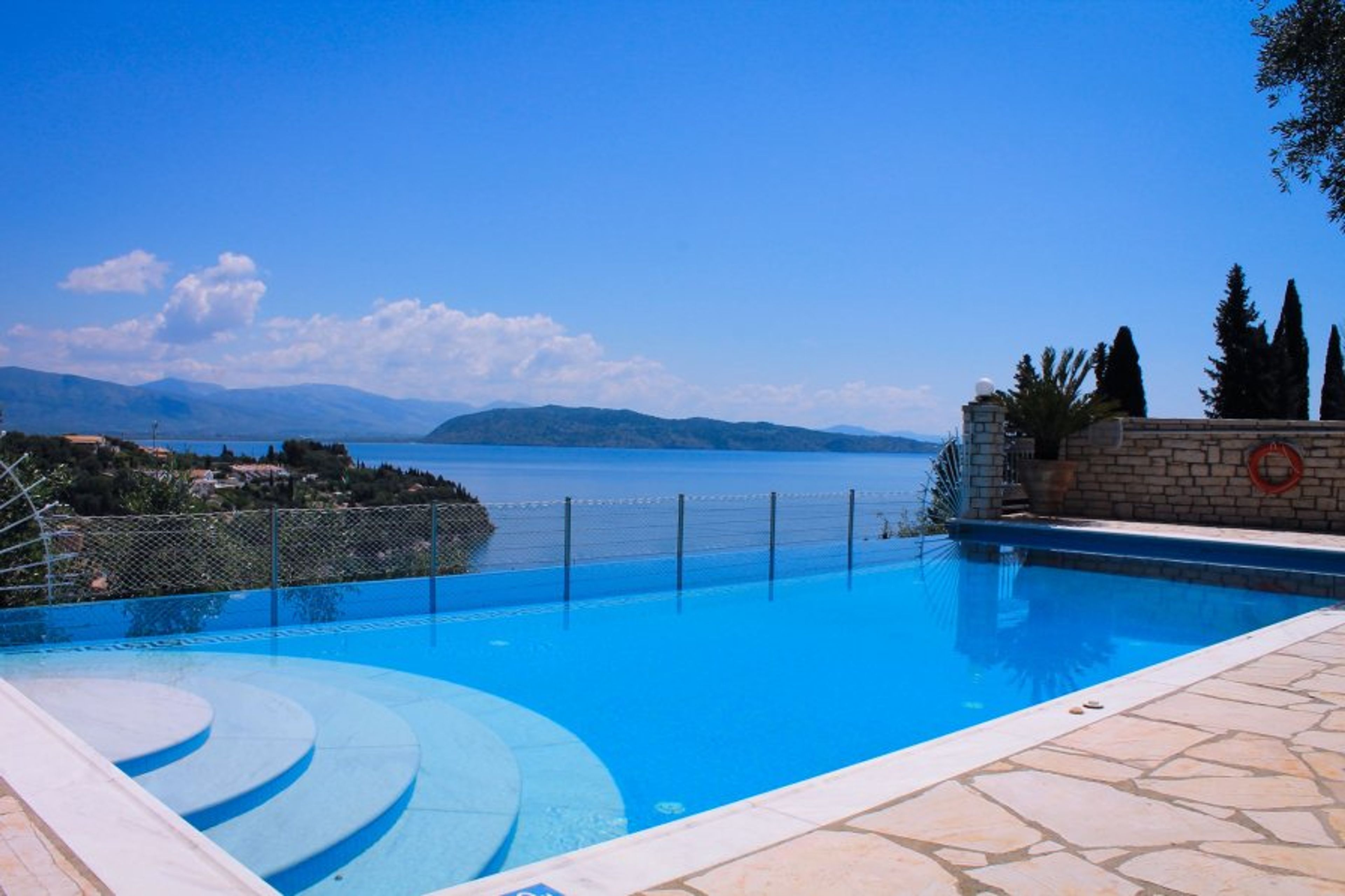 Villa Kyriaki is in the neighborhood of Vlachatika, only a few meters above the well-known tourist village of Kalami, where the English author Lawrence Durrell lived here and where, among the green plumes of cypress trees and the shuffling shadows of olive branches — their charcoal-black trunks thick and gnarled like walnuts — he discovered his own voice as writer. The property is situated on the crest of a small hill, providing its visitors with beautiful and unimpeded views of the Albanian coast as well as an unrivalled sunrise view. The villa Kyriaki, which includes five bedrooms and six bathrooms, is suitable for large parties or anyone who wants to spend their vacation in a stylish setting.