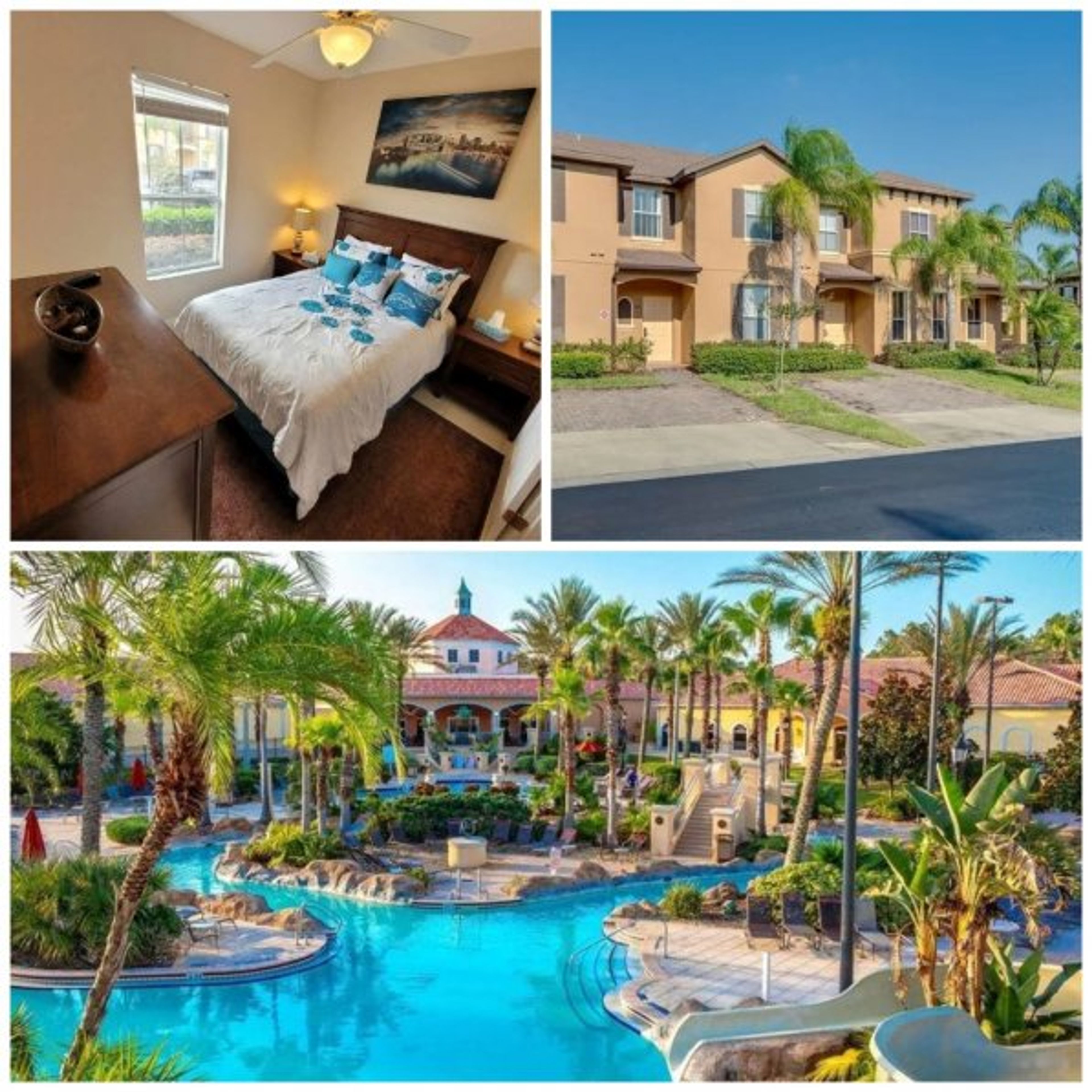Discover your dream getaway in the prestigious, gated Resort community of Regal Palms! This pristine TOWNHOME features 3 bedrooms and 2 full bathrooms, making it the perfect place to enjoy Florida paradise. Just minutes from Disney Worlds Main Gate, this Tuscan-style complex has all you need! Bask in the natural light of this spacious townhome, complete with ceramic tile throughout the living area, dining, and kitchen. Enjoy upgraded stainless steel appliances, freshly painted neutral interiors, and the privacy of a back porch with no rear neighbors. Resort-style escape awaits with a 2.5-acre tropical swimming pool and lazy river oasis, heated pools, waterfalls, a water slide, outdoor and indoor Jacuzzis, sunbathing terraces, a playground, and a volleyball courtall accompanied by a poolside tiki bar. The fitness center offers a therapeutic Jacuzzi, steam room, sauna, and state-of-the-art equipment, while the spa indulges with massage, manicure, and pedicure services. With a full restaurant and bar, free Wi-Fi, business center, arcade, and 24-hour guest services, this is your ultimate tropical escape. We provide a highchair, pack and play and foldable stroller for the babies.
