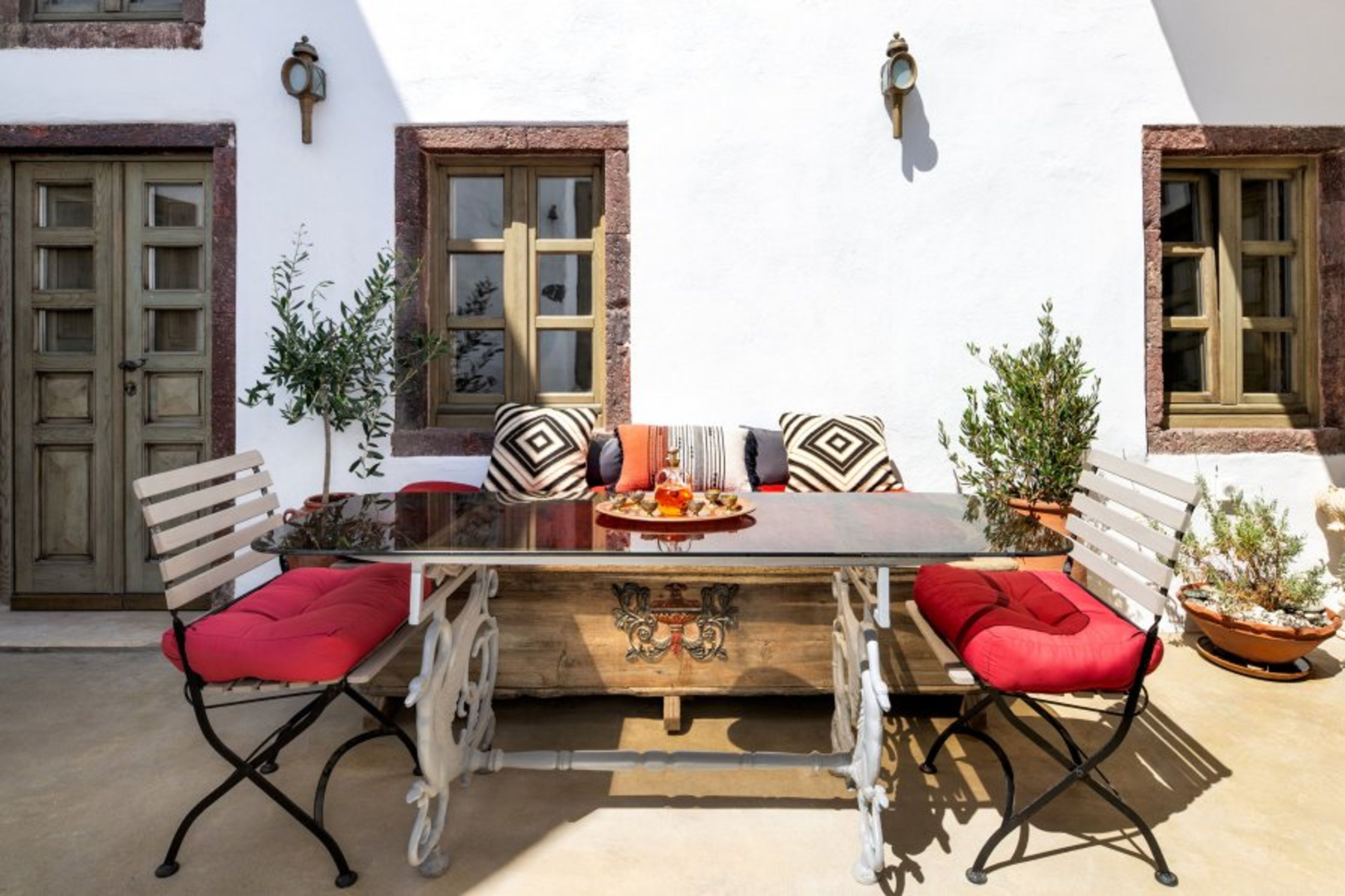 Located in Pyrgos, Santorini’s highest picturesque village, the villa offers easy access to local attractions and activities and is only a couple of minutes walk away from gastronomic restaurants, coffee shops and bars. Explore charming narrow streets, visit historic churches and castles, enjoy wine tasting tours, or take a short drive to Santorini’s famous beaches and vibrant towns. Historical Villa Santa Croce promises an authentic, luxury Santorini experience, ideal for couples, families, and groups seeking comfort, culture, serenity and unforgettable scenery. The Santa Croce team is also happy to organize bespoke events or celebrations for your special occasions, including the organization of weddings and elopements.
