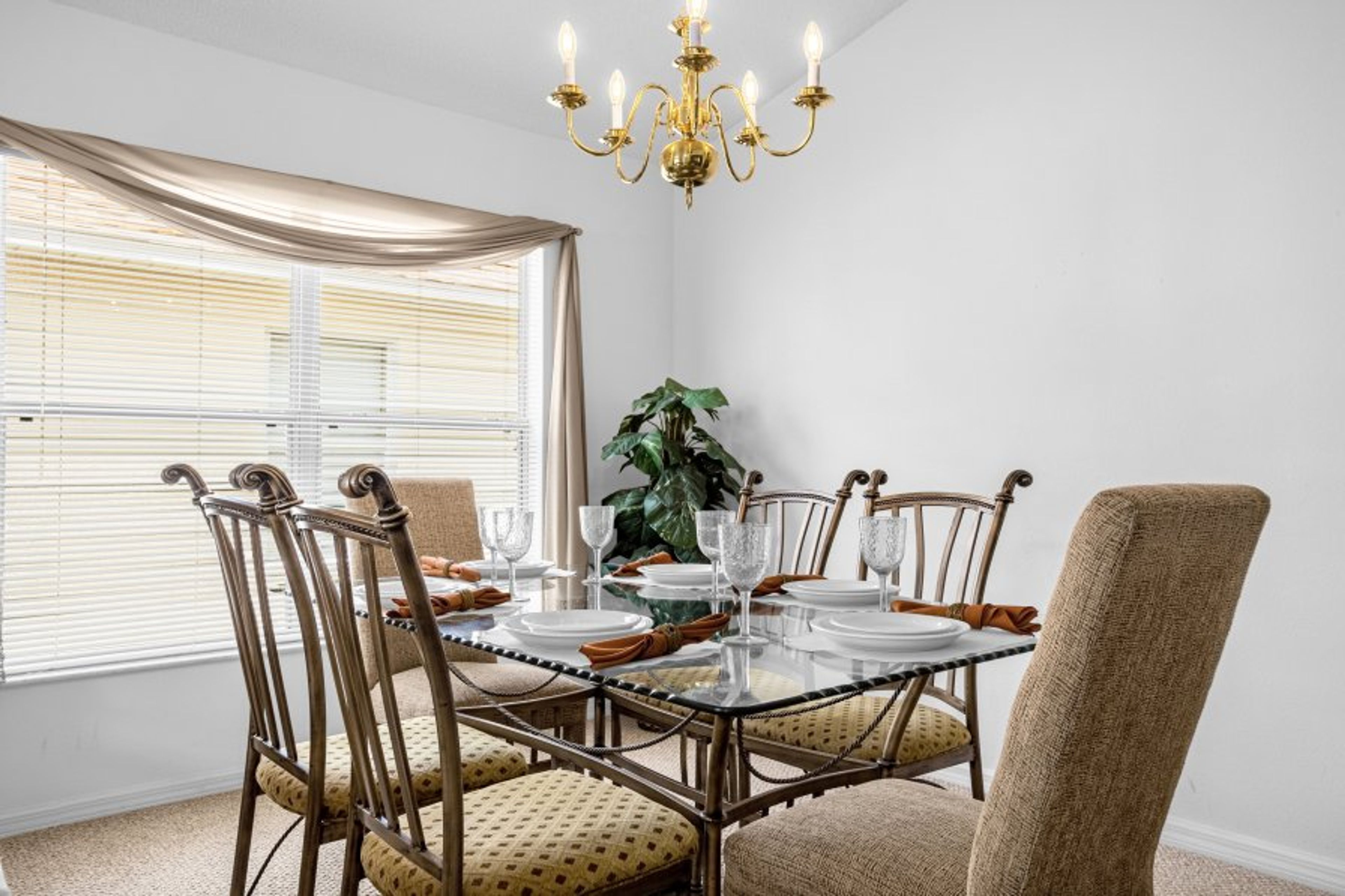 KITCHEN AREA - with all modern amenities, (microwave, dishwasher, oven/hob, blender, coffee maker, toaster etc.) including a fridge with ice maker. Cutlery/glasses and crockery for up to 12 people. We also provide all towels and linens, iron/ironing board and hairdryers in master bedrooms. Local host 24/7 available Fully equipped kitchen. Very close to all theme parks, shopping malls and restaurants.