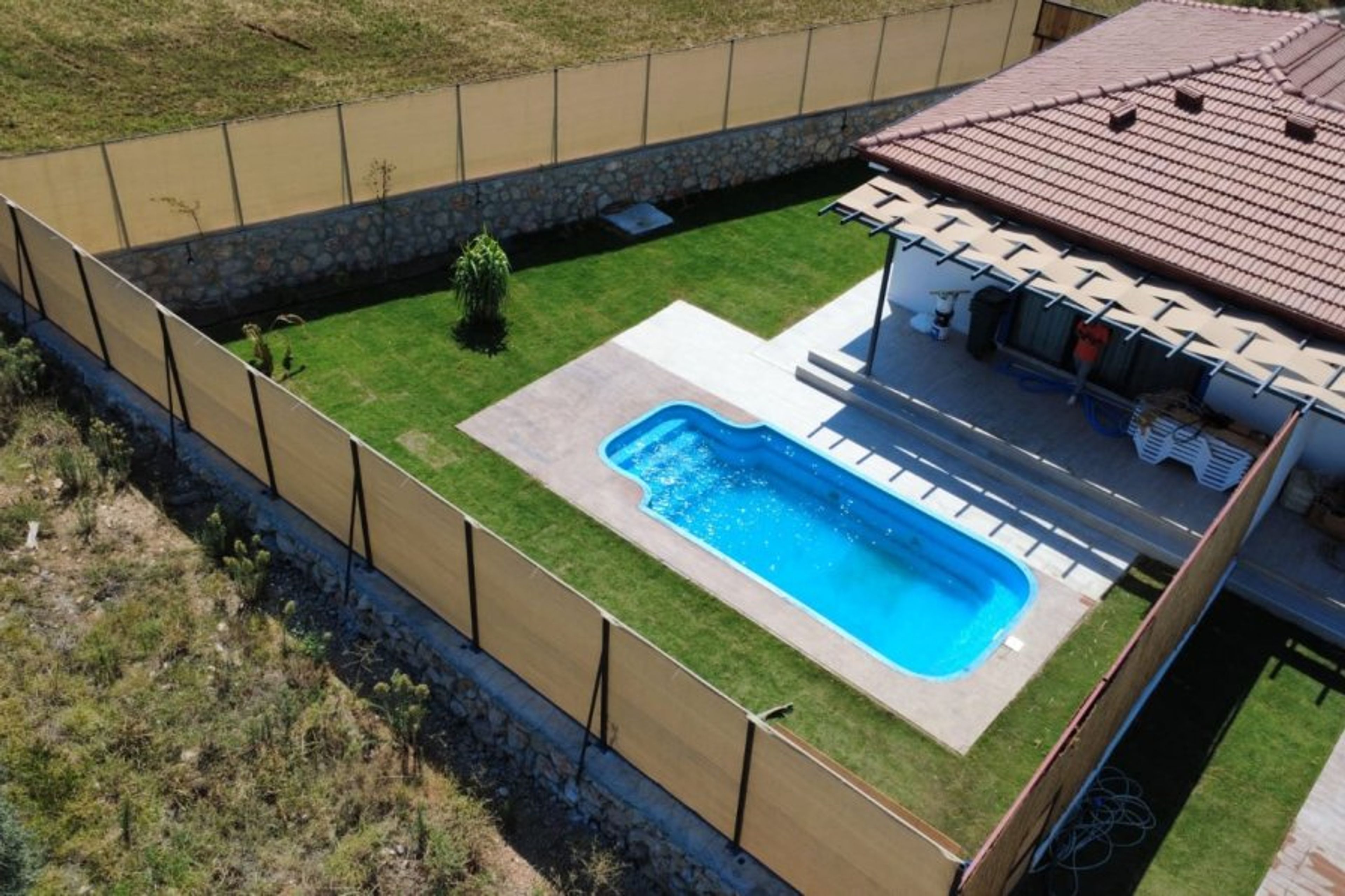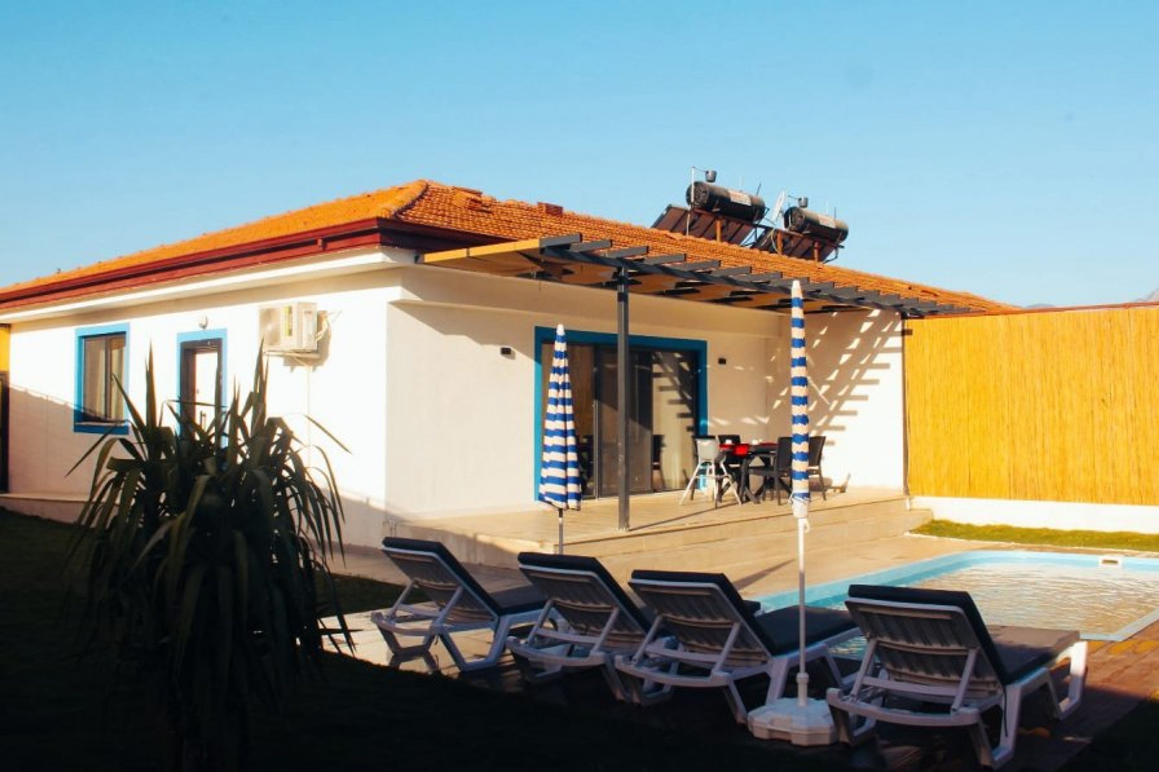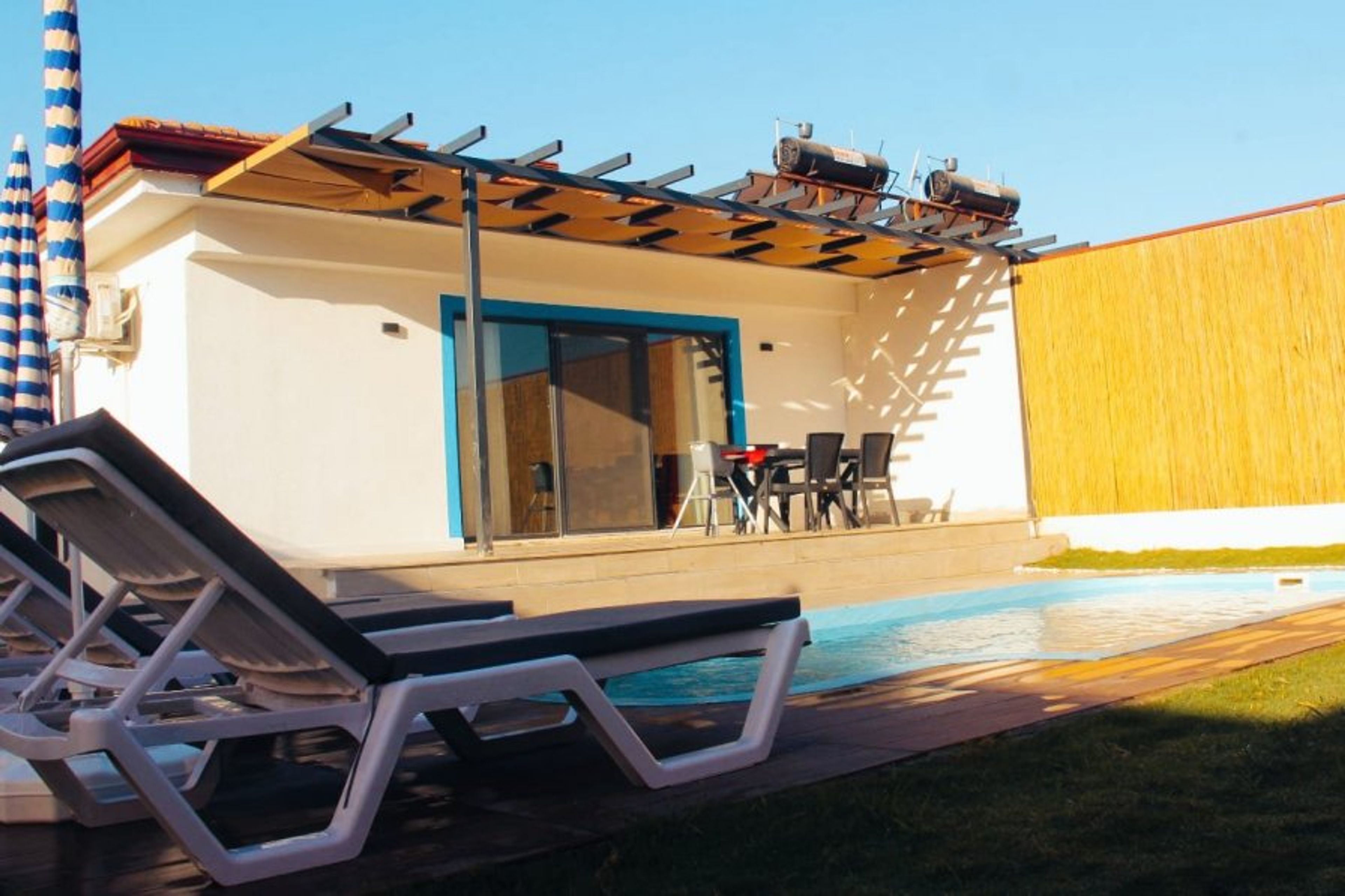 Pool: Our villa has a private swimming pool measuring 3.5 x 7.30 meters and 1.50 meters deep. Pool and garden maintenance is performed once a day, morning and evening. There are sun loungers, a barbecue, and a garden dining table by the pool.