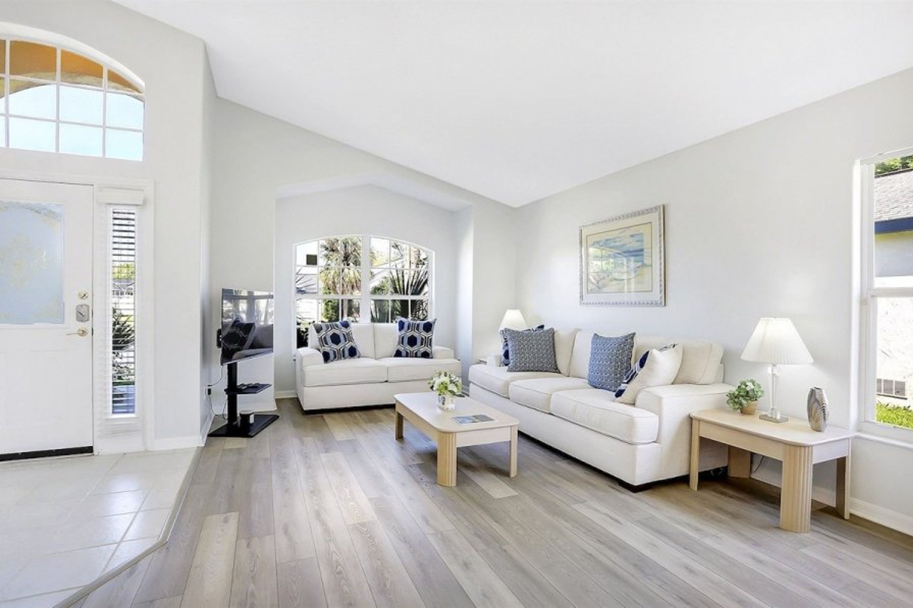 Our 3 bedroom villa sleeps 6 with a smart TV in each room. The master bedroom features a queen bed with a new mattress and has a large en-suite containing two sinks, bath tub and large shower. The other two bedrooms also have new beds and share a well appointed bathroom. All bedrooms have ample storage space and the master bedroom has a large walk in closet. There are two spacious living areas with all new flooring, offering ample space for families to relax or for children to play. Each living area has a large screen, smart TV. The newly remodelled kitchen has all new appliances and is very well equipped with a range of equipment and utensils. The villa has a garage which will take two cars with space for a further two on the drive. The Indian Ridge community is very family friendly and offers additional amenities with a large community pool, tennis courts and a children’s play area. These are all within a one minute walk of the property. Private pool (pool heating available) Washer and dryer available