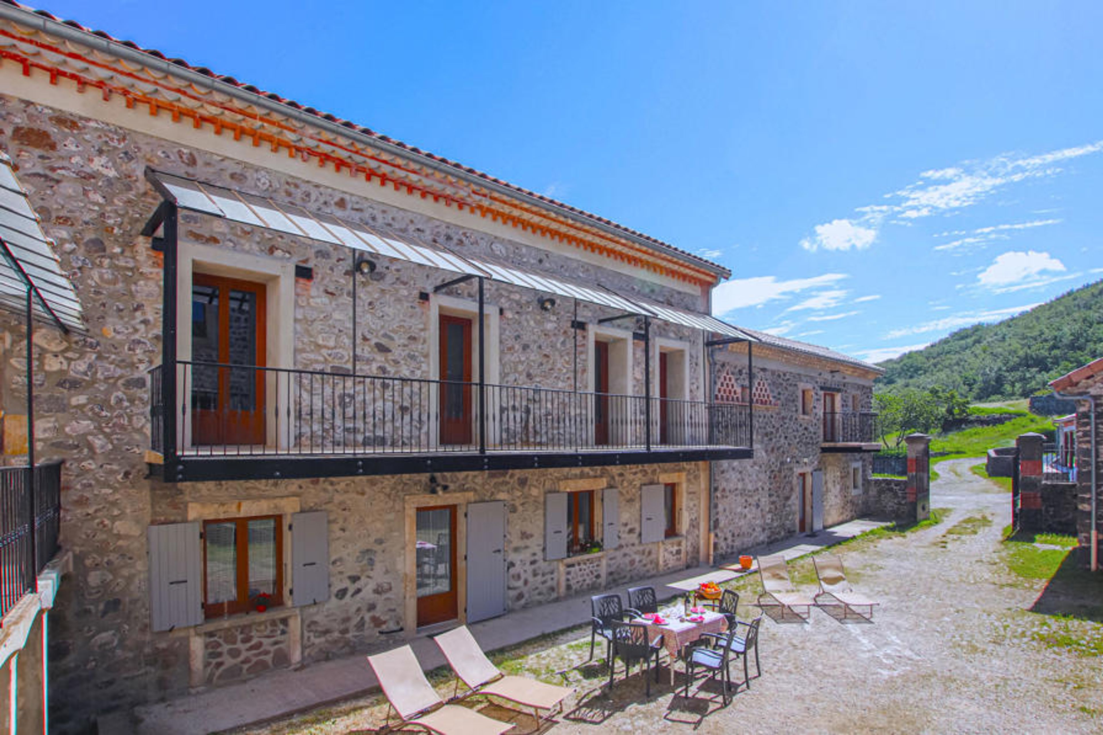 This light-flooded country stone house is located between the wild Eyrieux valley and the picturesque Ardèche gorges on the Coiron tourist route. Just a few minutes from the historic town of Privas, it offers the perfect combination of relaxation and adventure. There are also numerous attractions in the surrounding area, including the famous Pont d'Arc cave, Mont Gerbier des Joncs, the source of the Loire, the Ray-Pic waterfall and the imposing Crussol castle with its majestic view over the Rhone Valley. The turquoise-blue lake of Issarlès in a former volcanic crater and Ardelaine, a centre for wool art, are further highlights. The surrounding picturesque villages such as La Begude de Mazenc and Poet Laval with their charming farmers' markets also invite you to linger.