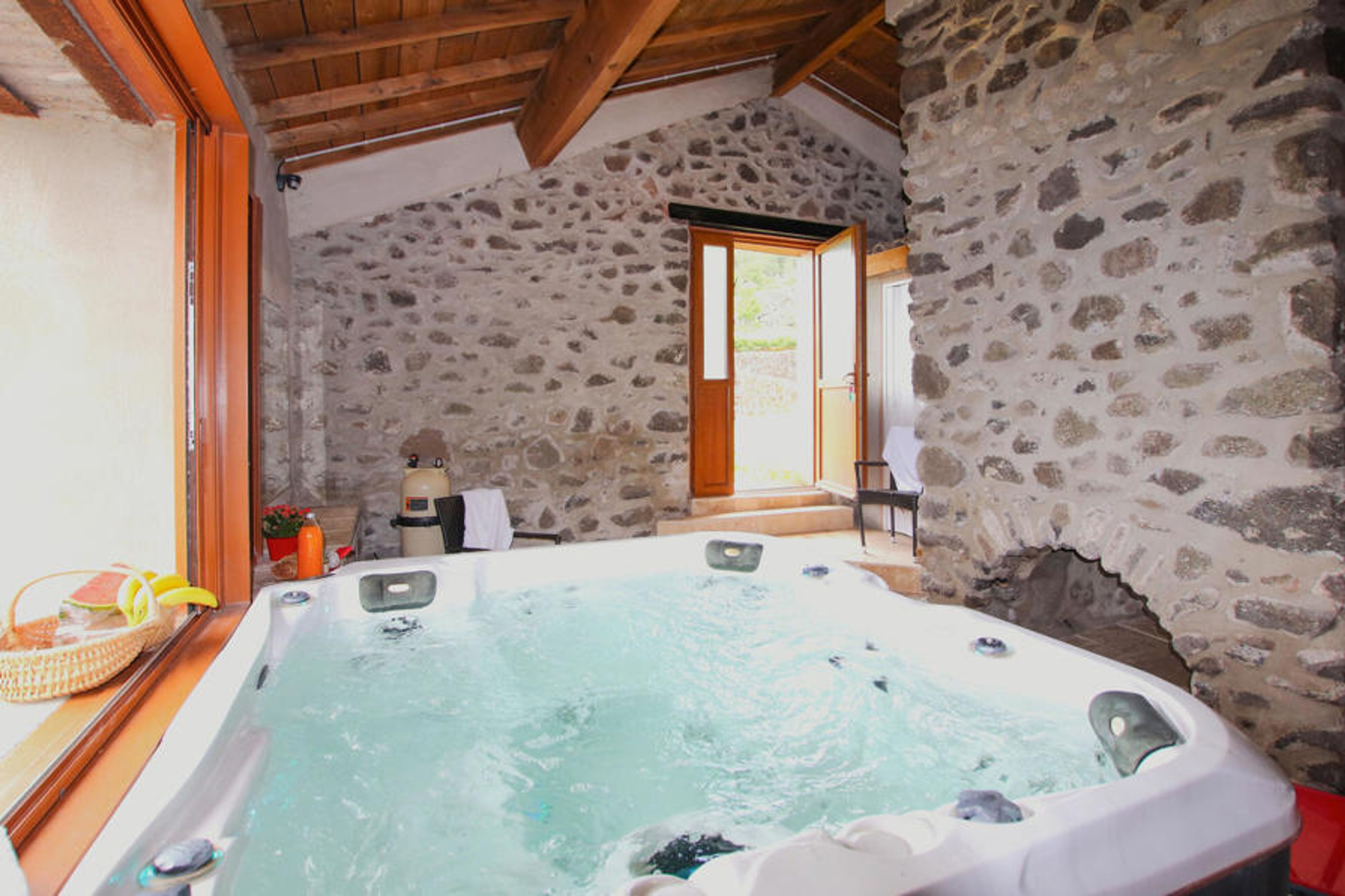 This small, authentic hamlet with several comfortable holiday cottages is ideal for gathering a large family or a group of friends for a pleasant and invigorating stay. The interior of the house is tastefully decorated with fine materials and can accommodate large families or groups of friends. Each of the comfortable bedrooms has an en-suite bathroom, and the spacious living area opens onto a sunny terrace, ideal for al fresco dining.