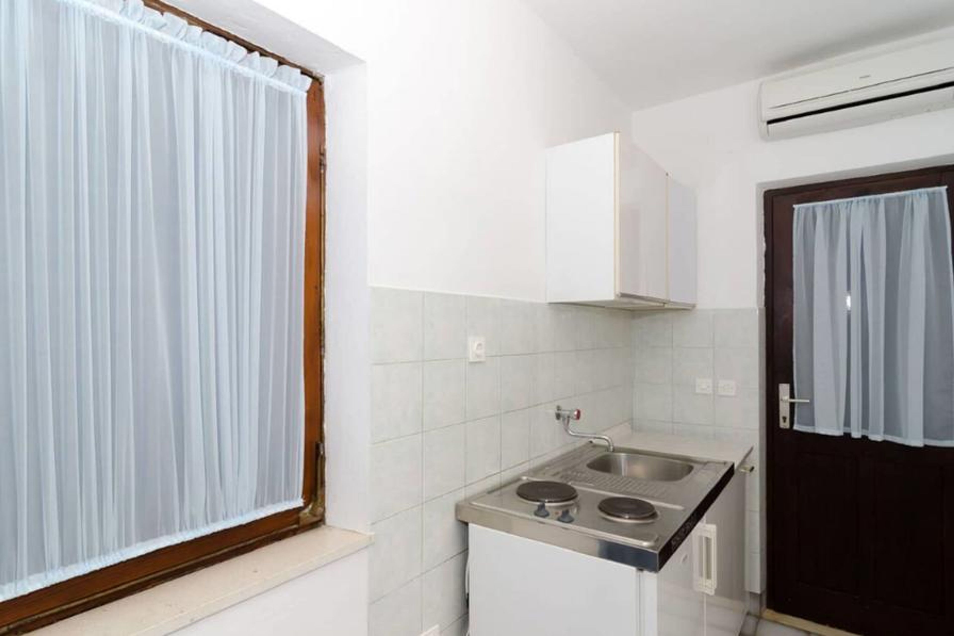 This studio apartment can comfortably accommodate up to 2 persons. It is going to offer you lovely balcony with an outdoor furniture and a sea view. Apartment has air conditioning. Kitchen is equipped with a stove, water kettle, and refrigerator. Kitchenetette utensils are provided. Bathroom comes with a shower, toilet and hair dryer.