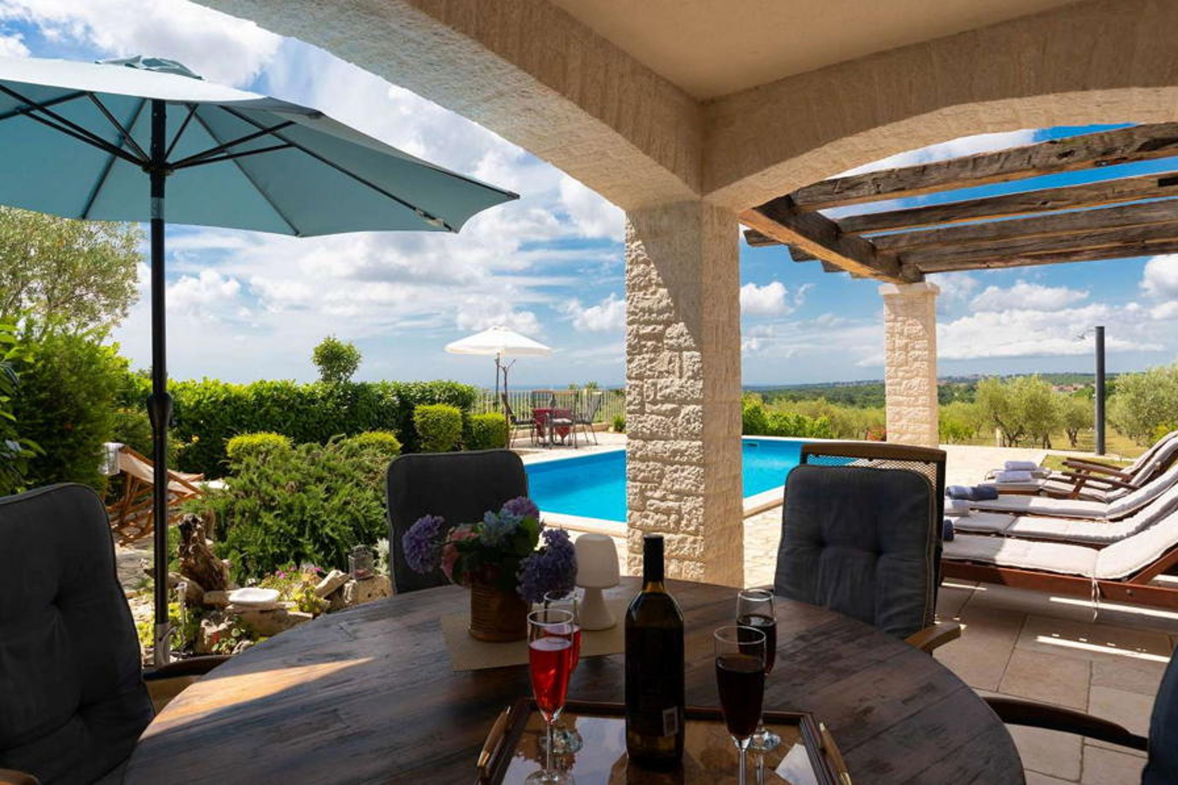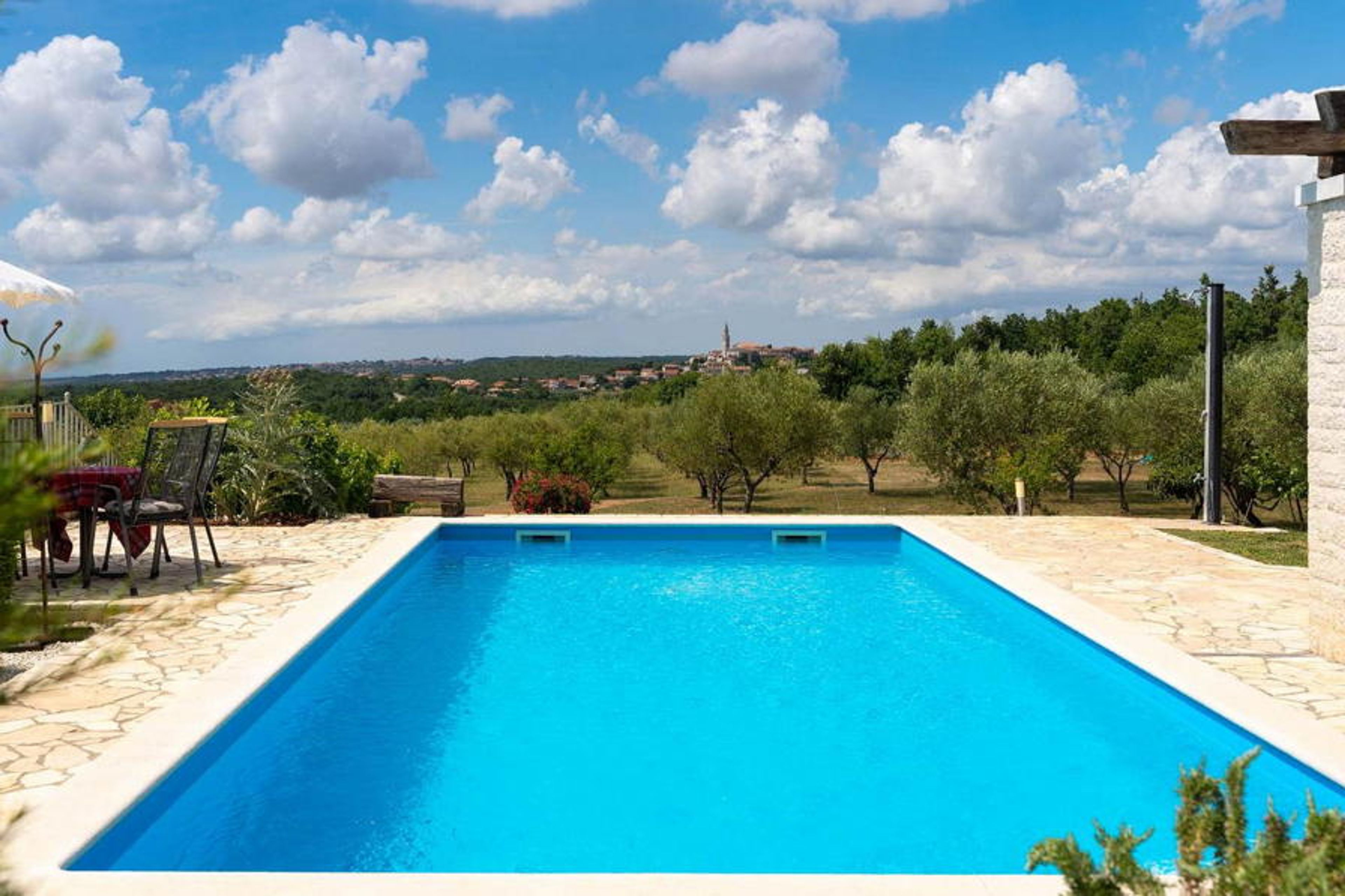 Villa Nira, a newly built villa with pool located at the edge of the village Barat in central Istria, approx. 15 km from Porec and its beaches.