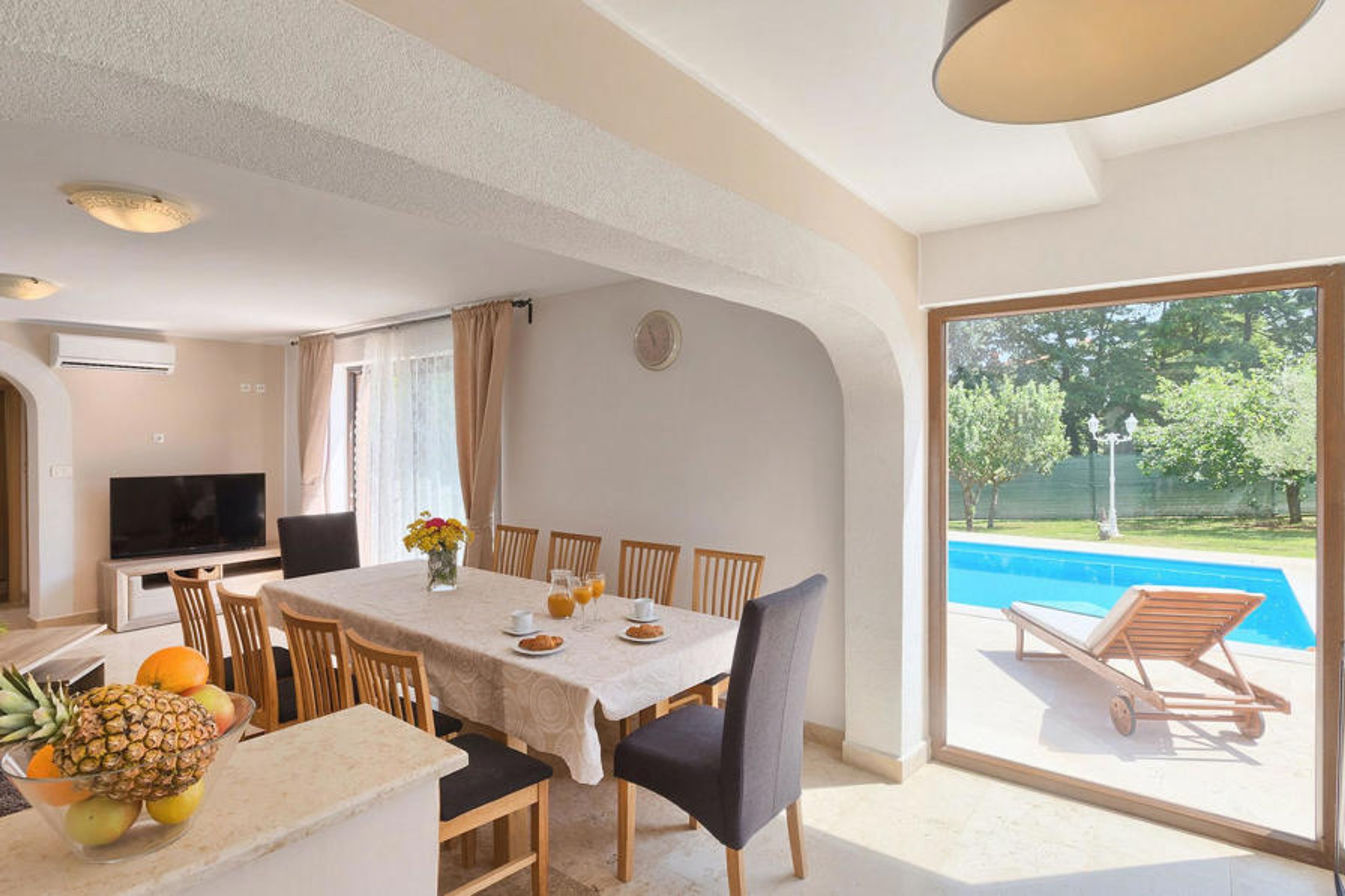 The beautiful Villa Ferlini offers everything you could wish for and even imagine on your vacation. The villa sleeps up to 8 + 2 people in its 4 bedrooms (3 with double beds and one with twin beds). Inside the villa you will find a beautiful open plan living/dining area and kitchen with French doors from where you have direct access to the wonderful private pool and the fantastic meticulously maintained garden. The 10000m2 plot offers countless opportunities for relaxation, whether you want to relax on one of the sun loungers next to the private pool or read a book on the bench in the garden. The children can also have lots of fun: The villa has a children's playground, trampoline, net for badminton and volleyball and a basketball hoop, as well as a smaller round pool with air jets. However, if you want to have some fun in the villa itself, that's no problem. There is a pool table, darts, table soccer and a sauna in the villa. Don't miss the opportunity to prepare a traditional meal on the outdoor barbecue for the whole family. :)In the south-central part of the Istrian peninsula, lies the medieval town of St. Vincent. The old architecture of the town and surrounding villages is well preserved, while vineyards and olives dominate this region with a warm, Mediterranean climate. St. Vincent and the surrounding area are known not only for their historical and cultural heritage, but also for good wine and traditional Istrian cuisine. Istria is a unique and enchanting place that has always welcomed visitors and settlers from other parts of the world. The city of Pula with its Roman amphitheater and the Brijuni National Park with an 18-hole golf course are only a short drive away. The Adriatic coast with crystal clear sea and all kinds of water sports activities are also not far away.