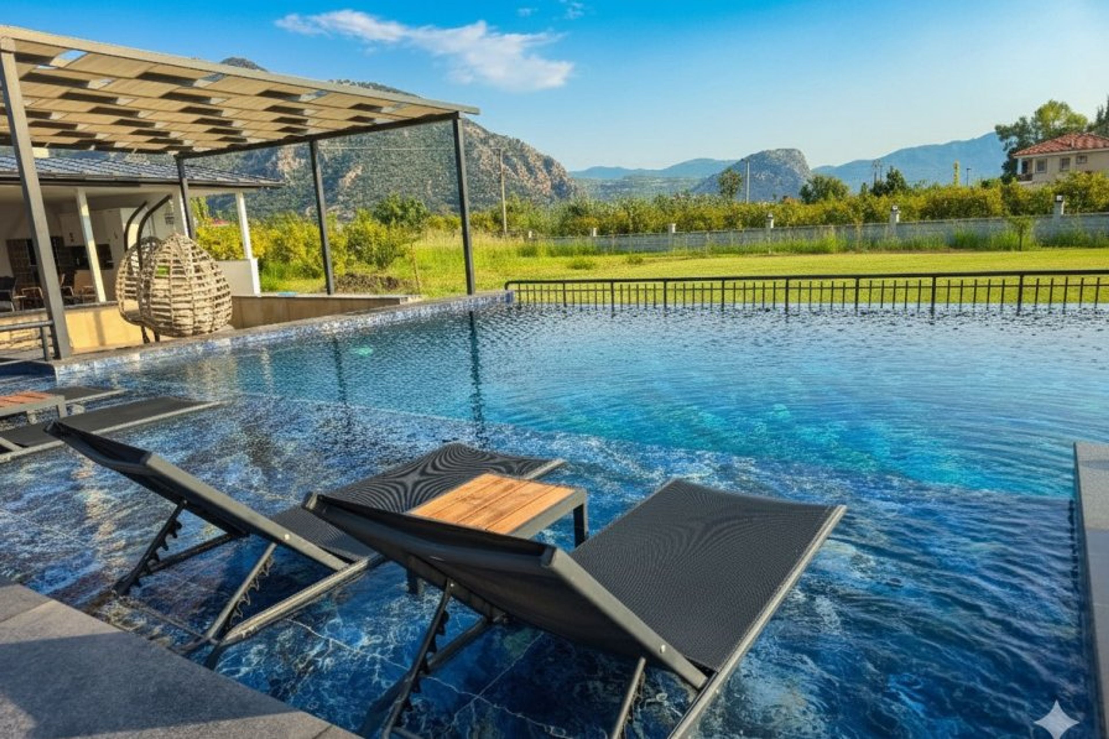 Welcome to this brand-new (built in 2024) villa in a tranquil area of Dalyan, offering a perfect balance of luxury and peace. Set on a vast 5,000 m² private plot, this property is an ideal sanctuary.