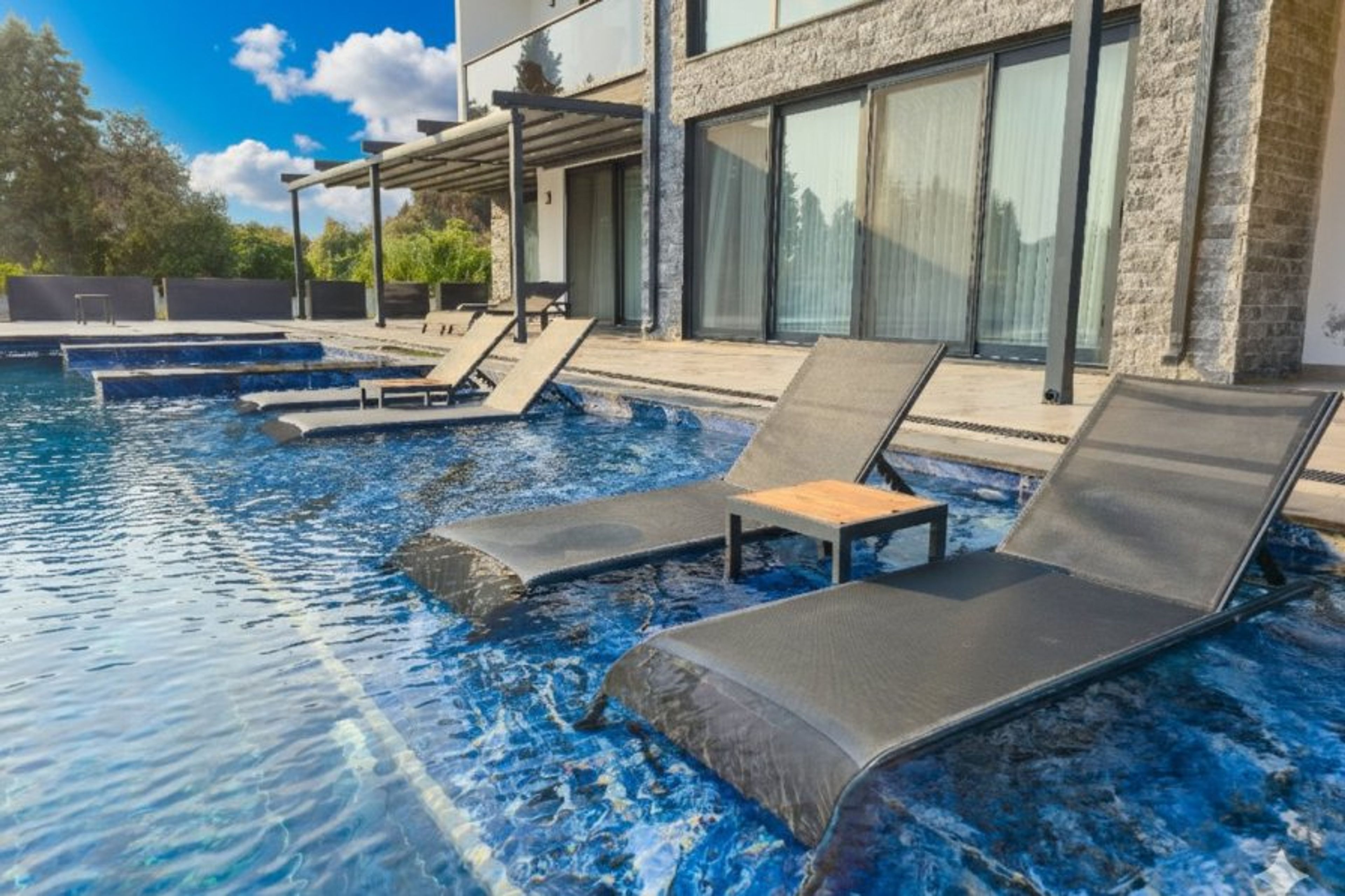 Our villa, with its extremely spacious 400 m² interior, high-ceilinged living area, and airy rooms, is specifically designed for large families and groups of friends. Offering a comfortable sleeping arrangement, the ground floor features 3 separate bedrooms, each with two single beds and an en-suite bathroom. The upper floor boasts 2 further large bedrooms, each with a double bed, en-suite bathroom, and a luxury Jacuzzi.