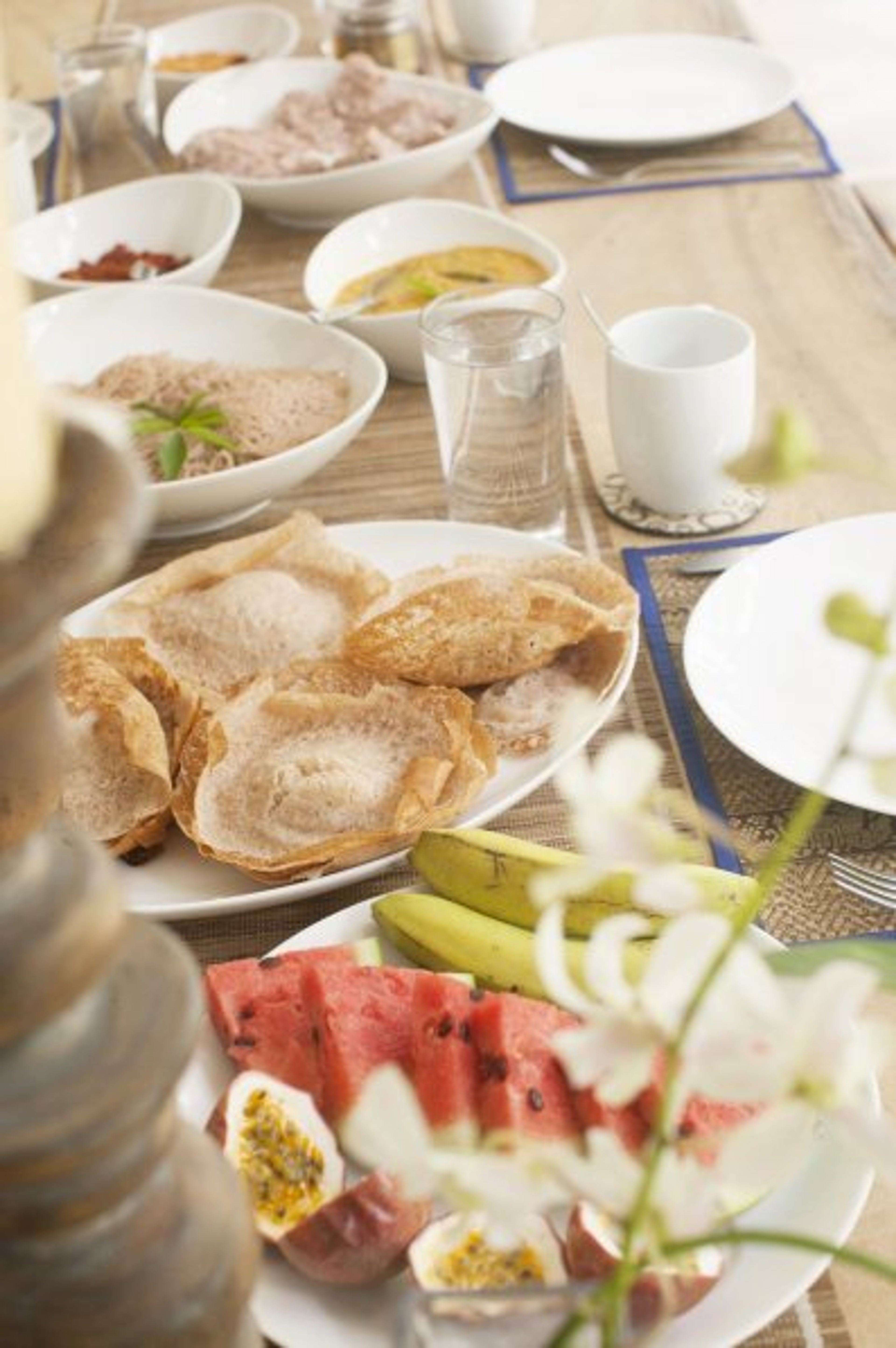 Sit on the jetty on the lagoon itself and you will encounter abundant and extraordinary wildlife with parakeets, kingfishers, cormorants ,sea eagles and mynah birds that roost in the jungle bordering the lagoon. The local fishermen dot the landscape at dawn and at dusk to lay their nets and return for their catch. They may offer you fresh lagoon prawns at the jetty, but you can try you hand at fishing off the house paddle boat or off the jetty