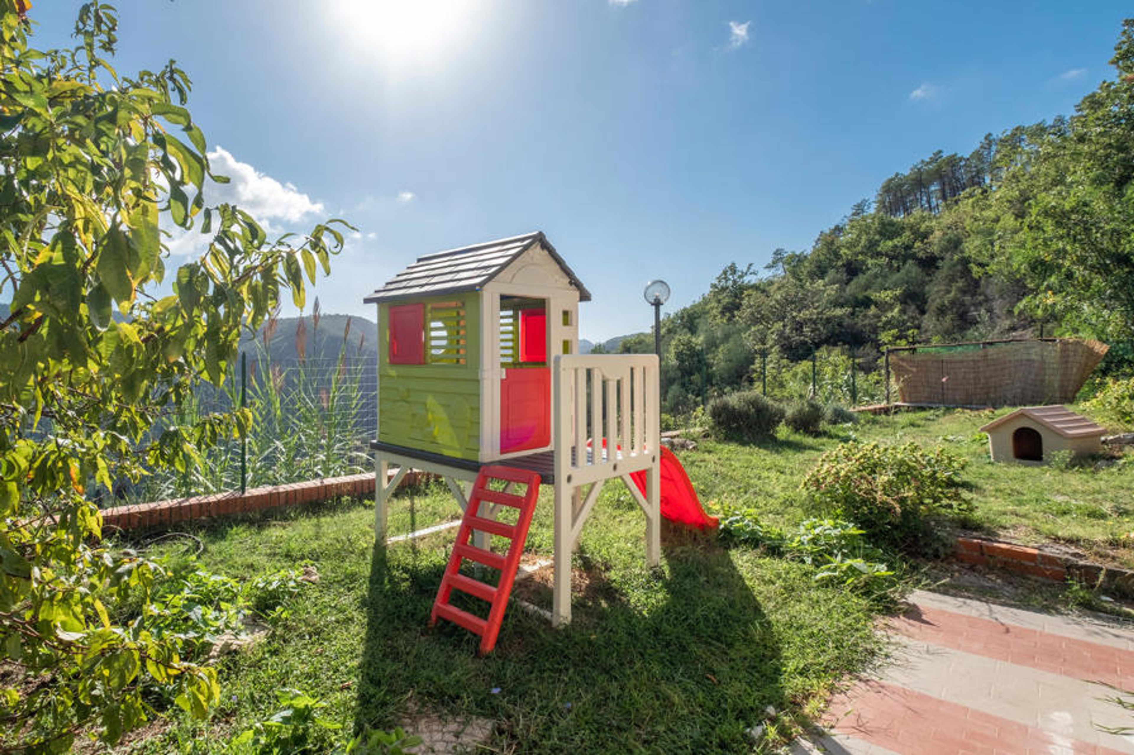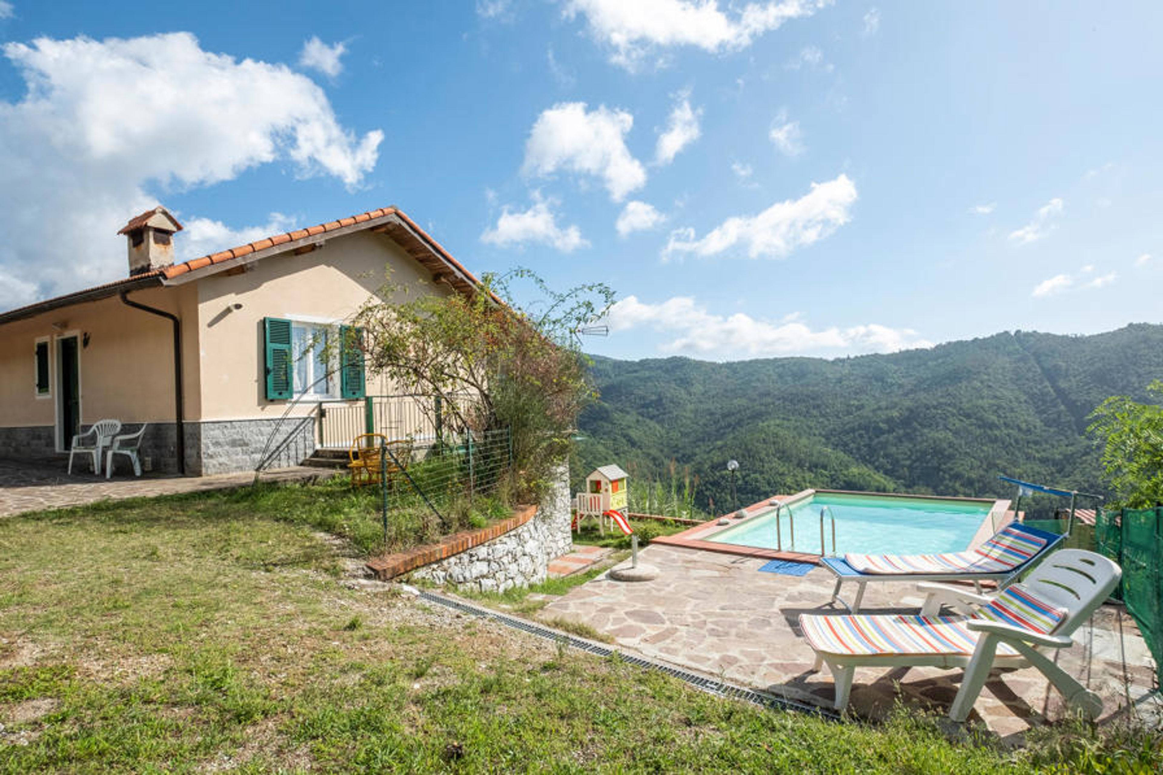 Detached holiday home with small pool 11 km from the beautiful beaches of Sestri Levante, one of the most famous places on the Riviera di Levante. Surrounded by a large equipped garden, it also offers a relaxation area and a terrace where you can eat in complete relaxation. Its location allows hikers to discover the natural beauties of the area. From the house there are paths that cross the surrounding forest, from where you can reach the characteristic valley of the Frascarese torrent with its caves, refuges and nature trails and from where you can enjoy a splendid view over the valley on the coast. Instead, follow the route that leads to Monte Pu and immerse yourself completely in nature, surrounded by meadows and woods equipped for snacks and picnics. Excursions that can be undertaken on foot, by bike or on horseback. There is a riding school just a few metres from the house. Near the house: communal outdoor pool, children's playground, tennis court, football pitch, adventure park, the medieval and organic village of Varese Ligure, the rural villages, the educational farm and several farms to taste the typical local products. Also worth a visit are the craft workshops of Chiavari and Sestri Levante, the antiques market, the flea market, the restaurants and trattorias where you can try farinata (a typical Ligurian dish made from chickpea flour) and pesto. The long beaches that characterise the coast are easily accessible from the promenade with its attractions for children, ice cream parlours and waterfront amusement park and beach volleyball courts. The house consists of two apartments that are not connected internally. Available on reservation and for a fee: Full-day excursions for families to Cinque Terre, Riviera di Levante and Genoa, half-day excursions to Genoa with tasting, naturalistic trekking to Cinque Terre and Portofino, tastings at home, tastings for personal needs, private transfers , inflatable boat rental, car rental also with driver, cooking classes, tasting of local products, babysitting, children's entertainment, organisation of events and birthdays, Italian language courses (we recommend booking in advance). 200 m gravel road.