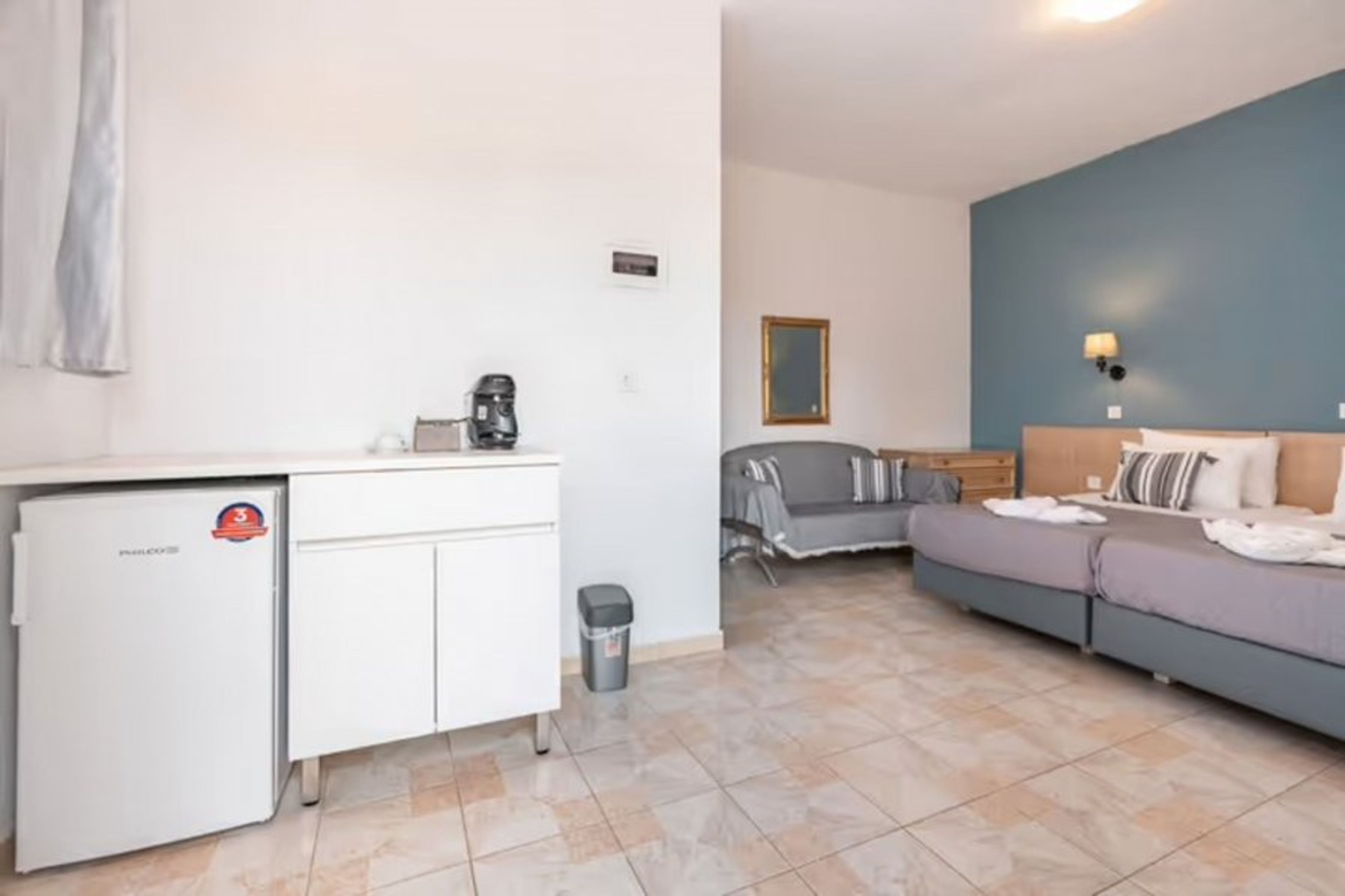 Room 3 at Eva’s Rooms is a bright and comfortable space perfect for two guests. It has two single beds, which can be used separately or joined together to make a double bed, depending on your needs. The room includes a private bathroom with a shower, a coffee maker, a small fridge, and a toaster for your convenience. Guests can enjoy the private veranda with a small table, as well as the shared garden area. There is also free shared parking available for all rooms. It’s an ideal choice for couples or friends looking for a quiet and relaxing stay near Faliraki.