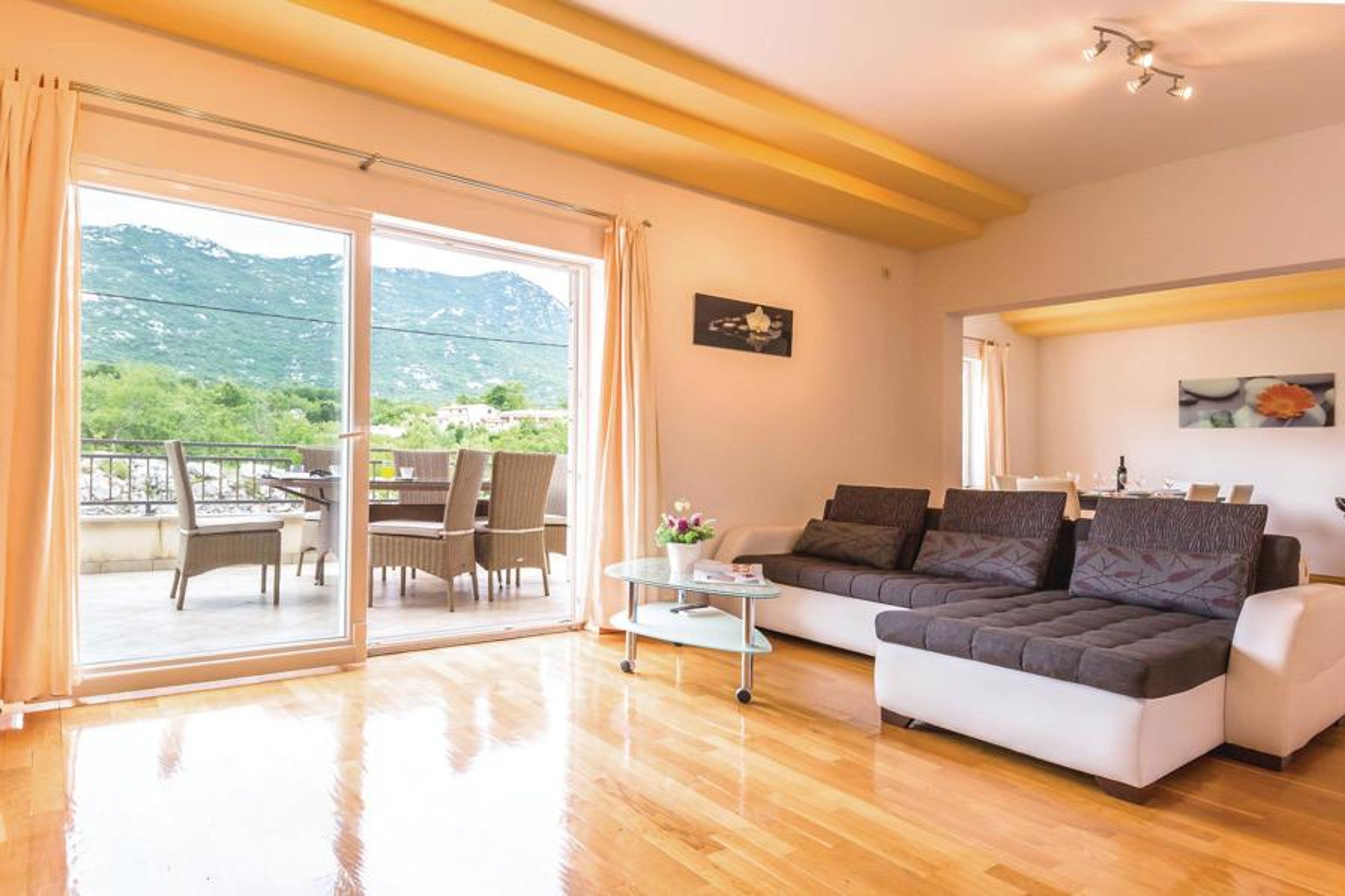 Comfortable and tastefully furnished vacation house is located in the hinterland of Dalmatia, behind the Makarska Riviera.