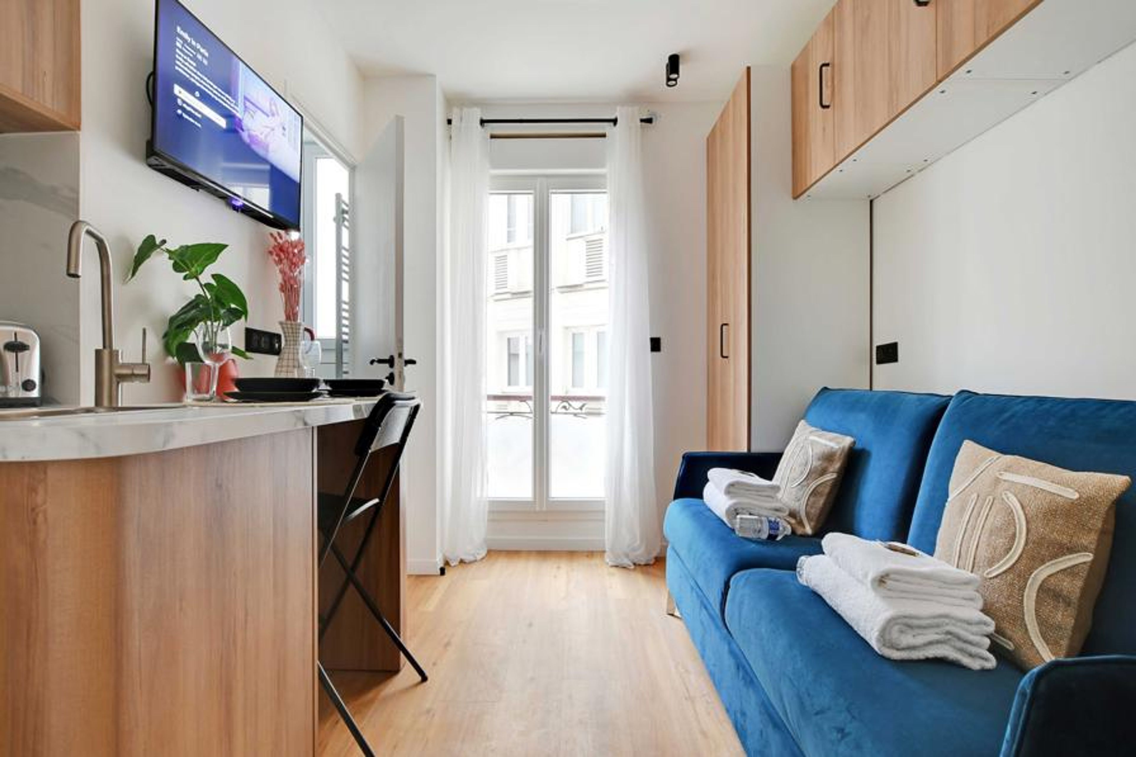 Step into this elegant 14m² studio apartment, a real gem nestled in the heart of Paris's sought-after 18th arrondissement. Set amongst the architectural treasures of Montmartre, including the majestic Sacré-Coeur Basilica, this space offers you an unforgettable Parisian experience. Equipped with modern and complete facilities, it ensures your comfort throughout your stay.