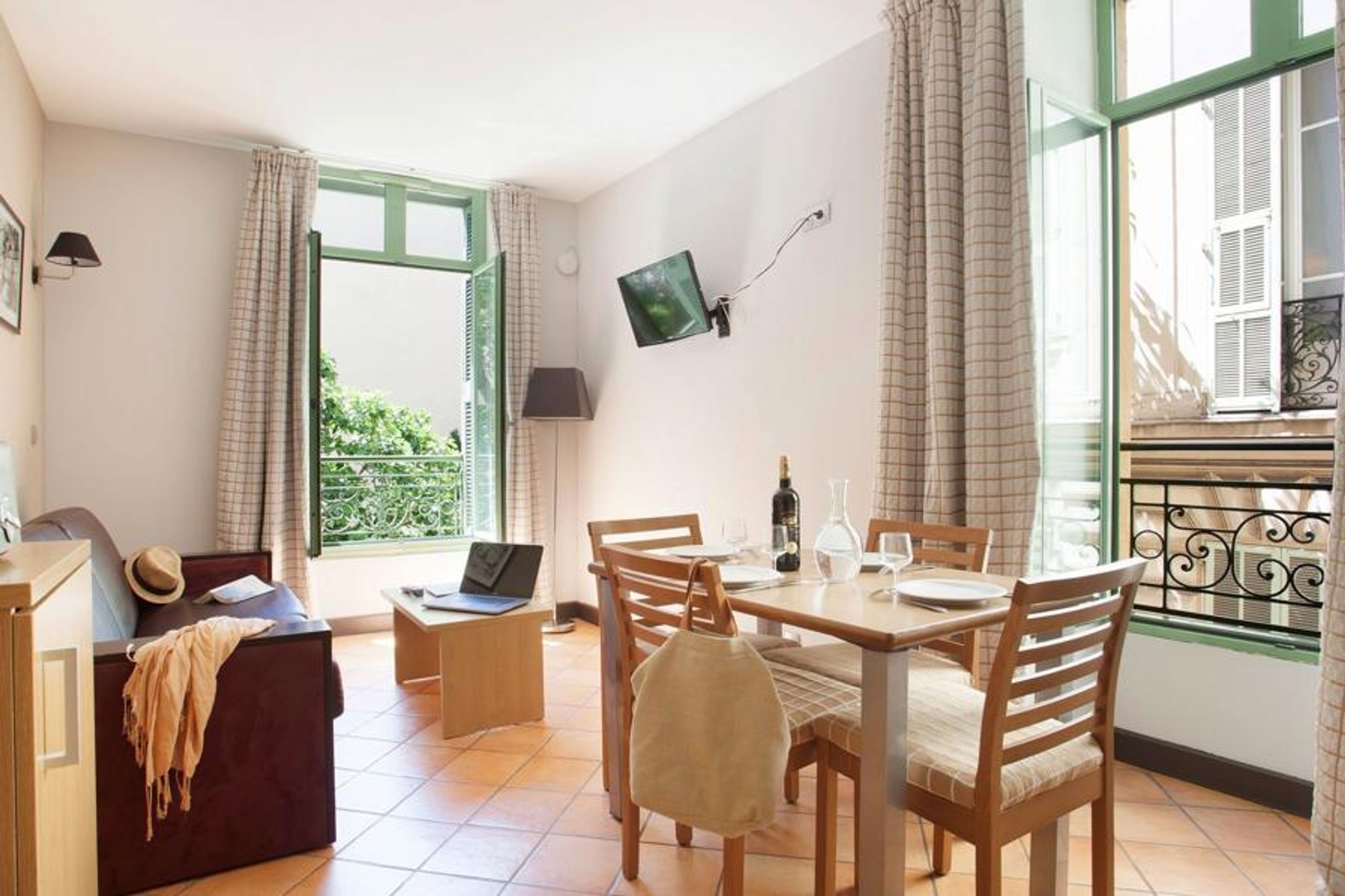 Welcome to Le Palais Rossini, a stately residence housed in a former grand hotel that blends classic architecture with modern comforts. Each studio and apartment is thoughtfully furnished with air conditioning, a flat-screen TV, and a private bathroom. Enjoy your morning croissant in your own kitchenette, equipped with a dishwasher, microwave, and fridge — perfect for a relaxed start to your day.