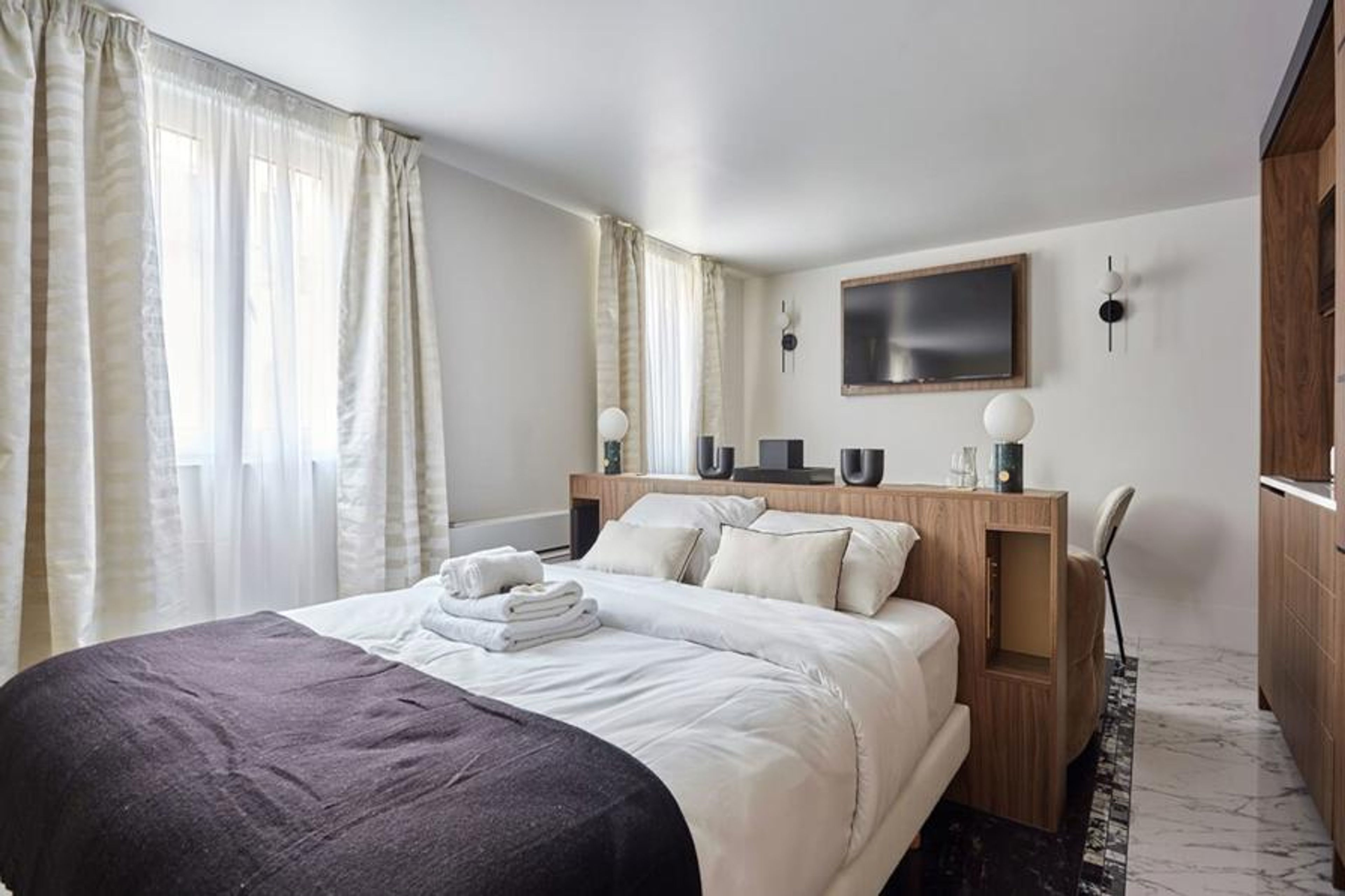 Welcome to our sublime 22 m2 studio located on the 4 floor without elevator in the heart of Paris, close to the Louvre, numerous restaurants and the center of the City of Lights. Our studio is designed to comfortably accommodate two people and offers modern facilities to make your stay enjoyable.